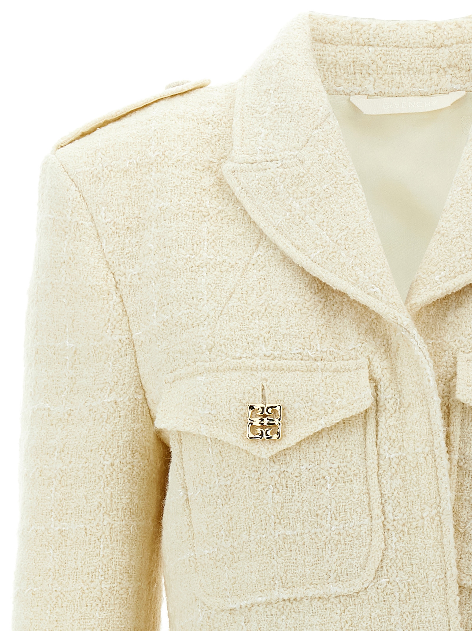 Wool tweed ‘Military’ blazer, button closure, front pockets, long sleeve with cuff.sleeves.