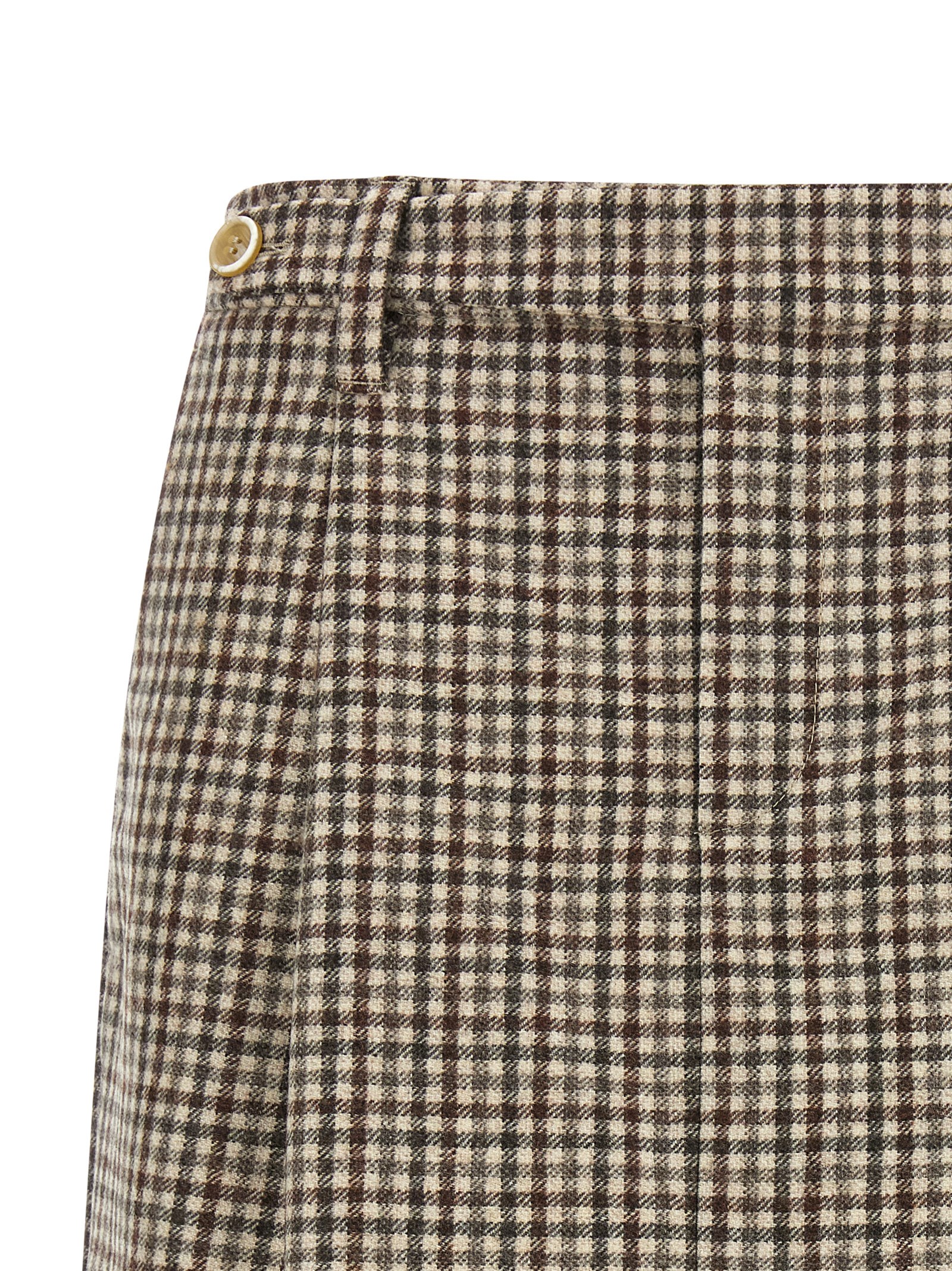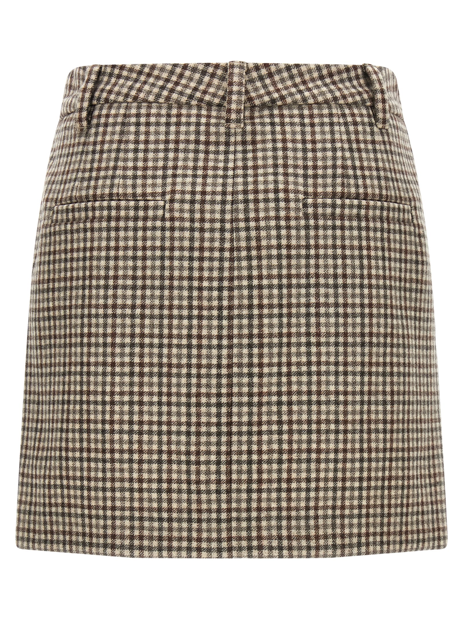 ‘Mini’ skirt in virgin wool check flannel, pleats with front pleats, zip and button closure, pockets, lining.