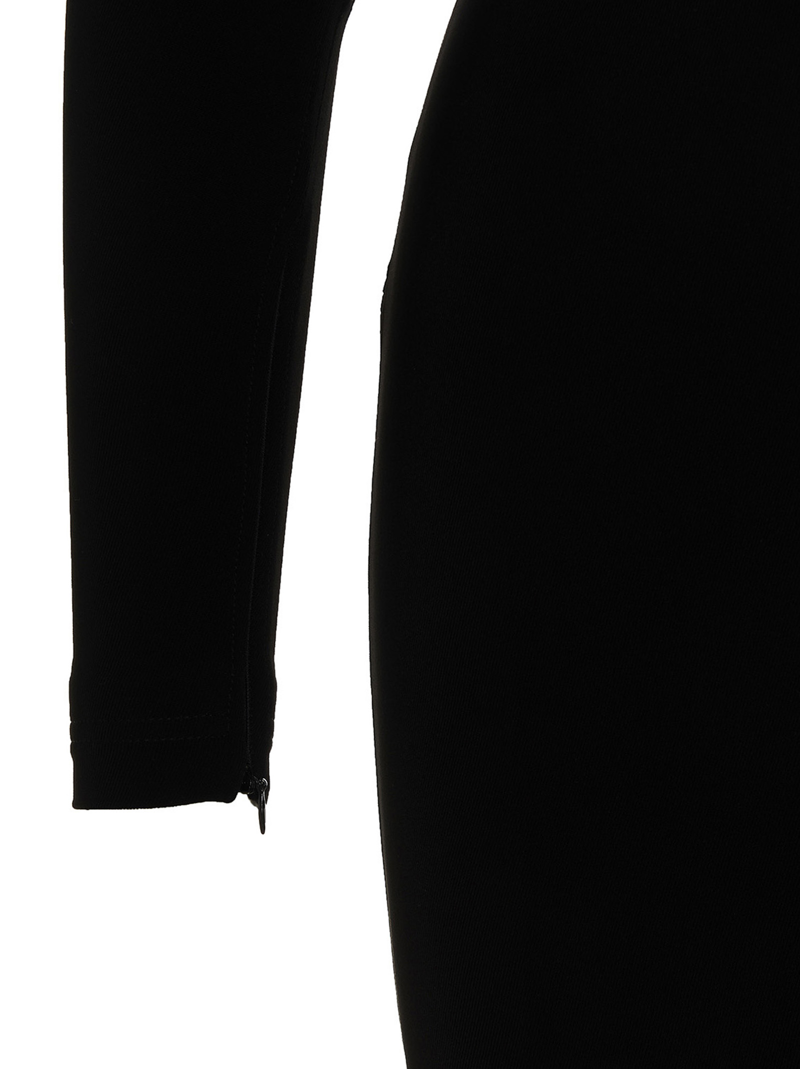Stretch ruched twill mini dress, long-sleeved crew neck model with silicone band in the hem..