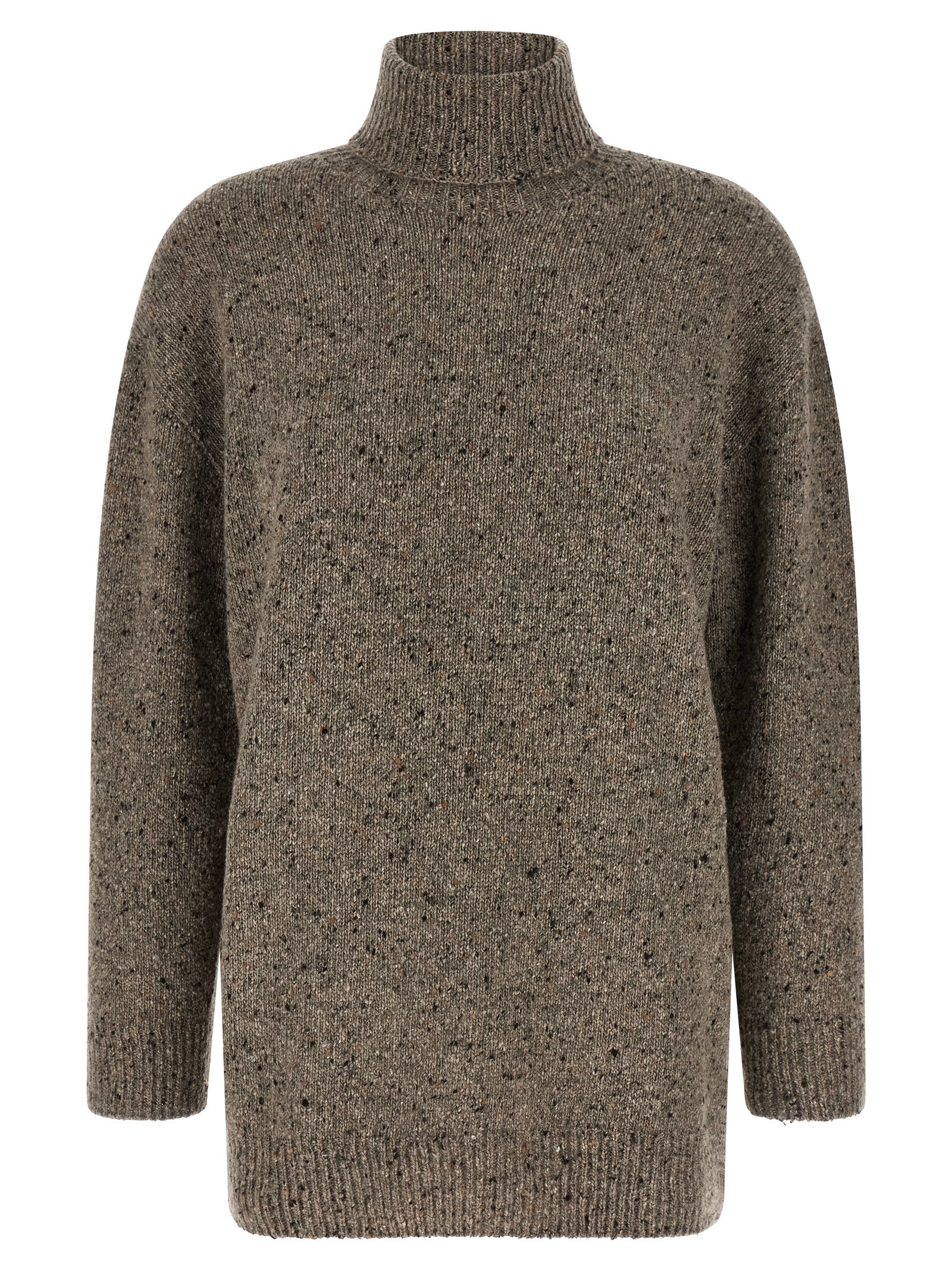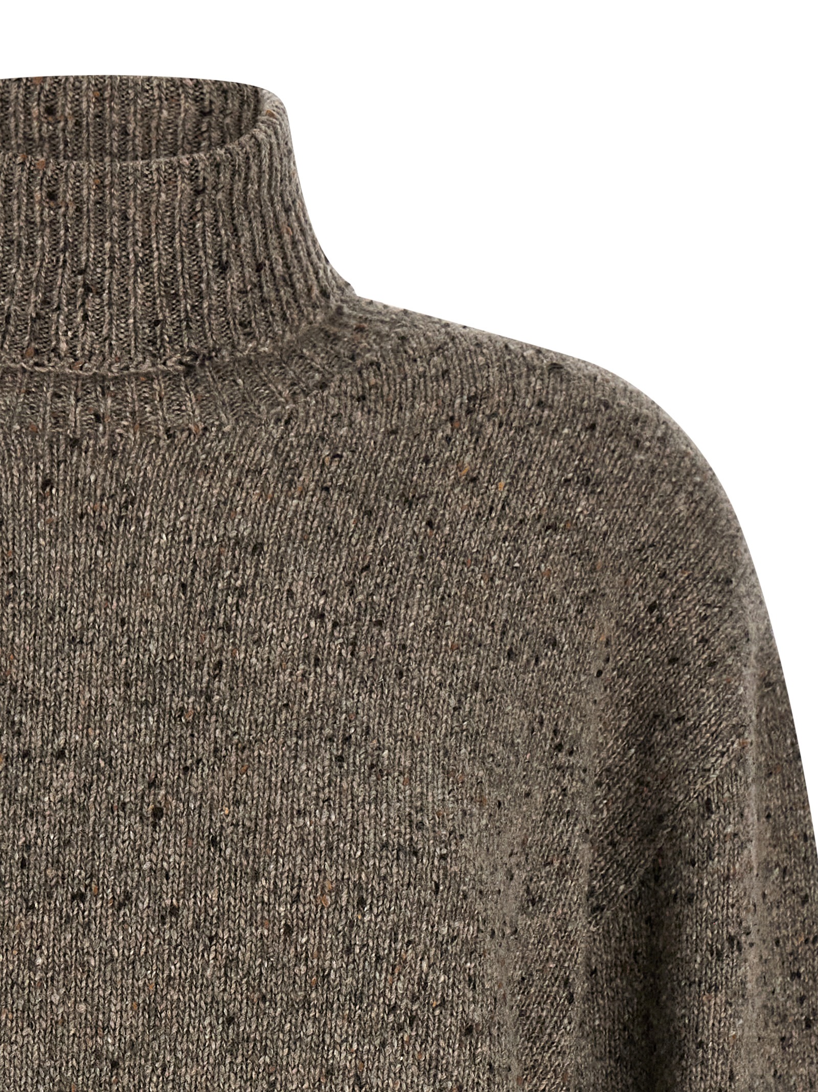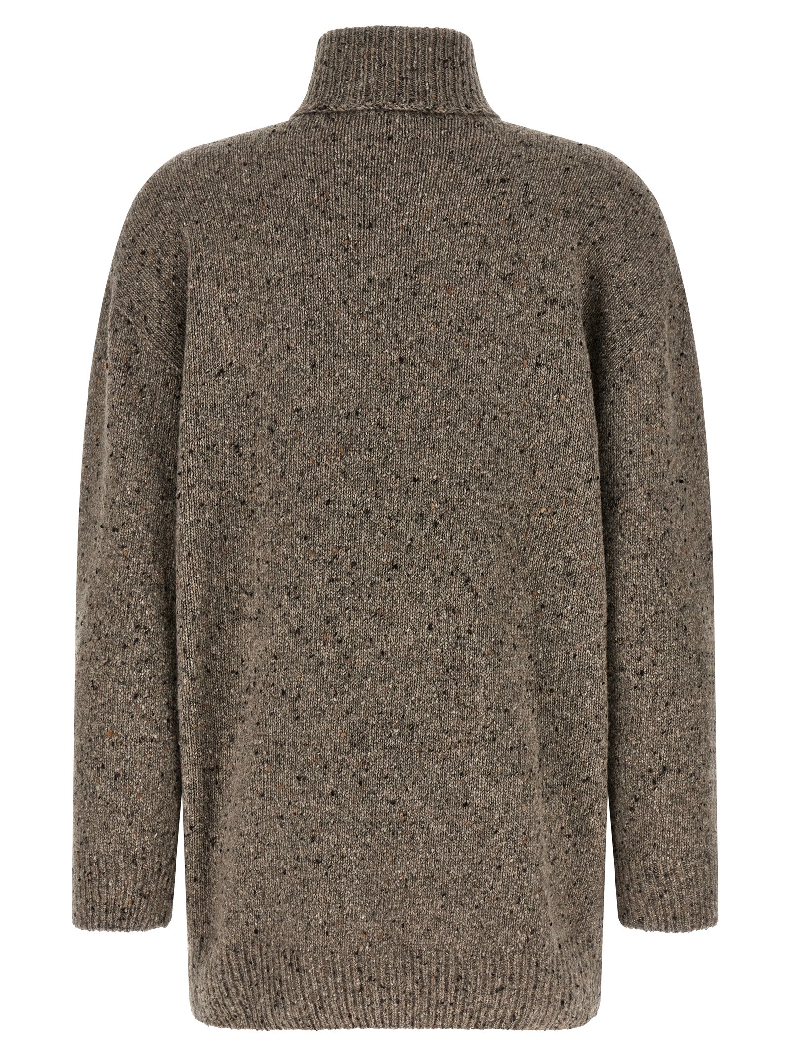 ‘Mirai’ cashmere sweater with high neck, long cuffed sleeves.