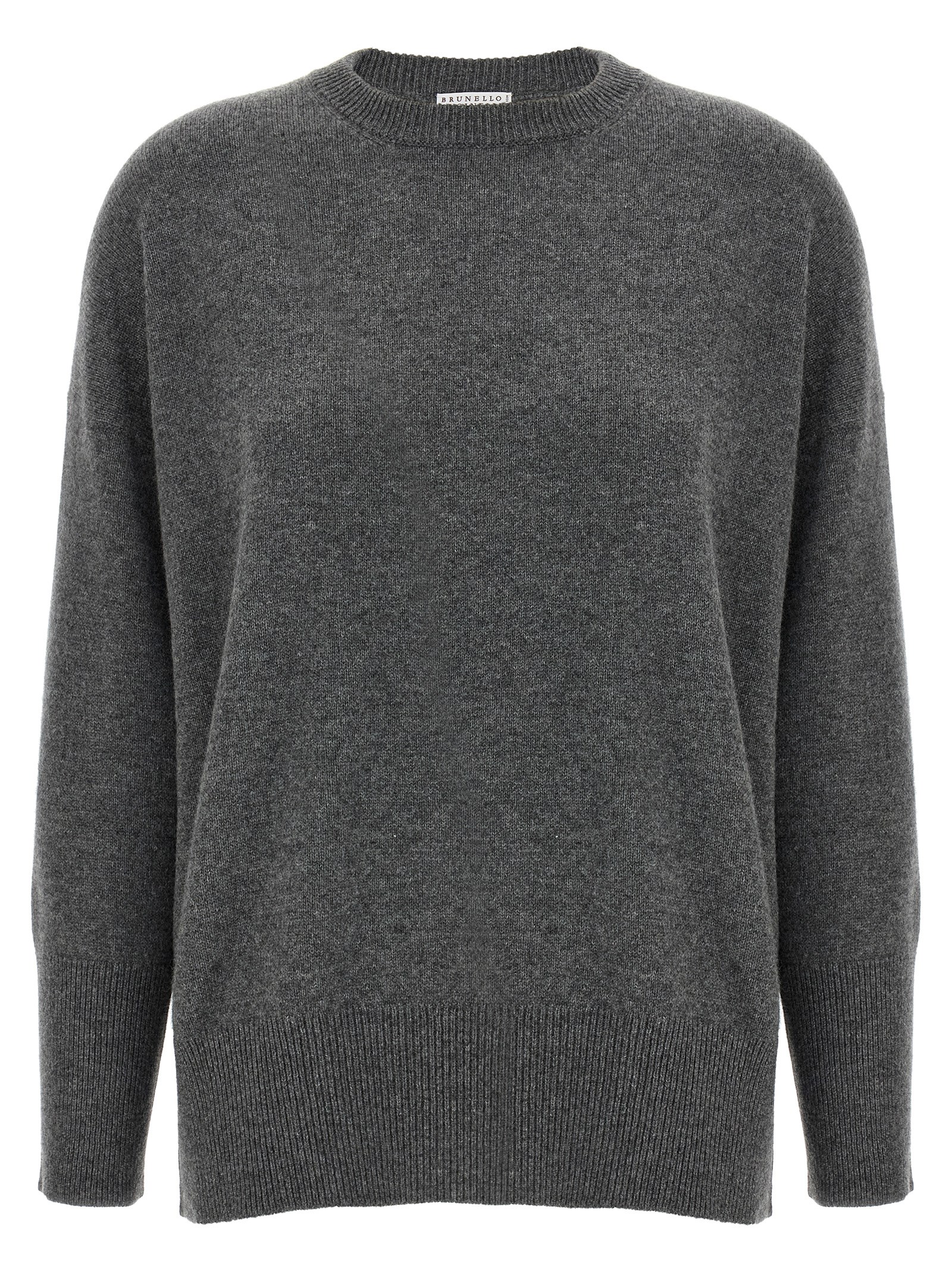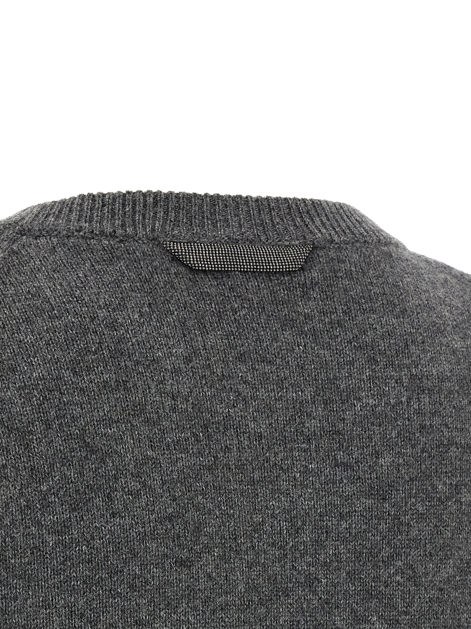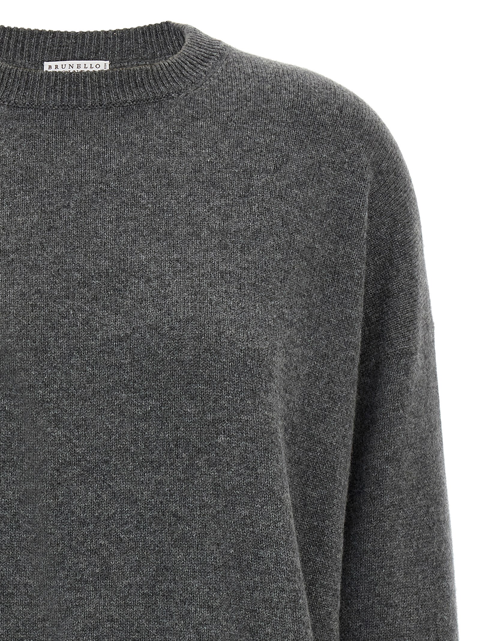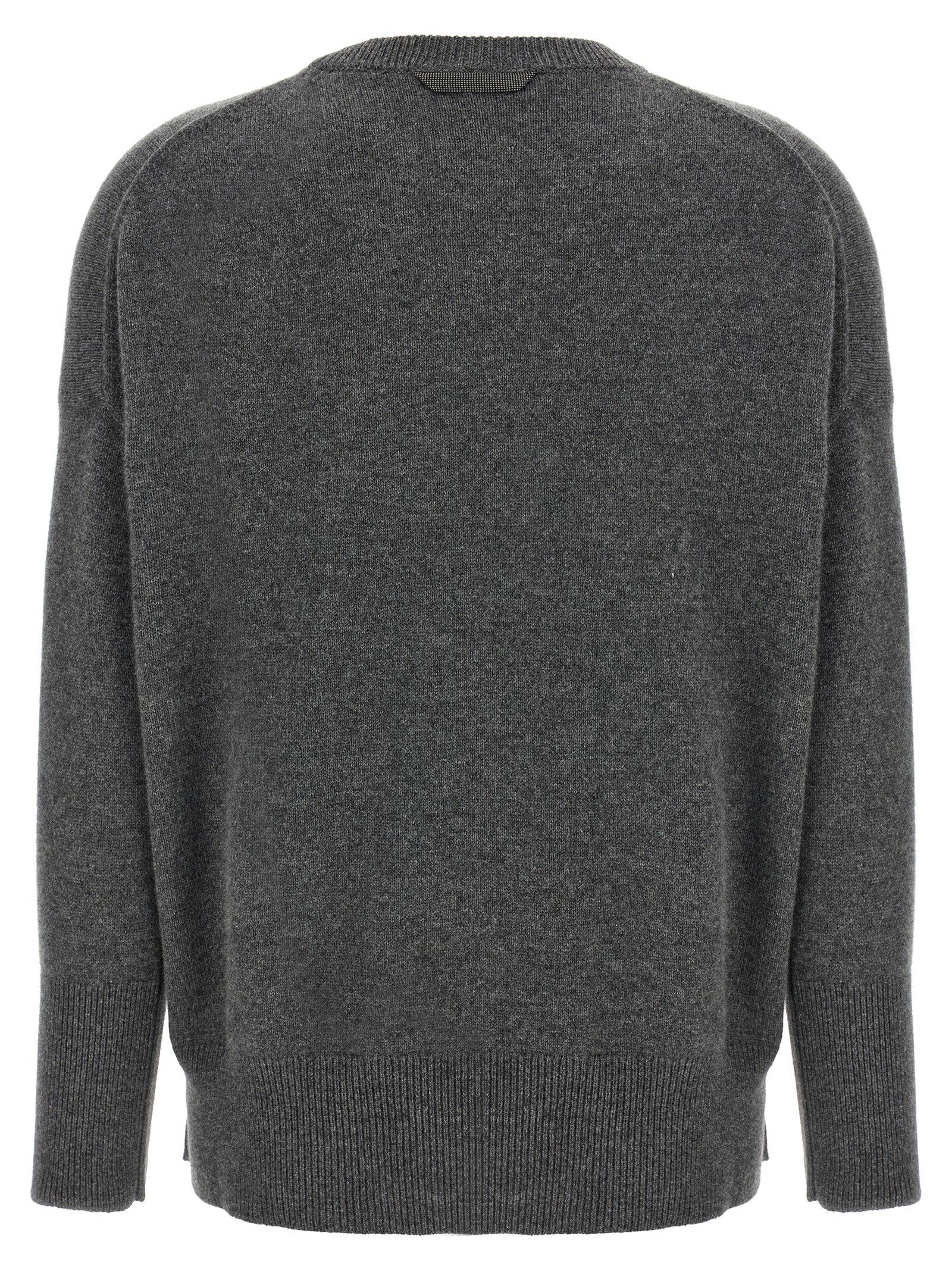 Cashmere crewneck sweater with Monile detail on the back, long sleeves with dropped shoulders.