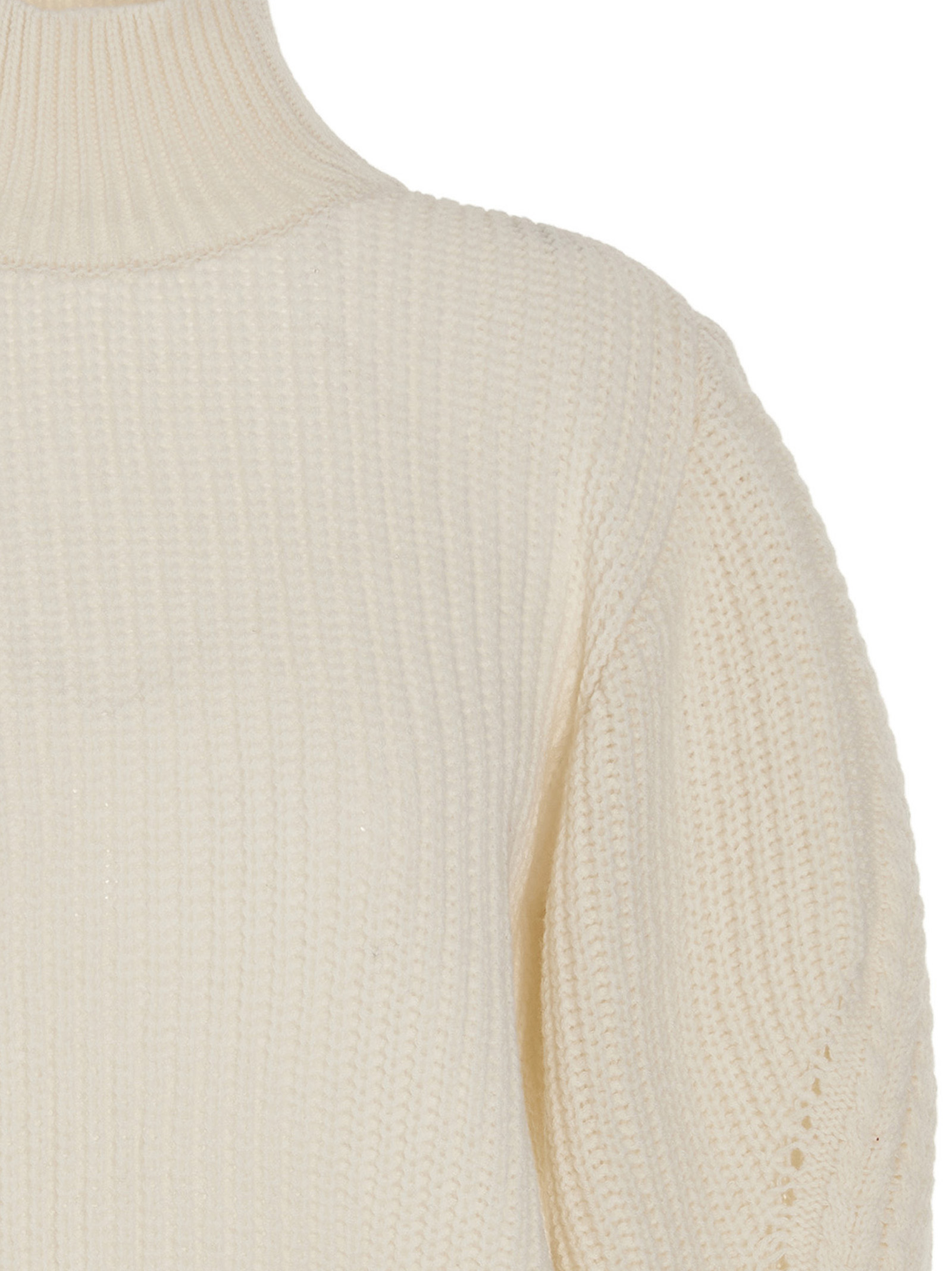 ‘Monique’ wool, turtleneck sweater with long cuffed sleeves, and bare back cut outs.