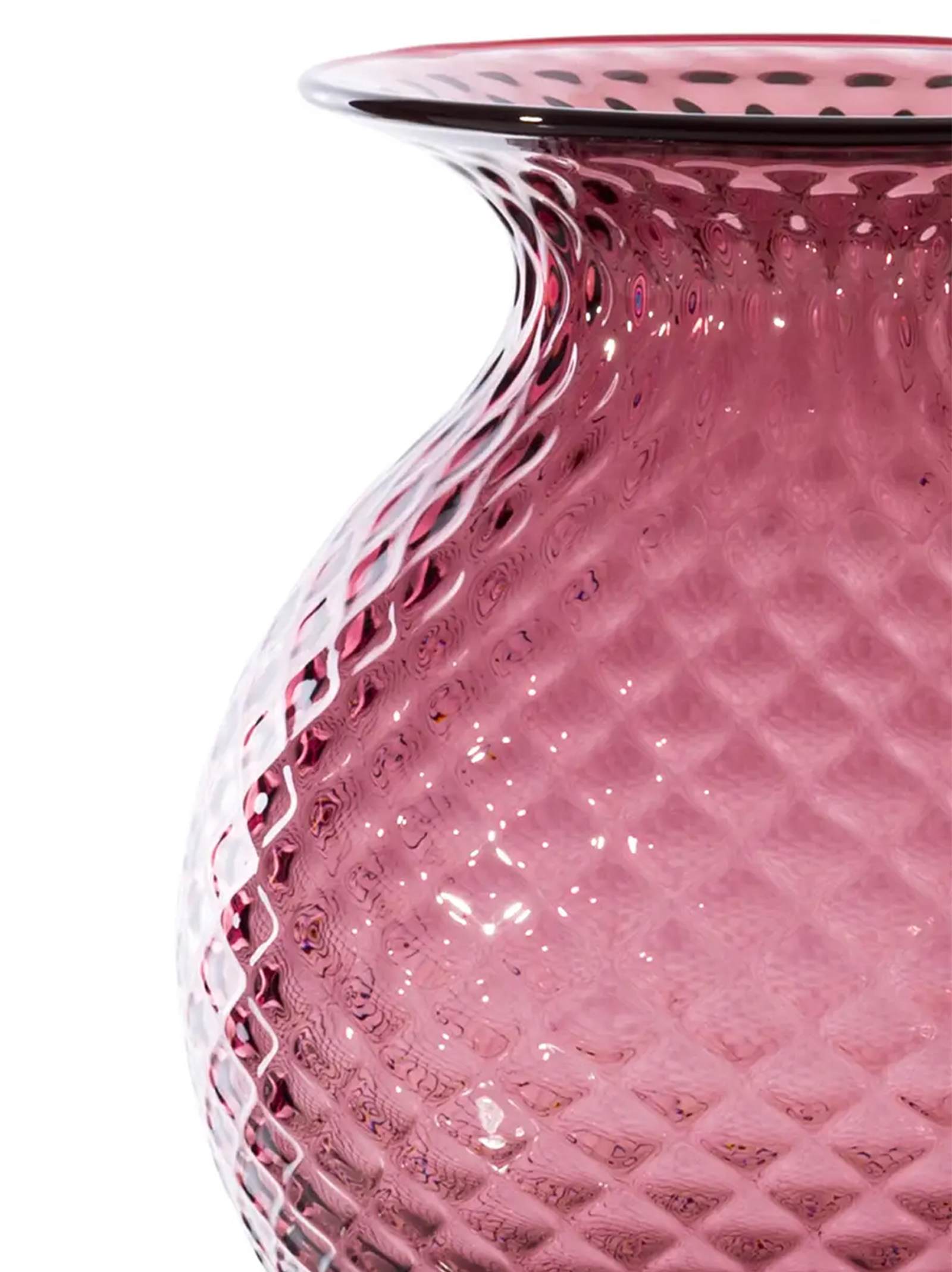 The Balloton collection is expanded and enriched with a version able to accommodate larger floral compositions. The Balloton Fiori are made through a unique artisanal process that recreates the matelassรฉ effect using glass. These vases are handmade, blown and finished with skill, while a colored thread is applied hot, embracing the decorative motif and leaving room for wonder.