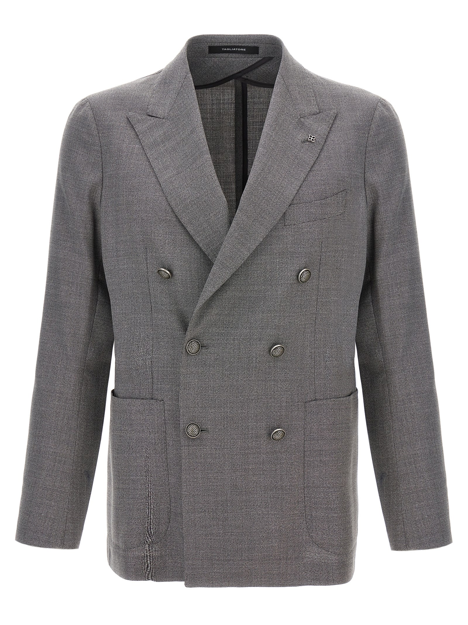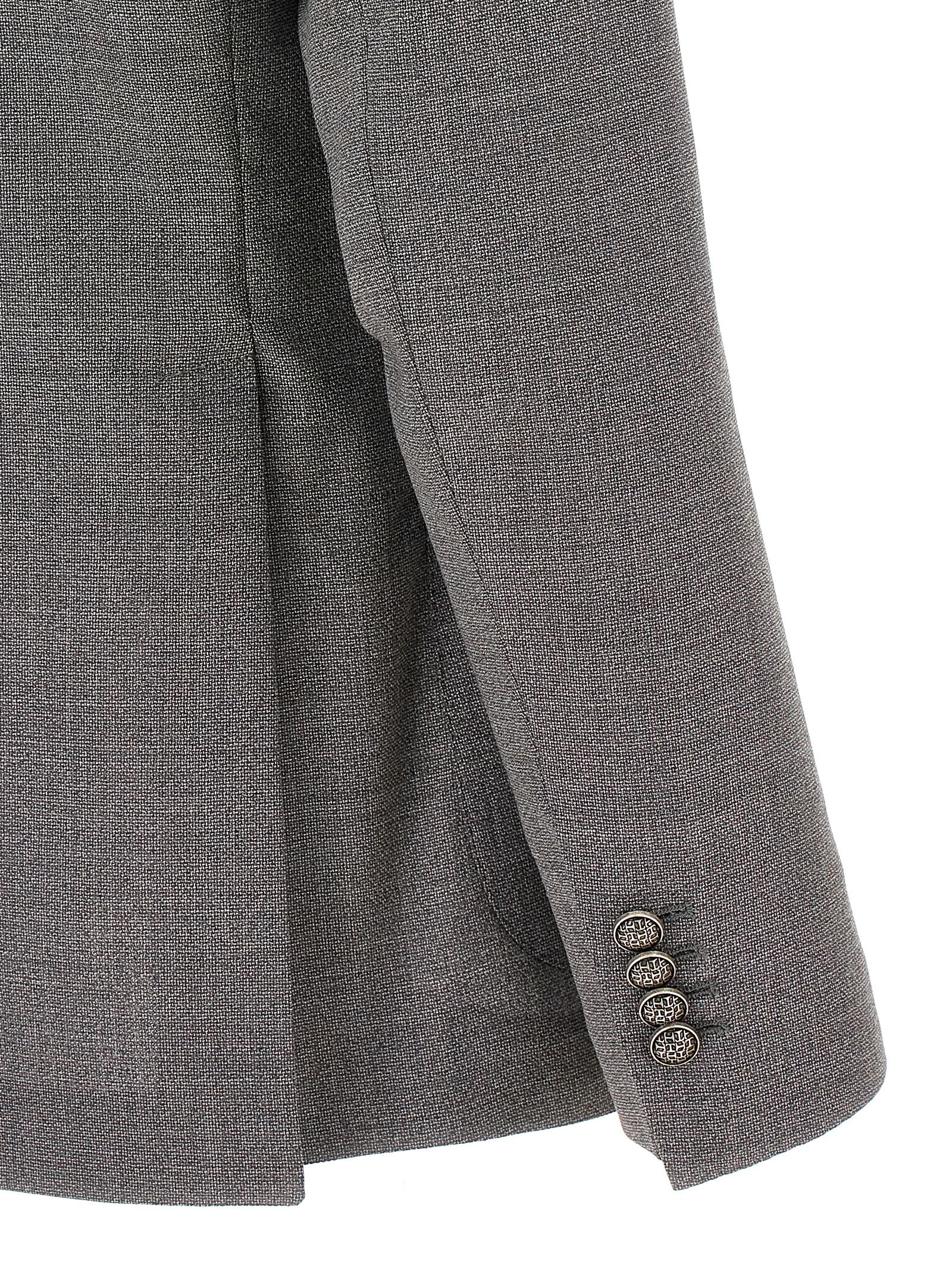 ‘Montecarlo’ blazer in micro opsac wool, double-breasted lapels, button closure, pockets, long sleeves, back vents.