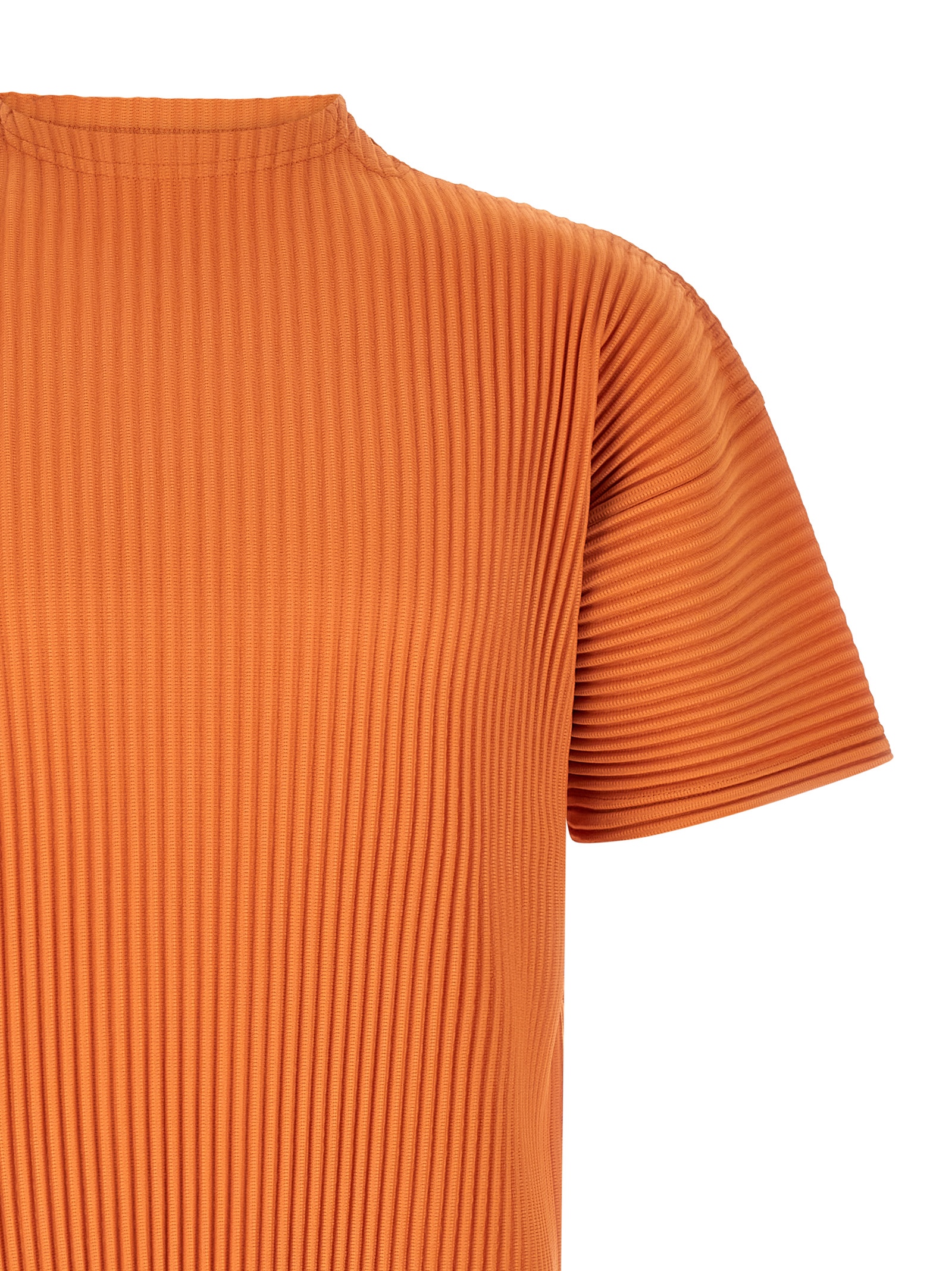 ‘Monthly Colors: March’ pleated top with crew neck with side splits, dropped shoulder, short sleeves.