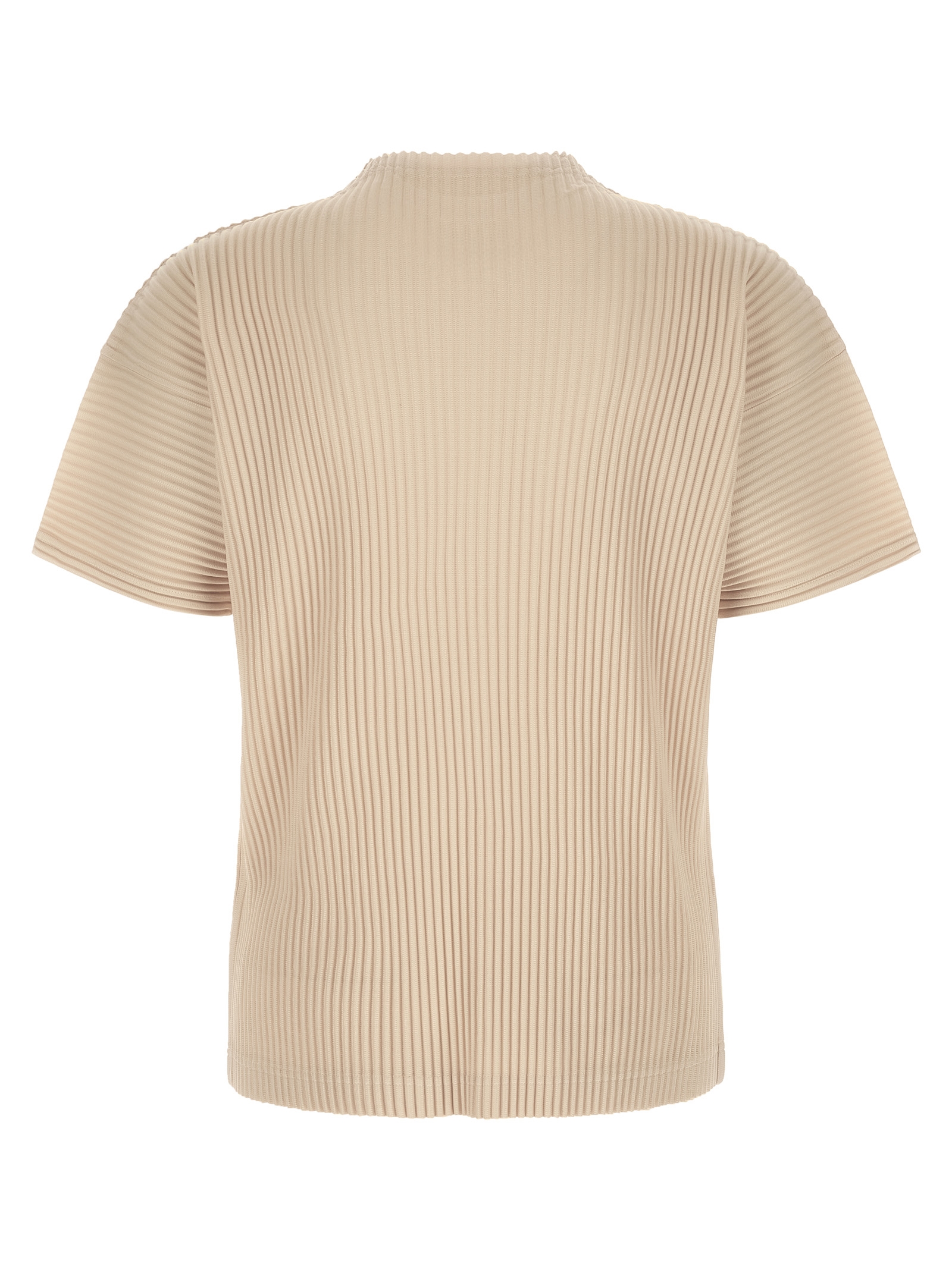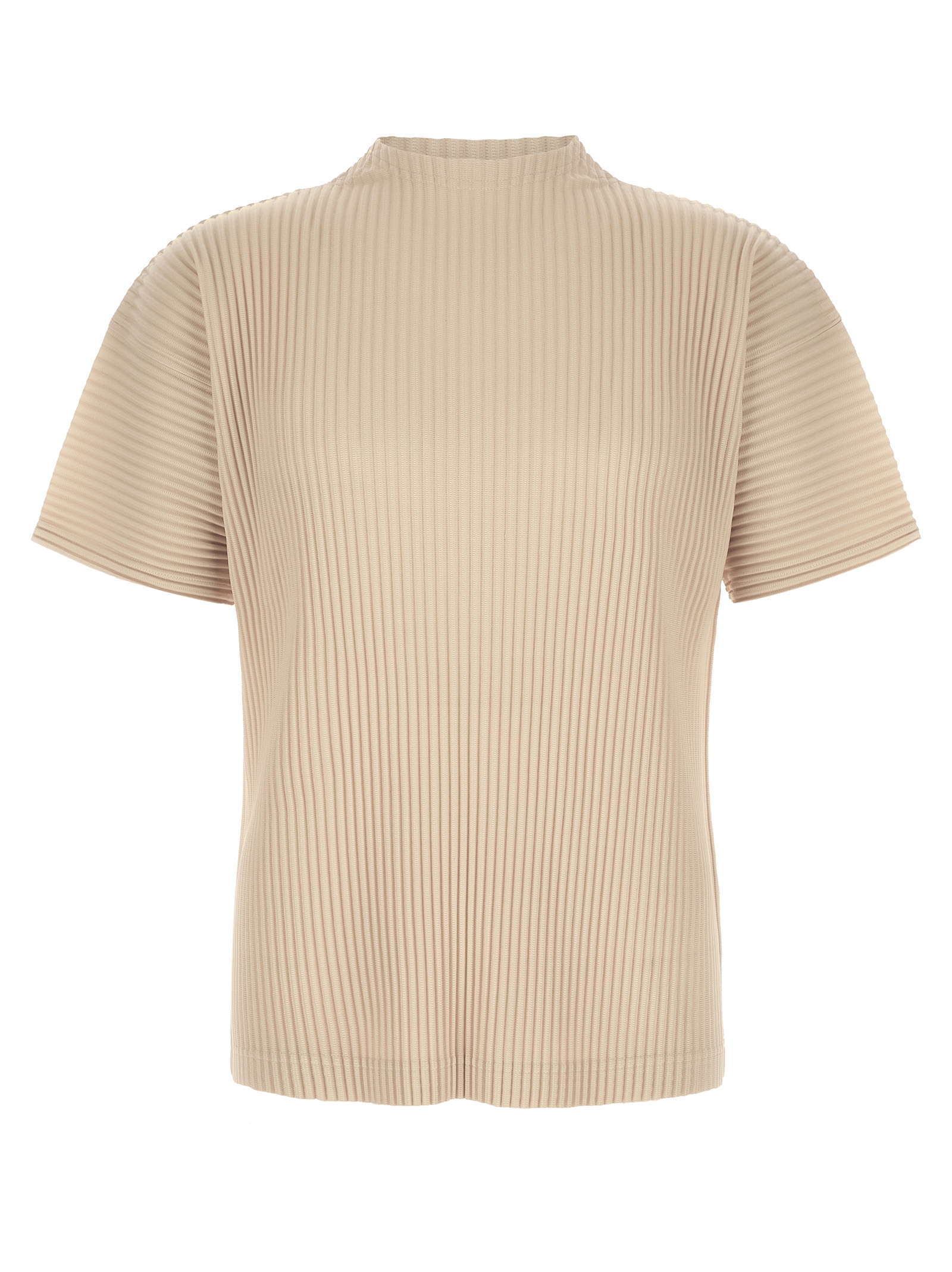 ‘Monthly Colors: March’ pleated top with crew neck with side splits, dropped shoulder, short sleeves.
