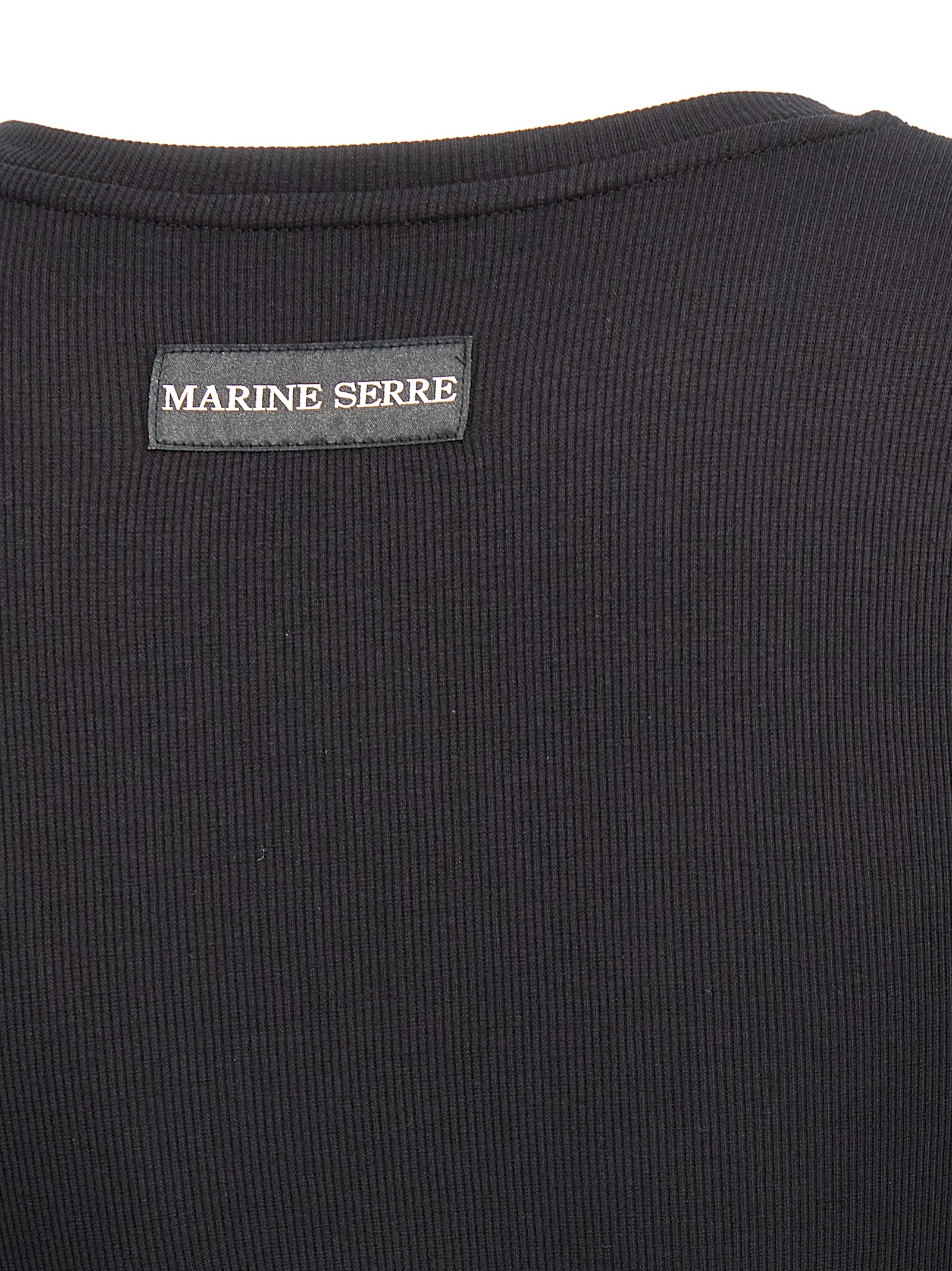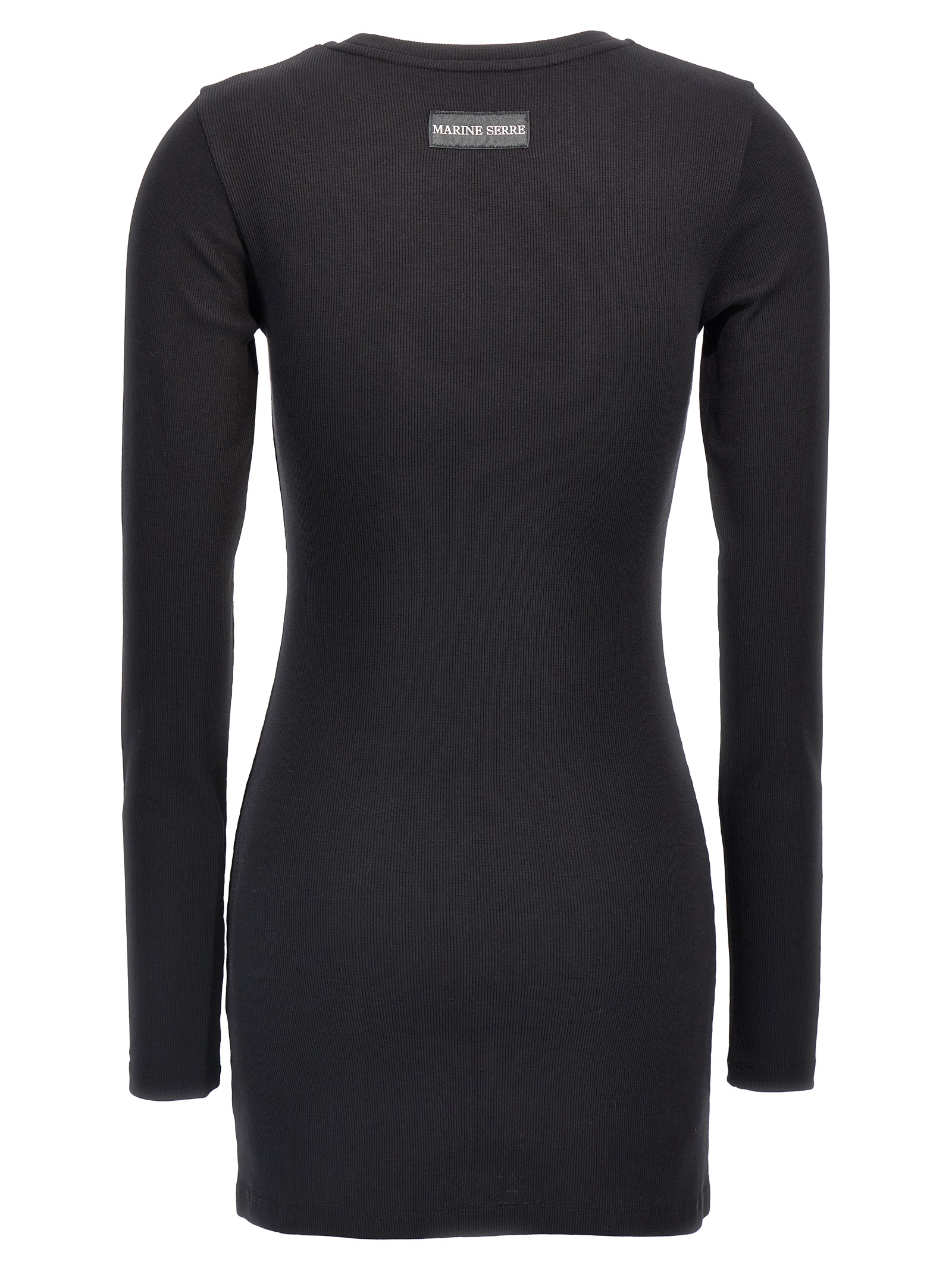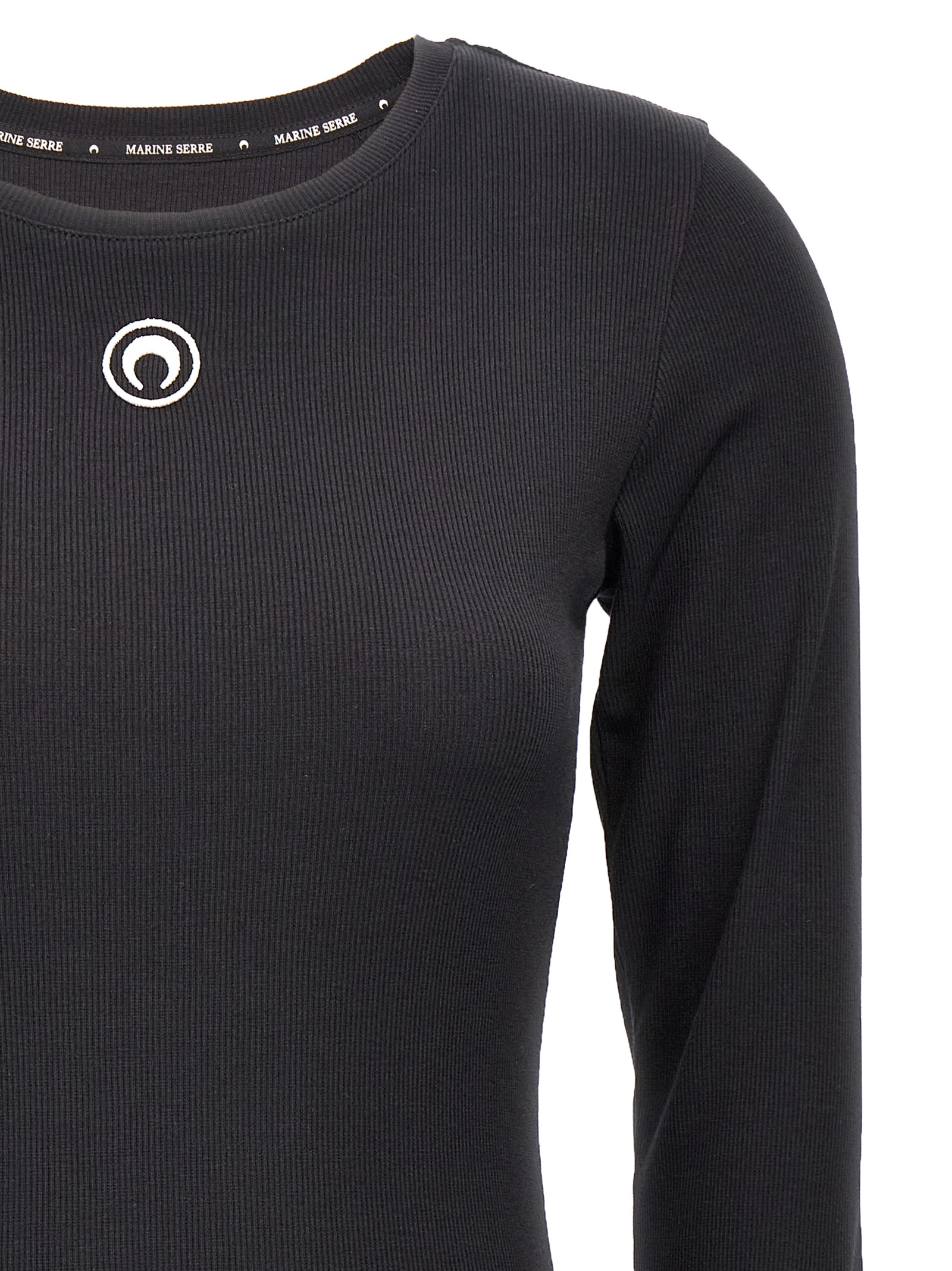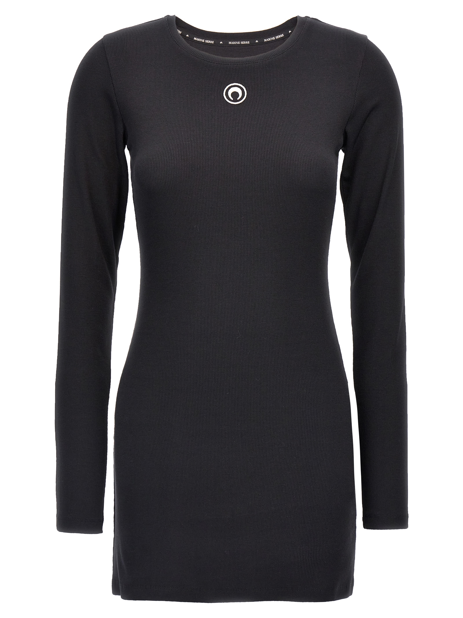 ‘Moon Logo’ ribbed cotton dress with front logo embroidery, crew neck, long sleeves.
