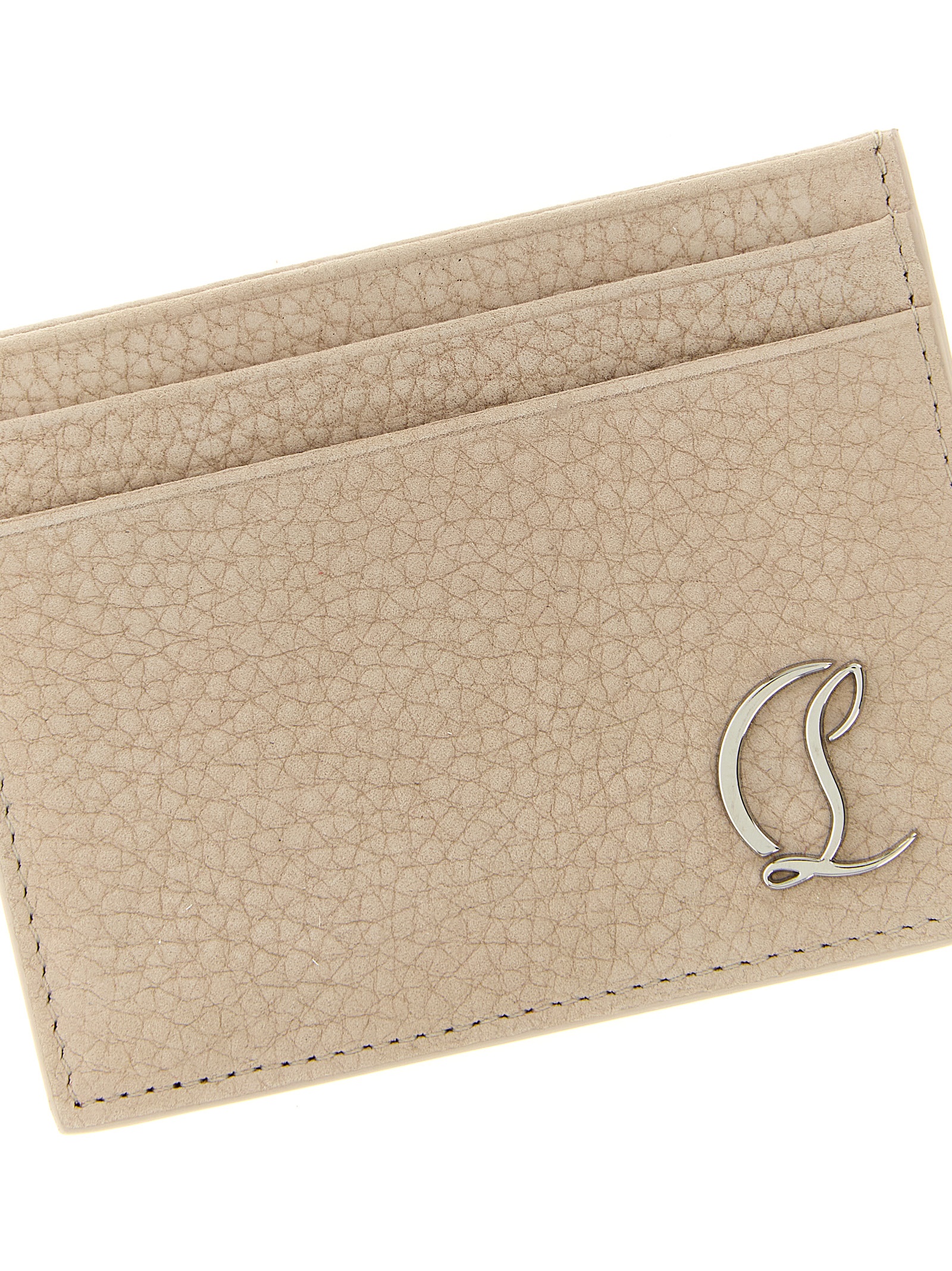 Grain de poudre nubuck card holder with front metal ‘Mooncrest’ logo.