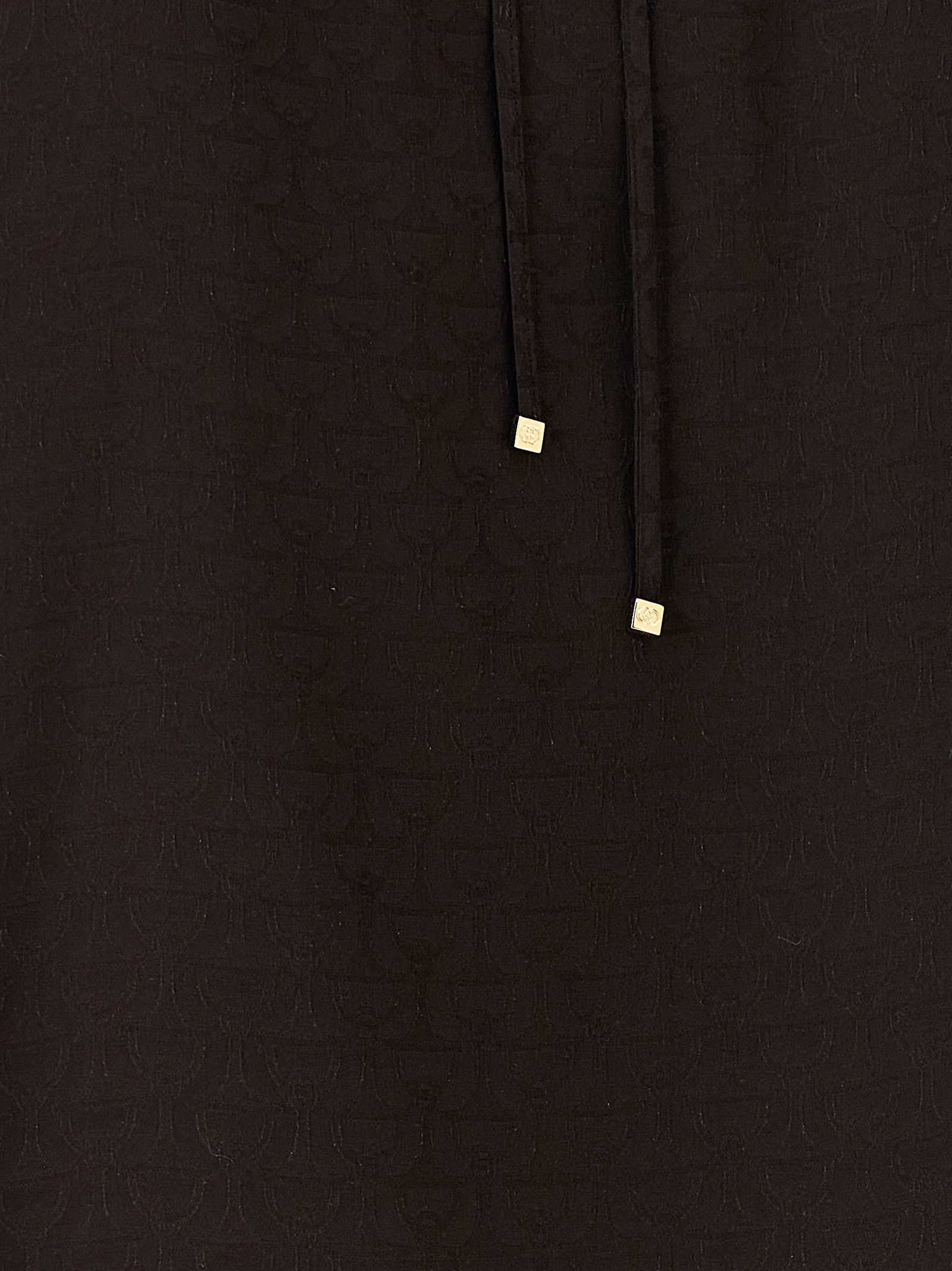‘Morsetto’ jacquard patterned silk shirt, flared silhouette, front V-neck with drawstring to tie as desired, long raglan sleeves with cuffs.