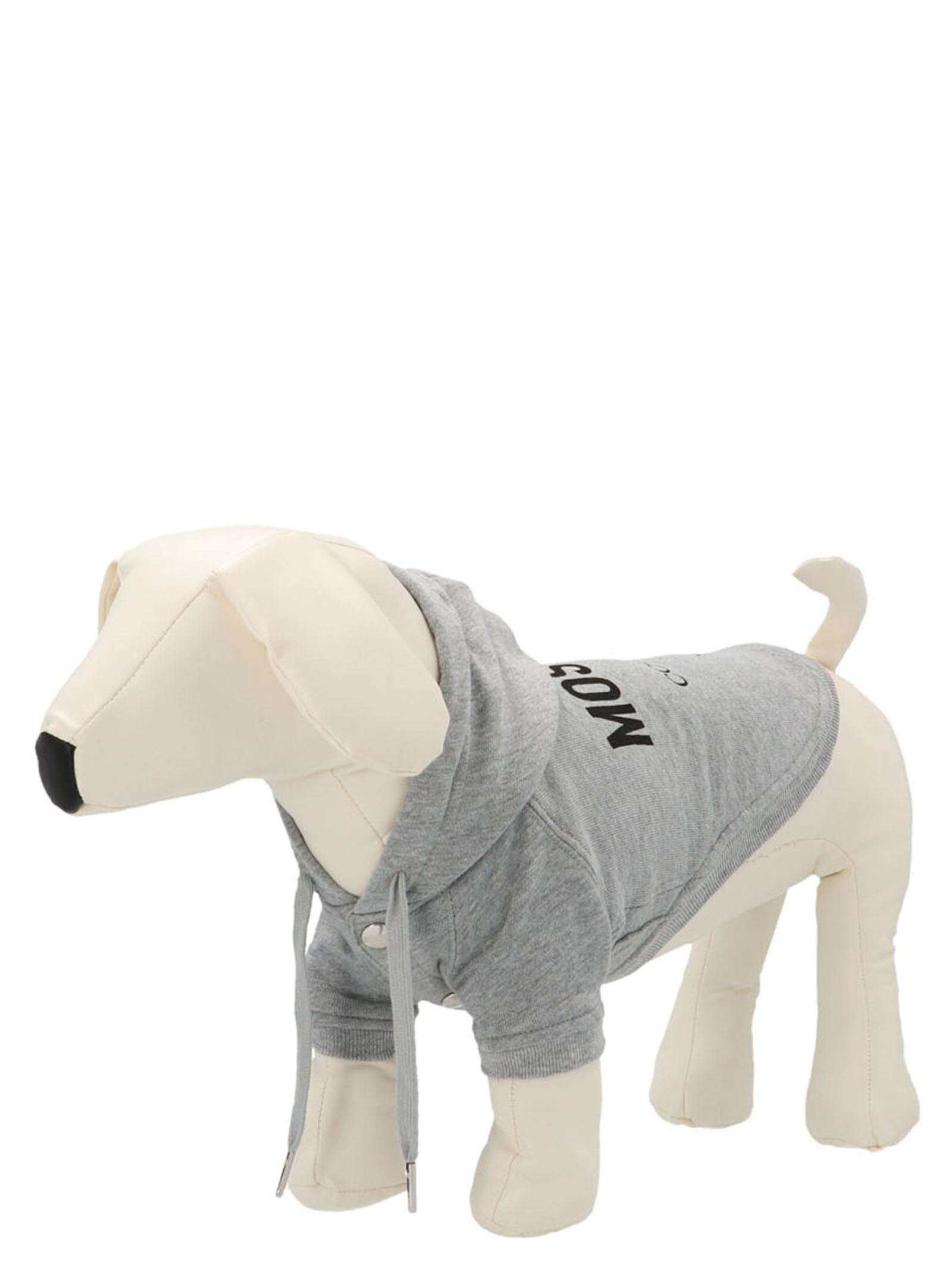 Moschino Pets capsule cotton hoodie featuring clip buttons and a logo print.