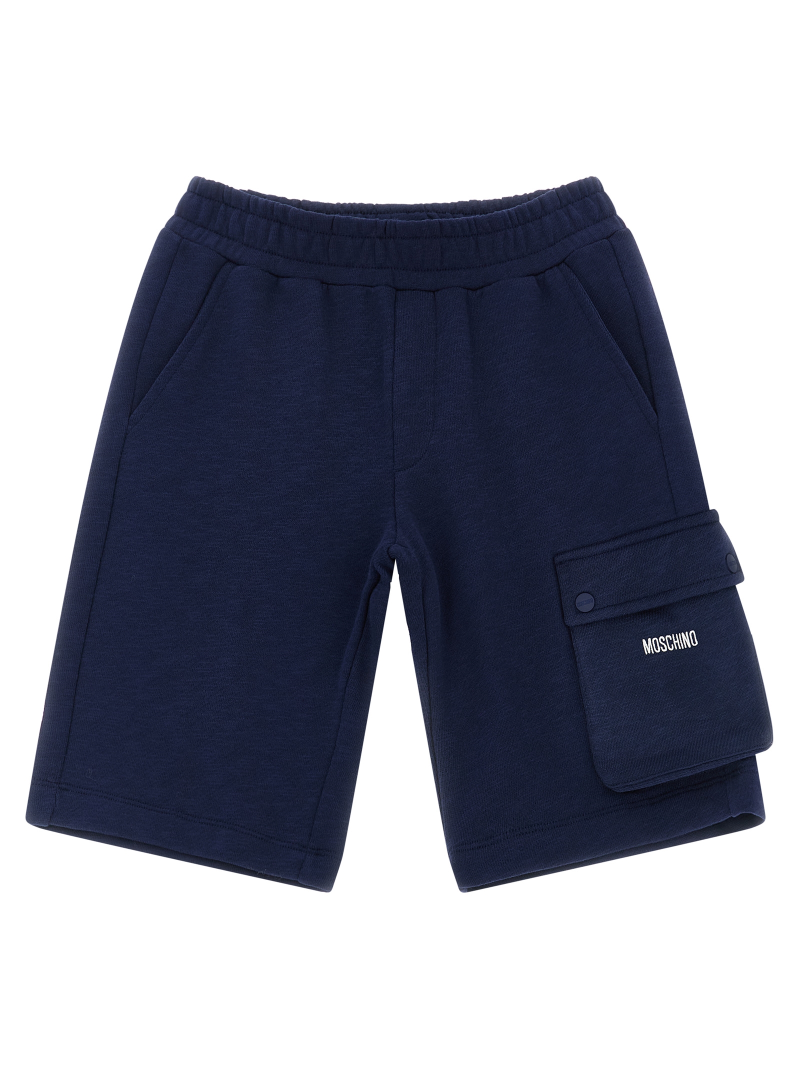 Set consisting of cotton jersey t-shirt with front ‘Moschino Teddy Bear’ print, crew neck, short sleeves and mรฉlange brushed cotton bermuda shorts, cargo pocket with contrasting embroidered logo, elastic waistband, trompe l’oeil flap, pockets.