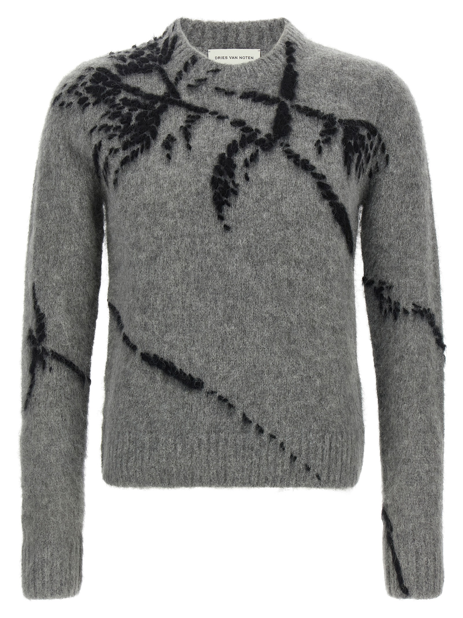 ‘Mouche’ sweater in alpaca and merino wool blend with embroideries, crew neck, long sleeves.