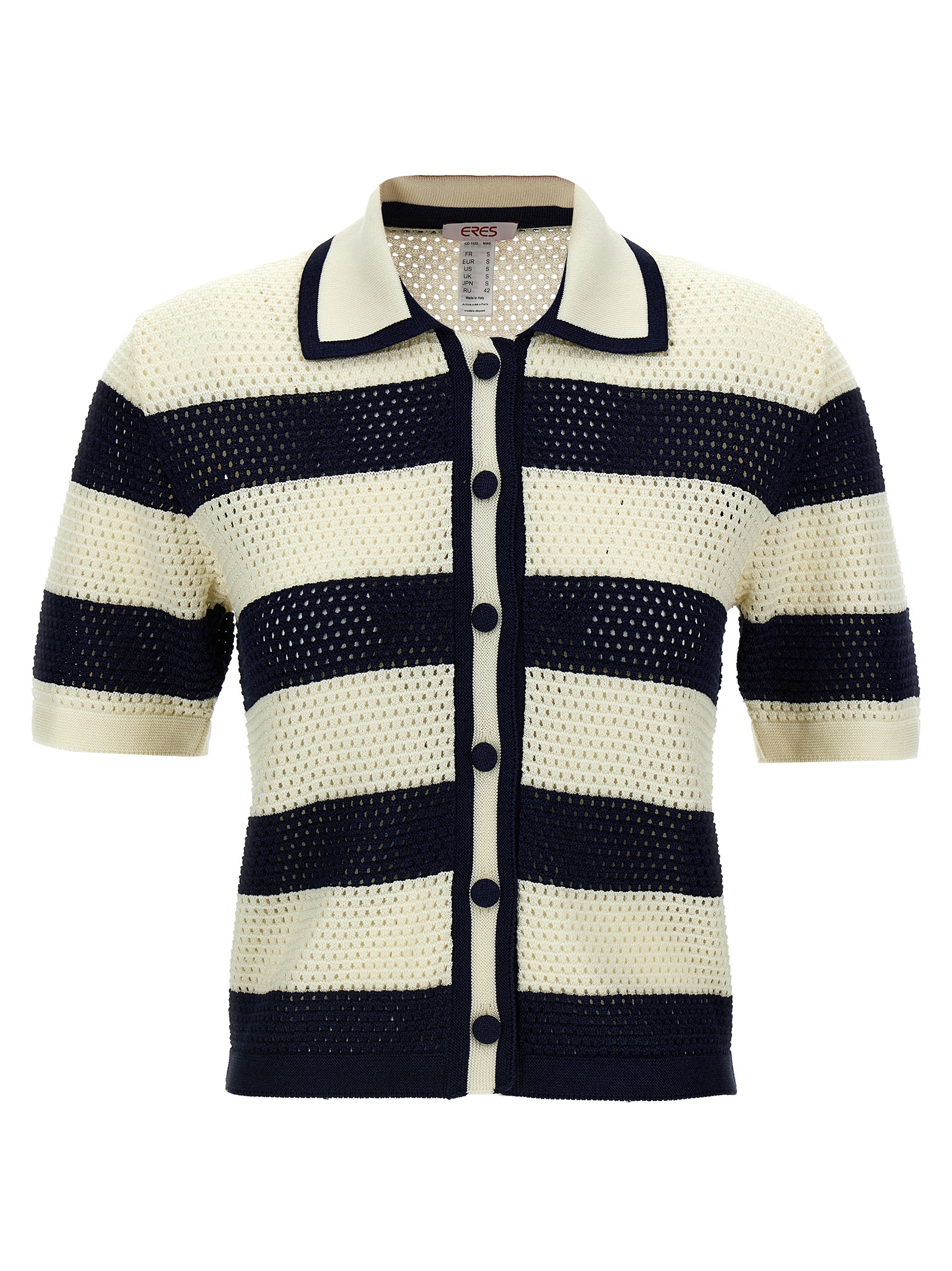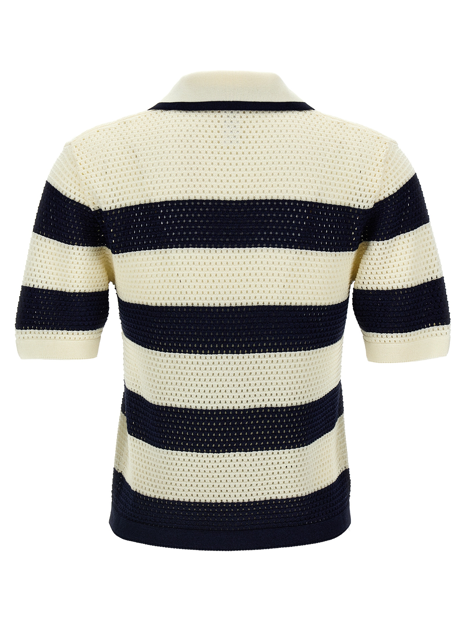 ‘Mouette’ polo shirt in cotton blend and perforated viscose knit with collar, front button closure, short sleeves.