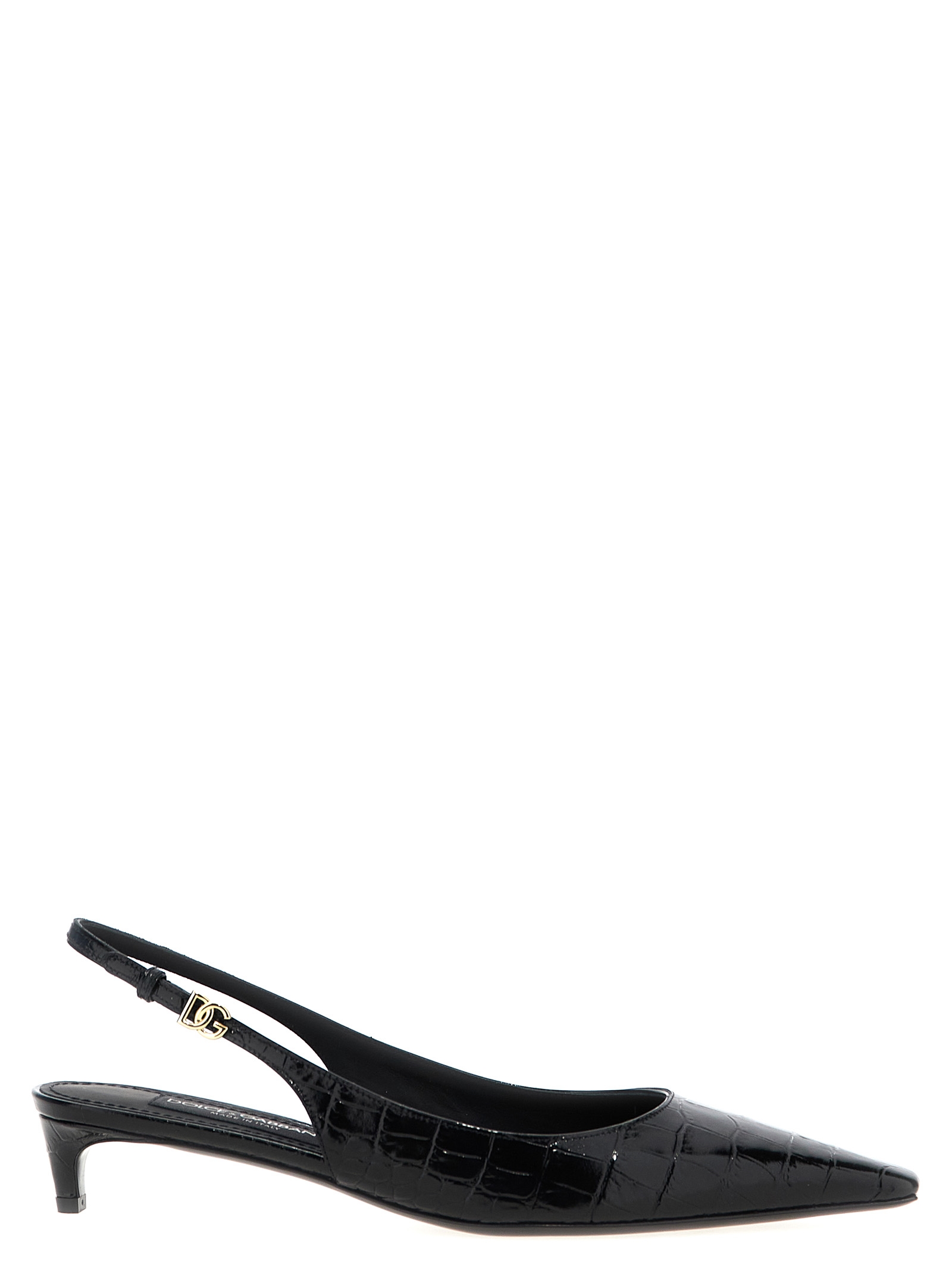‘Mun’ crocodile-print leather slingbacks with adjustable strap, low heel.