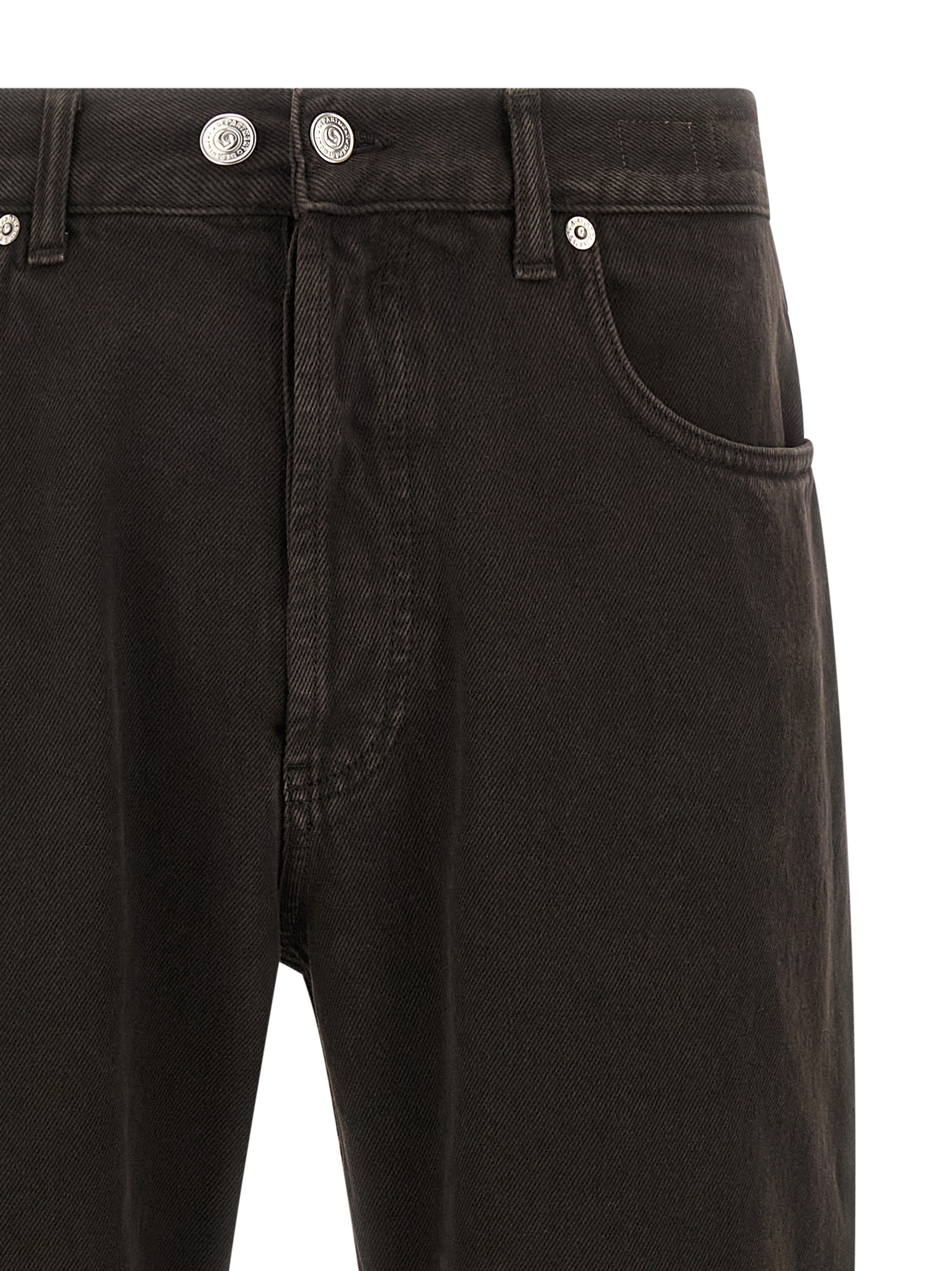 ‘Musso’ cropped bull jeans in used-effect garment-dyed cotton with tapered straight leg, mid waist, front button closure, five pockets, back logo tag.
