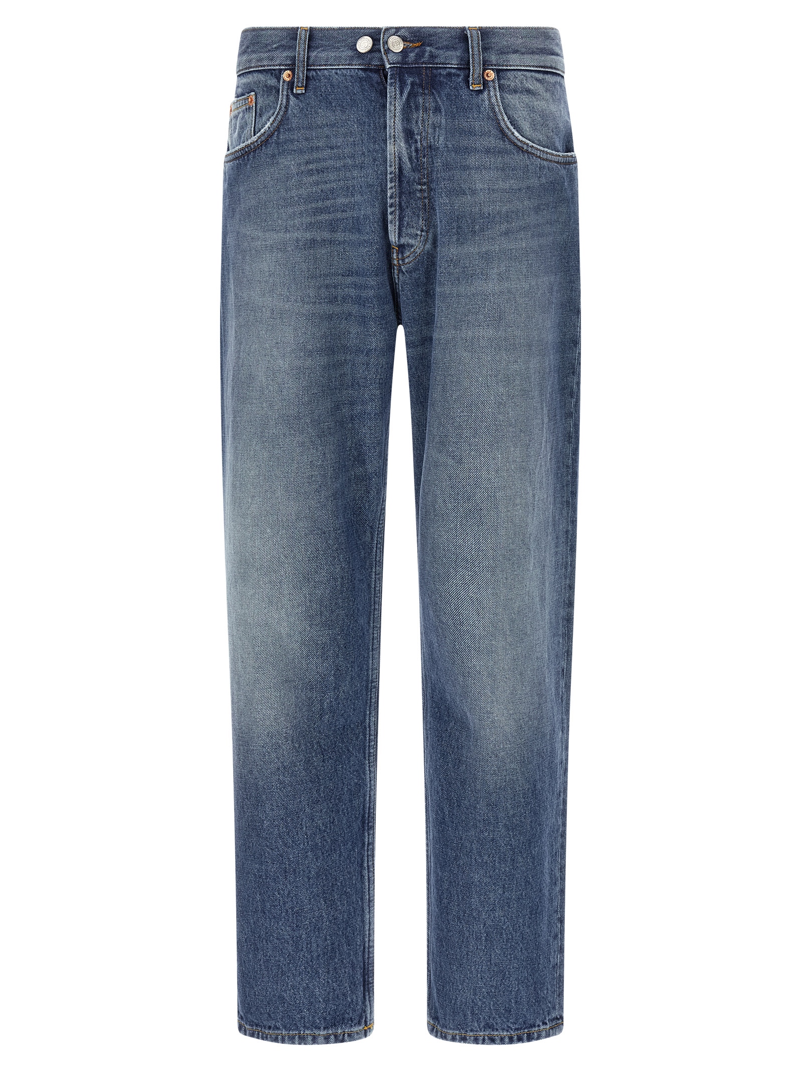 ‘Musso’ used-effect stonewashed cotton denim jeans, straight cropped leg, front button closure, five pockets, back logo tag.