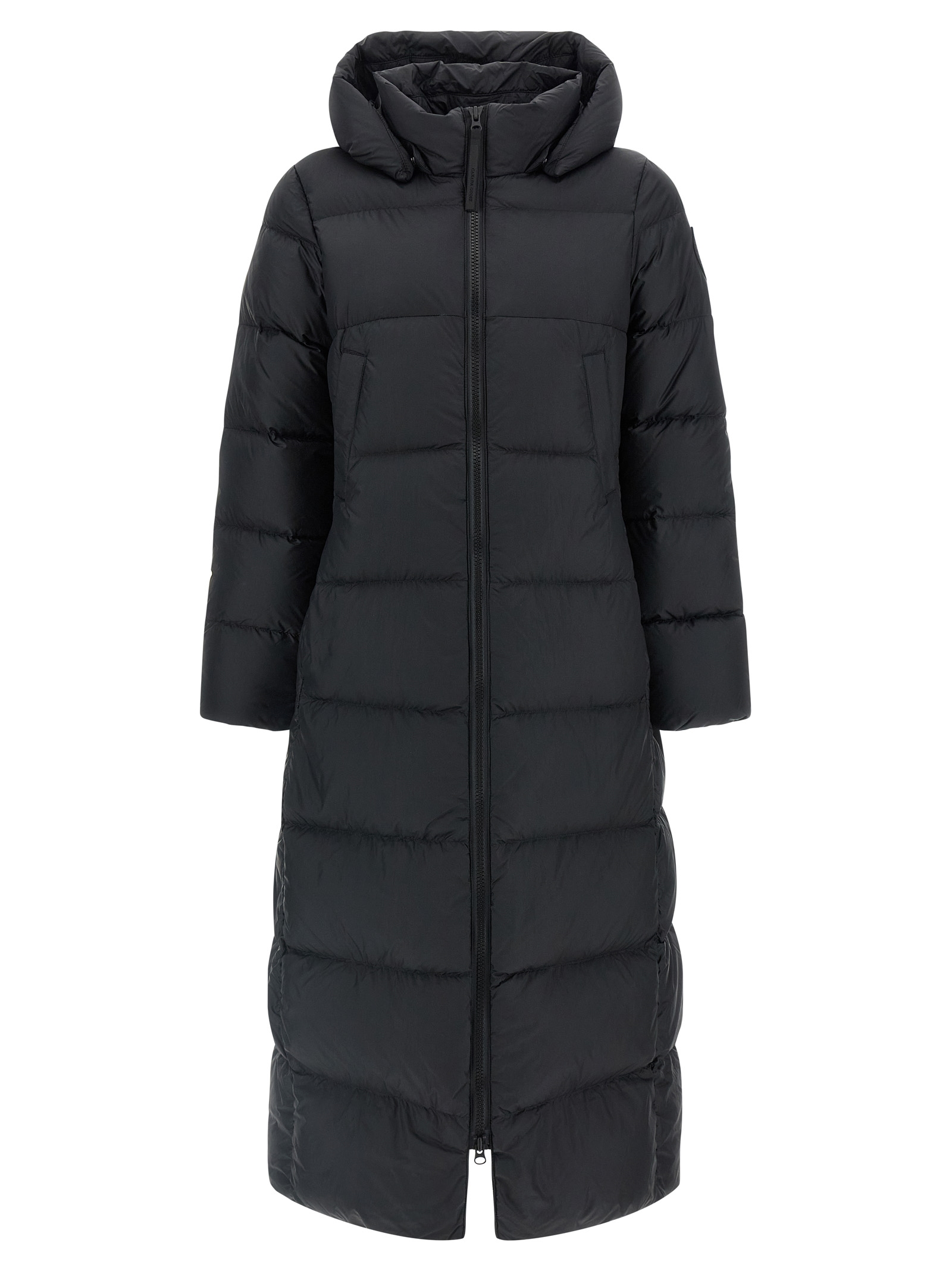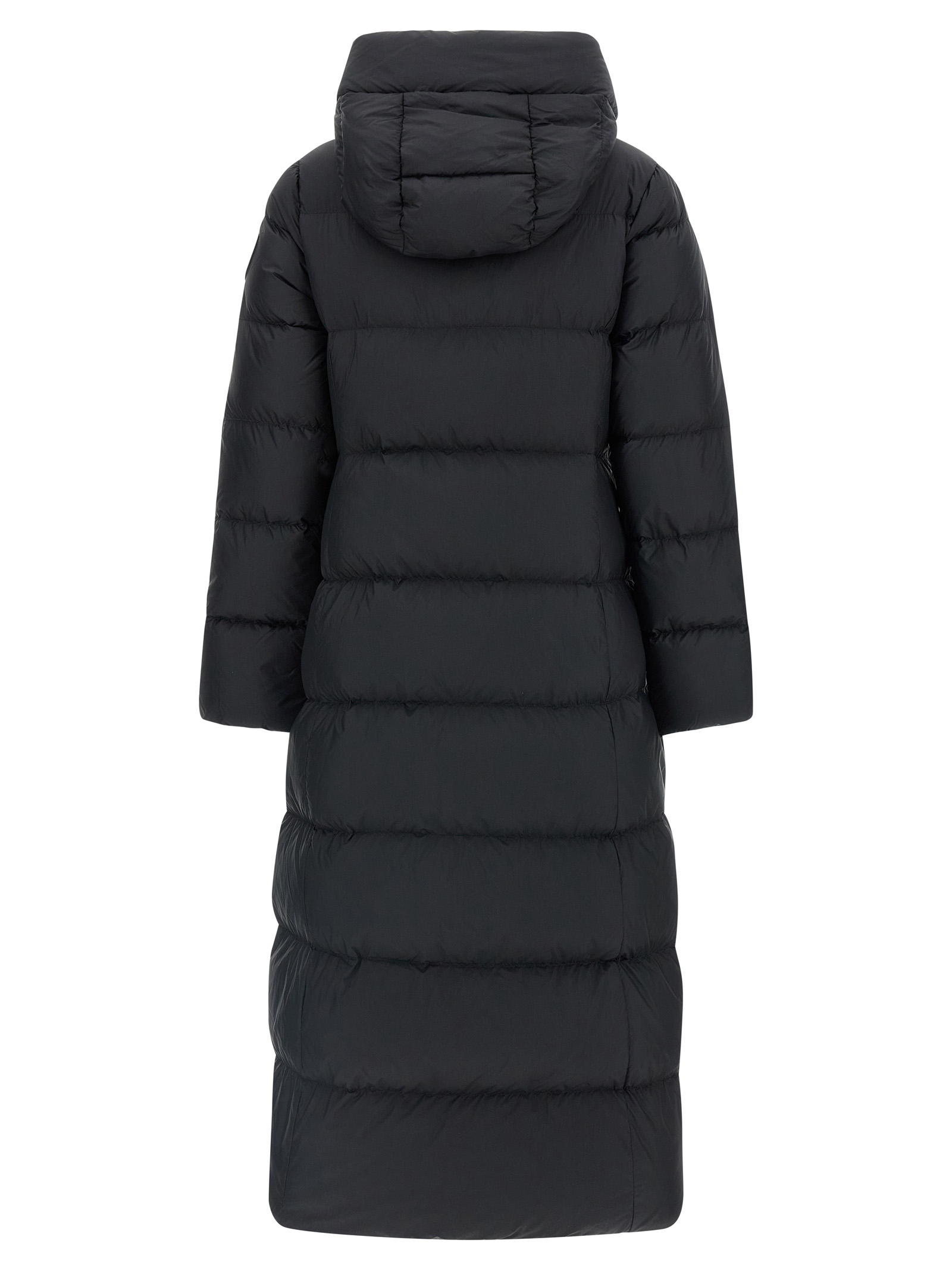 Long ‘Mystique Puffer’ down jacket in quilted Lumina fabric with goose down padding, adjustable and removable hood, high neck, front zip closure, pockets, long sleeves with windproof cuffs and a tone-on-tone logo patch.
