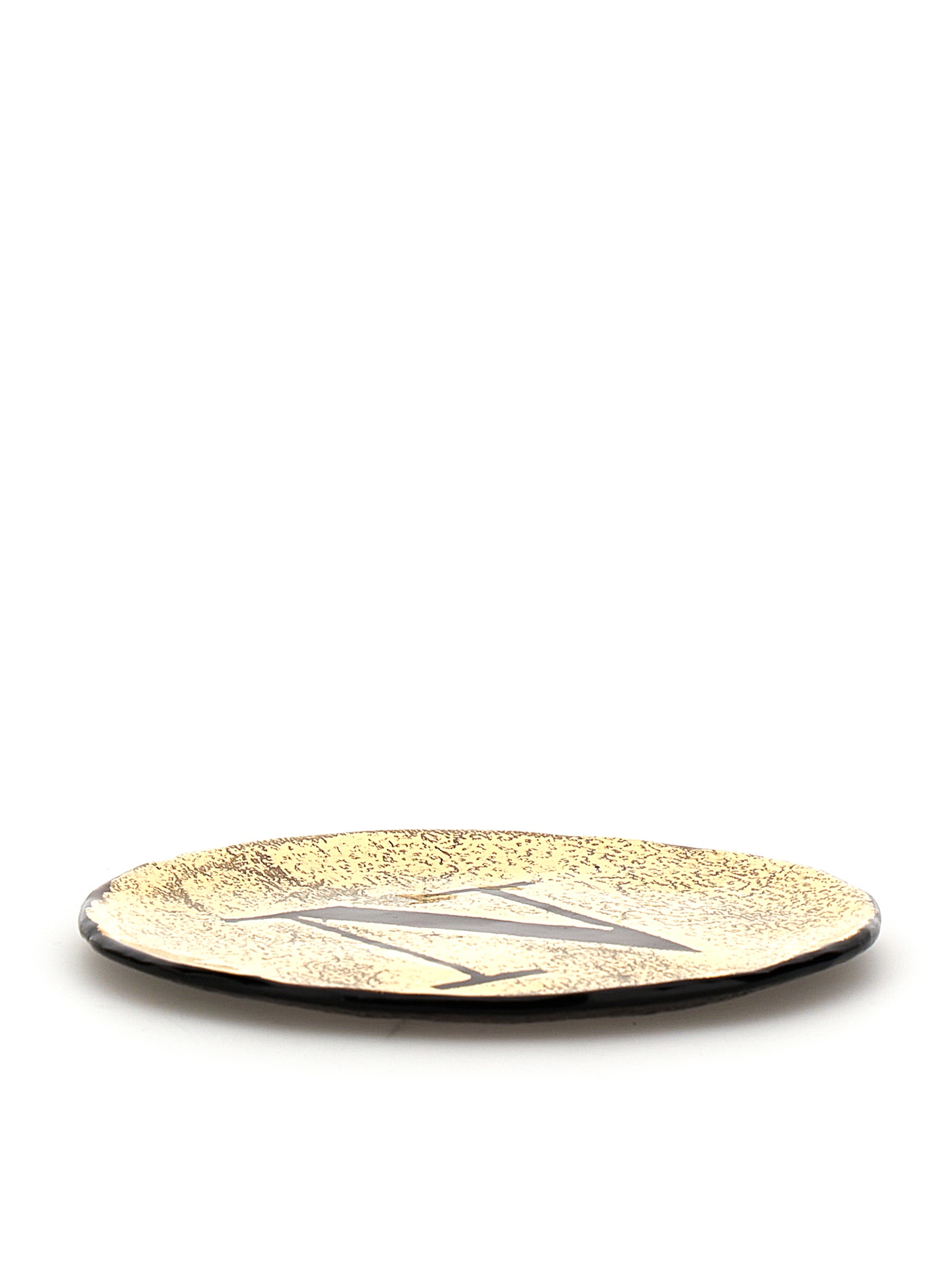 Glass tray in pure gold with hand-painted letter ‘N’.