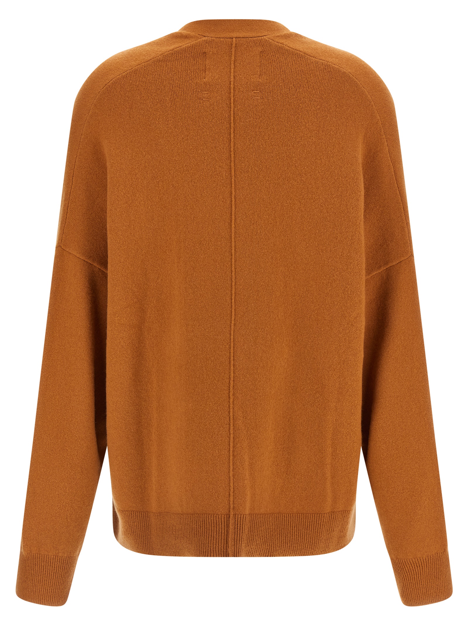 ‘N°24 Tokio’ cashmere blend cardigan, V-neck, front corozo button closure plus a side one that can change the fit, side slits, pockets, long sleeves with cuffs and dropped shoulder.