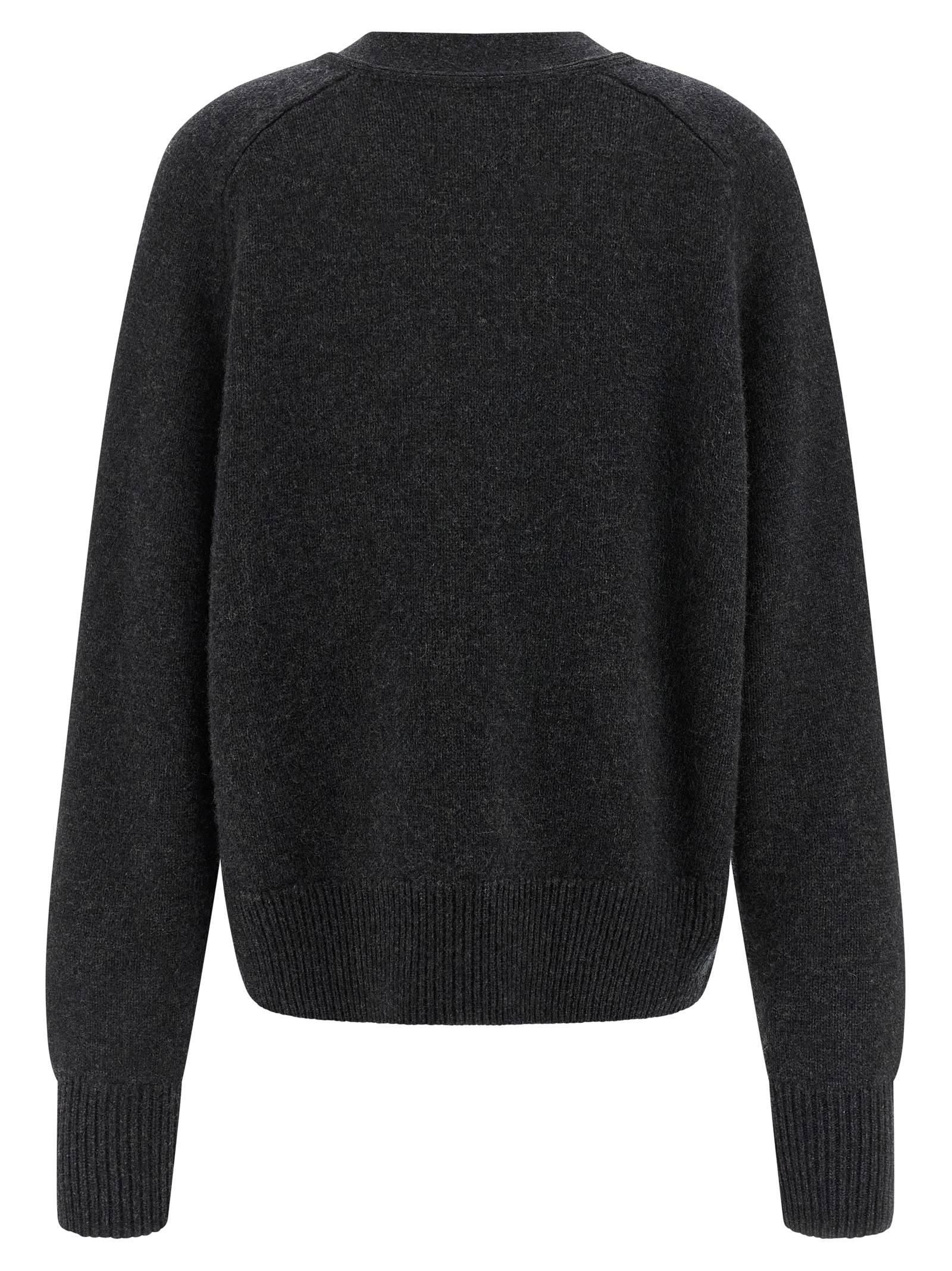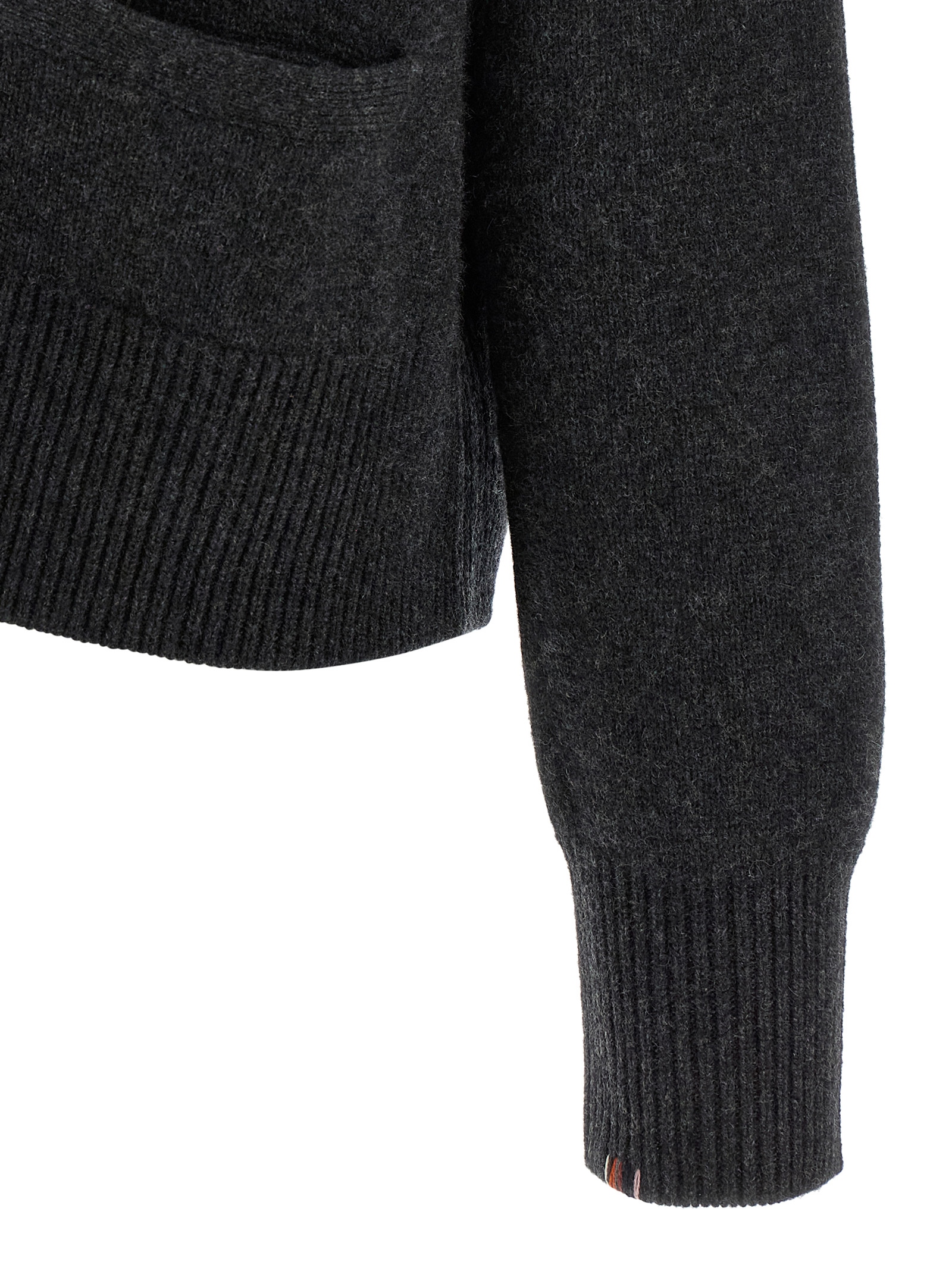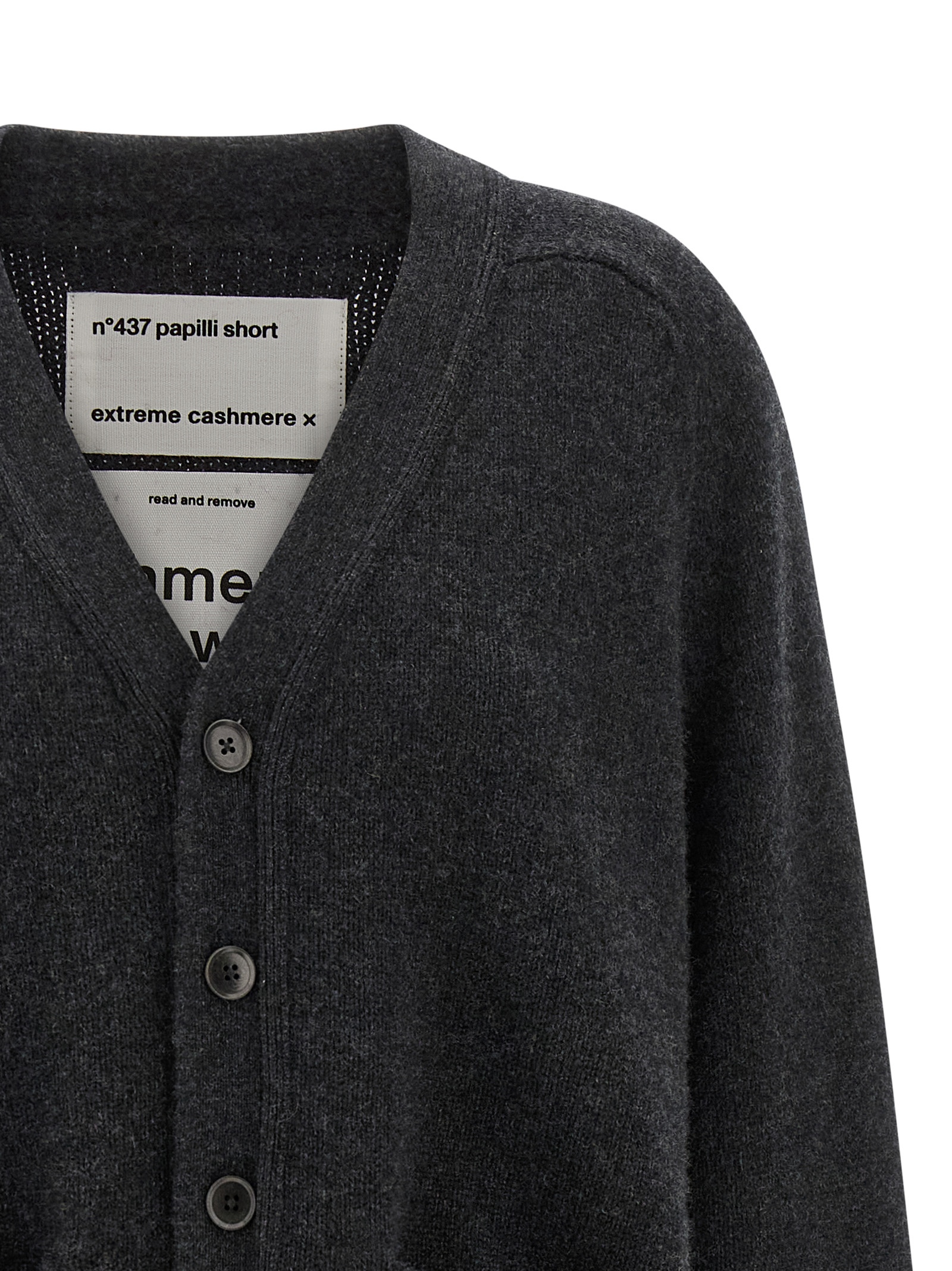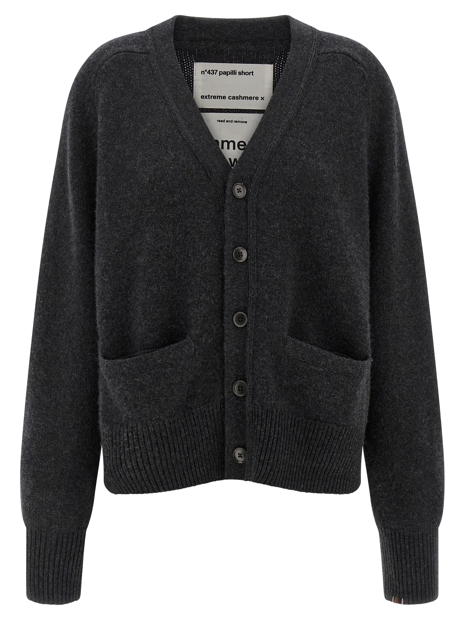 ‘N°437 Papilli Short’ heavy knit cashmere cardigan with V-neck, front button closure, pockets, long sleeves with cuffs and dropped shoulders.