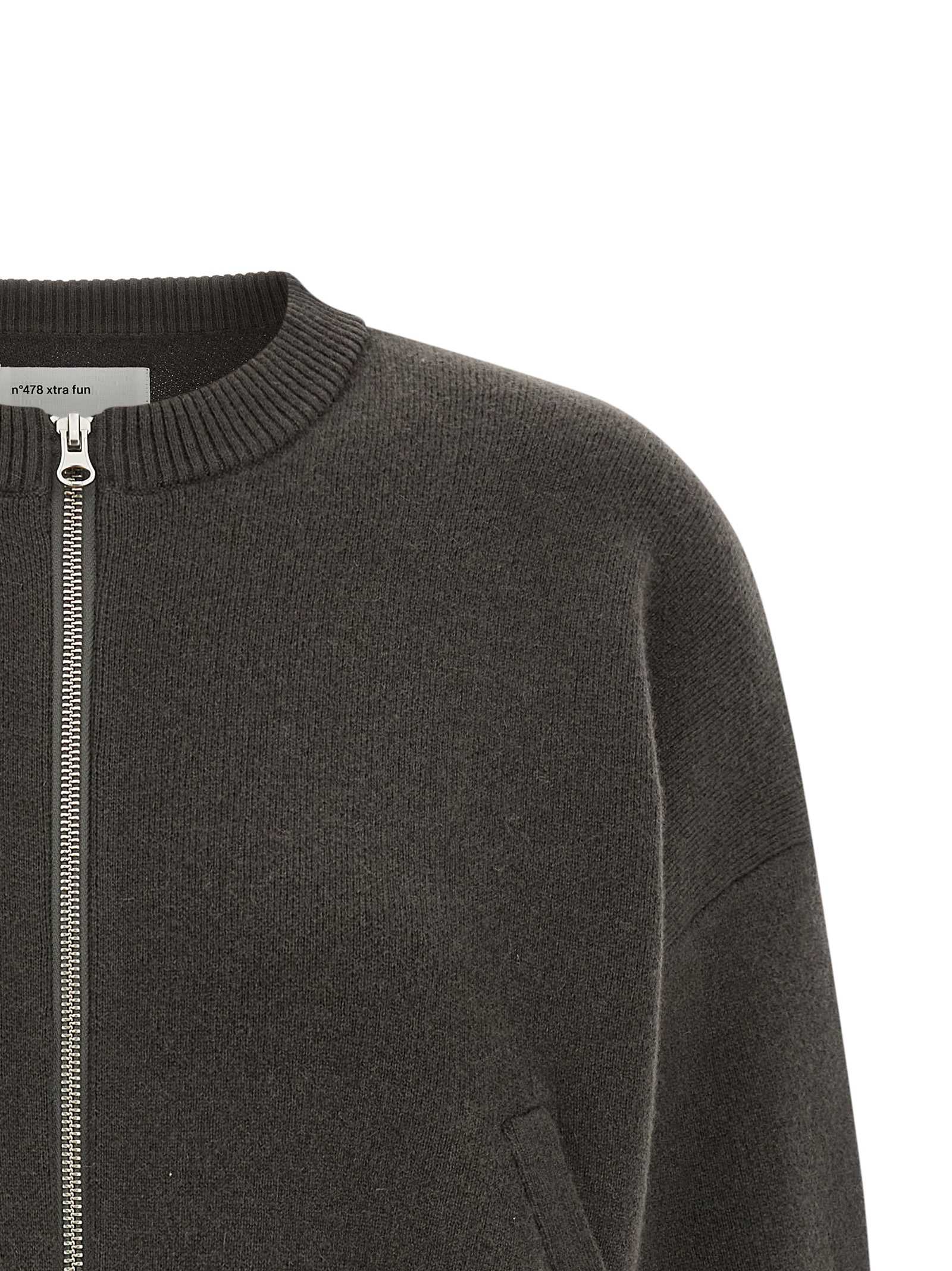 ‘N°478 Xtra Fun’ cardigan in a luxurious jacquard sweater, slightly cropped bomber-inspired model, crew neck, front zip closure, pockets, long sleeves with cuffs and dropped shoulder, band on the hem.