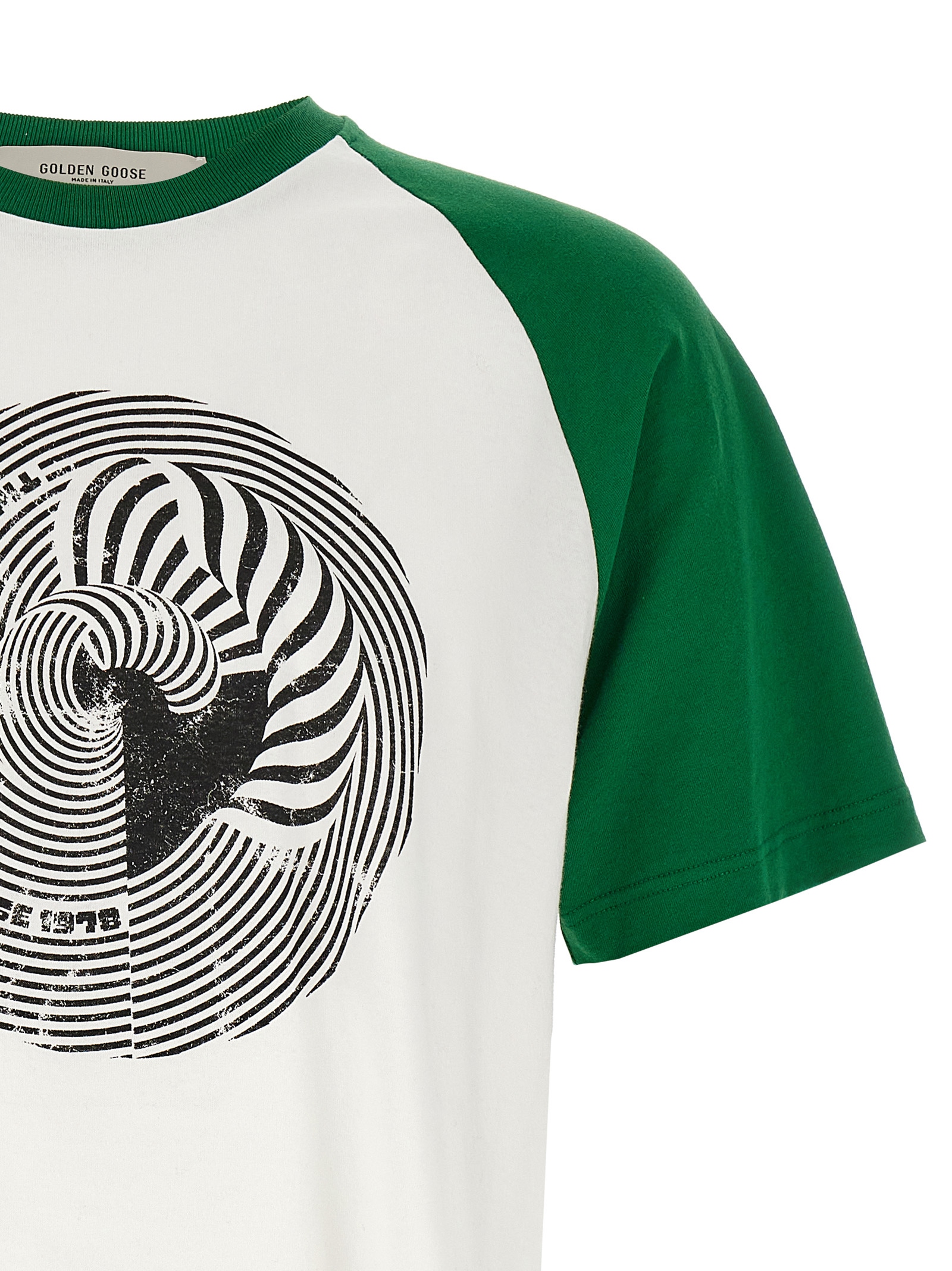 ‘Nam’ cotton T-shirt with front print, crew neck, short sleeves, raw cut hem.