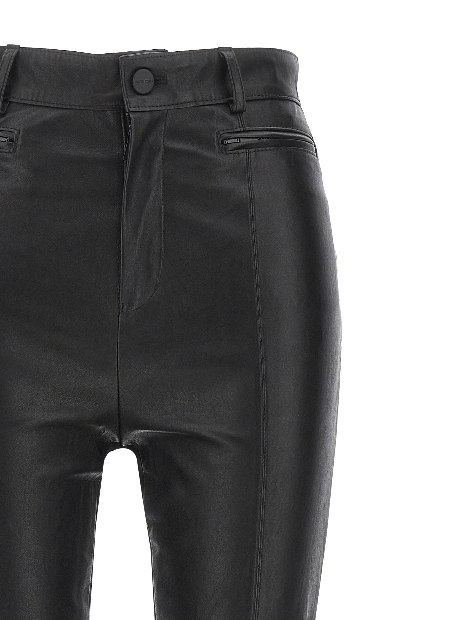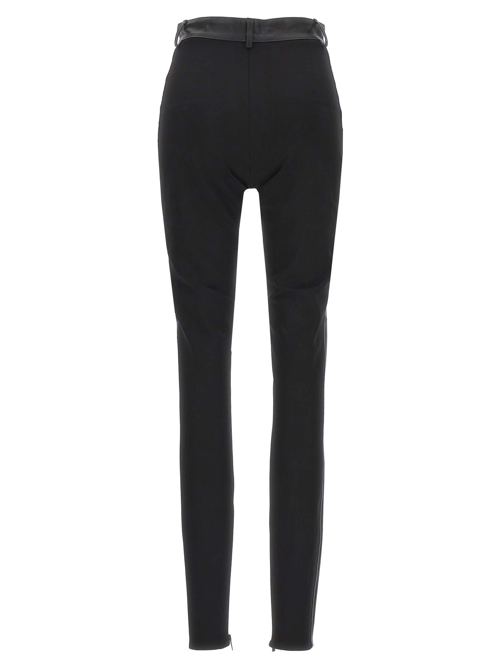 ‘Napa Leather’ leggings in leather and stretch fabric, zip and button closure, pockets, zip detail on the bottom of the leg.