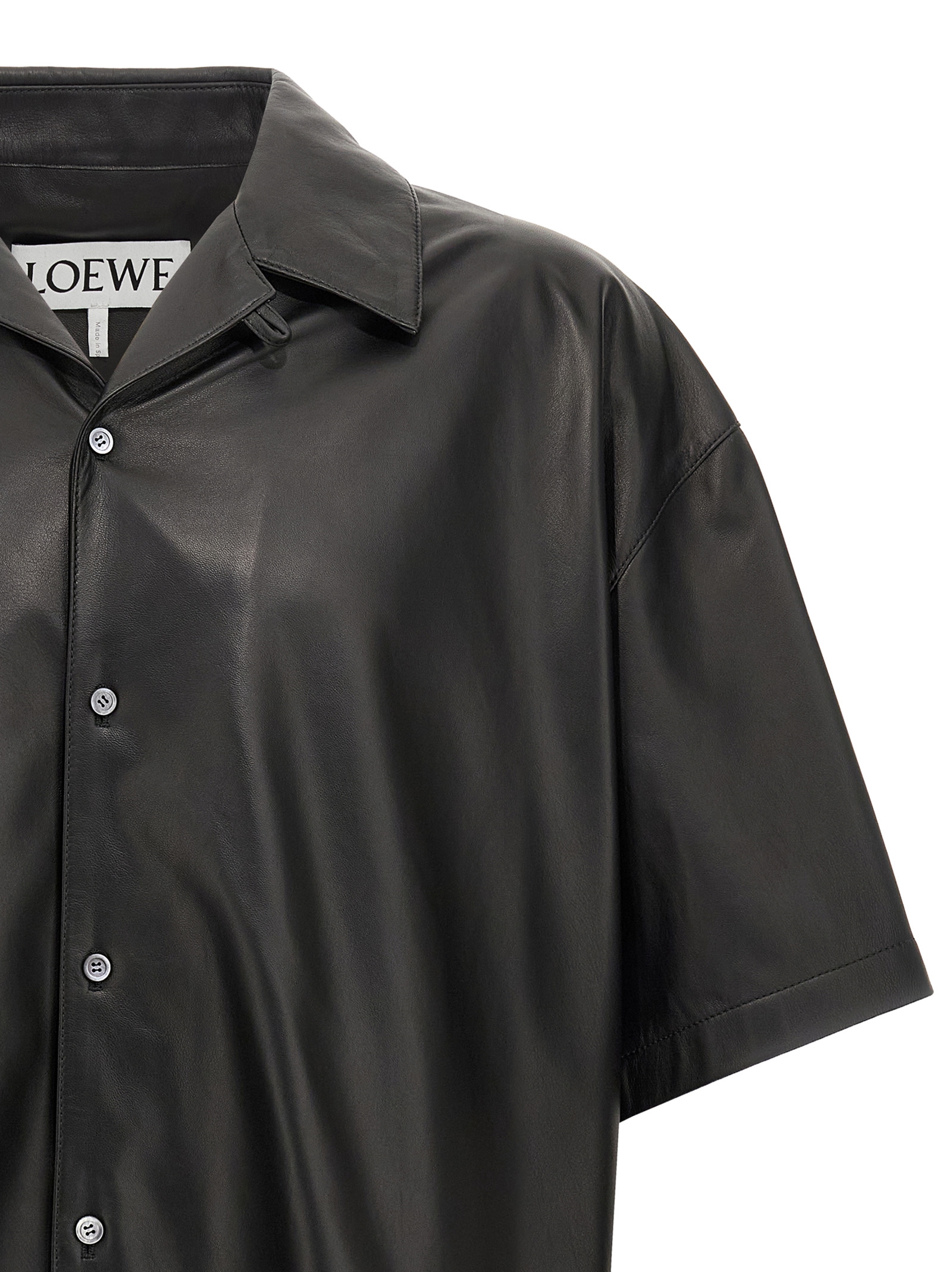 Lamb nappa shirt with embossed Anagram logo at the back, camp collar, front button closure, short sleeves with dropped shoulders, unlined.