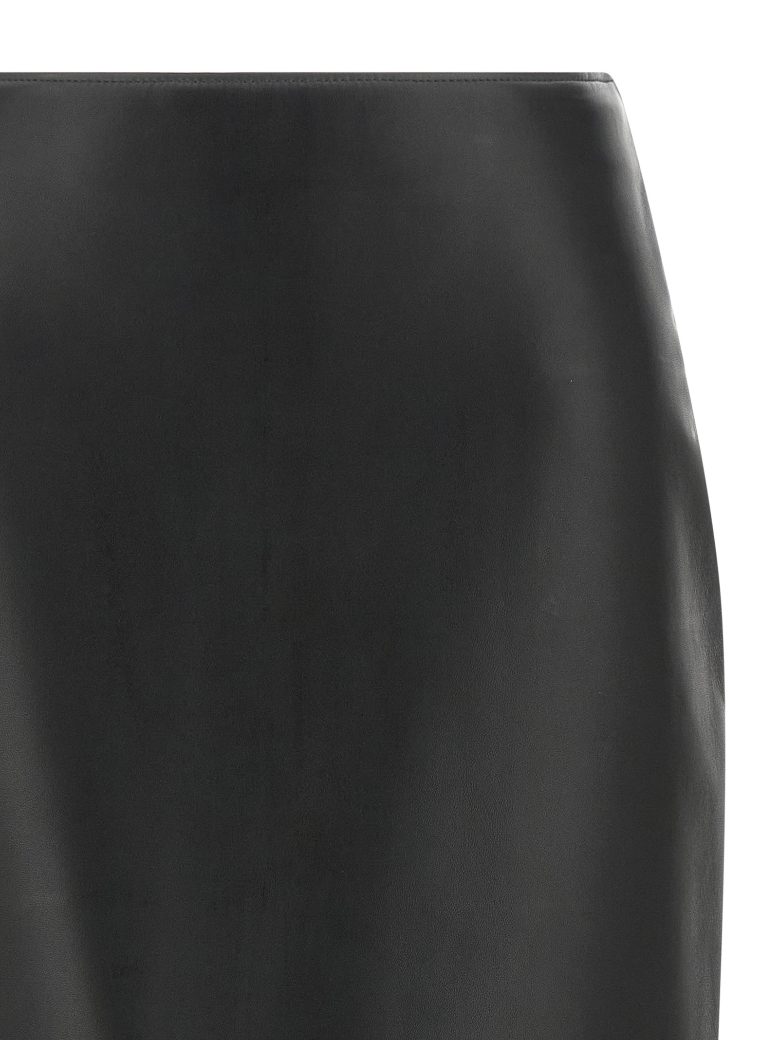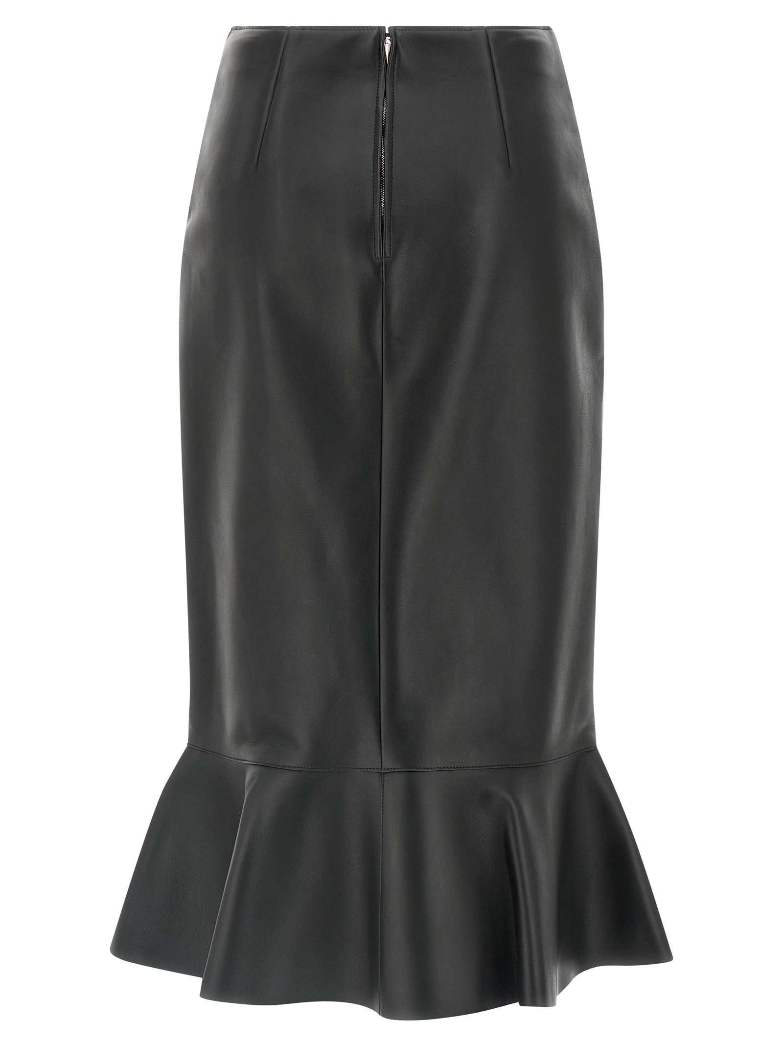 Nappa midi skirt, high waist, flared peplums silhouette with flounces, back zip closure, lining.
