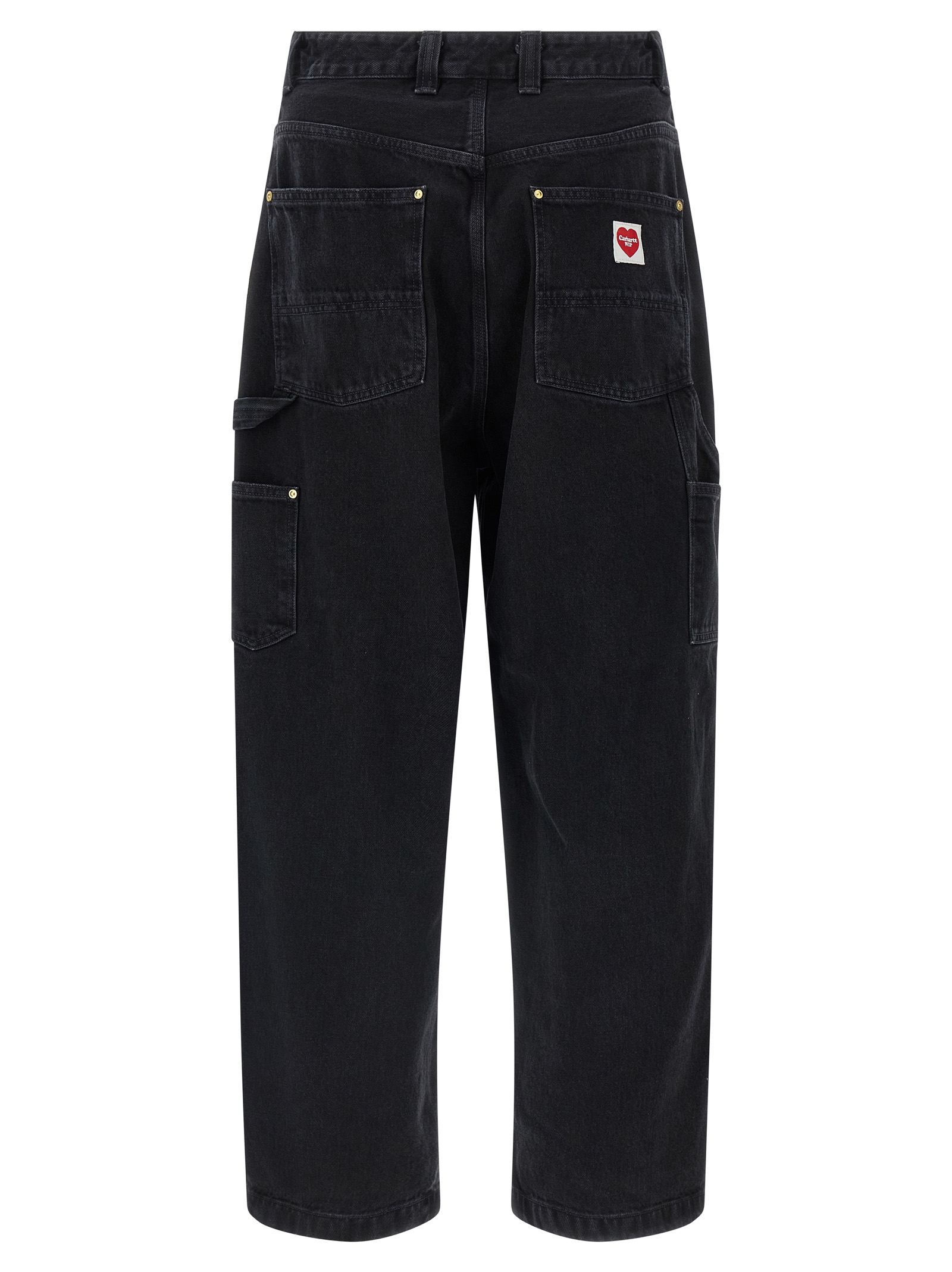 Smith stonewashed ‘Nash Double Knee’ cotton denim jeans with workwear model, regular waist, wide leg, front zip and button closure, five pockets, back logo patch.