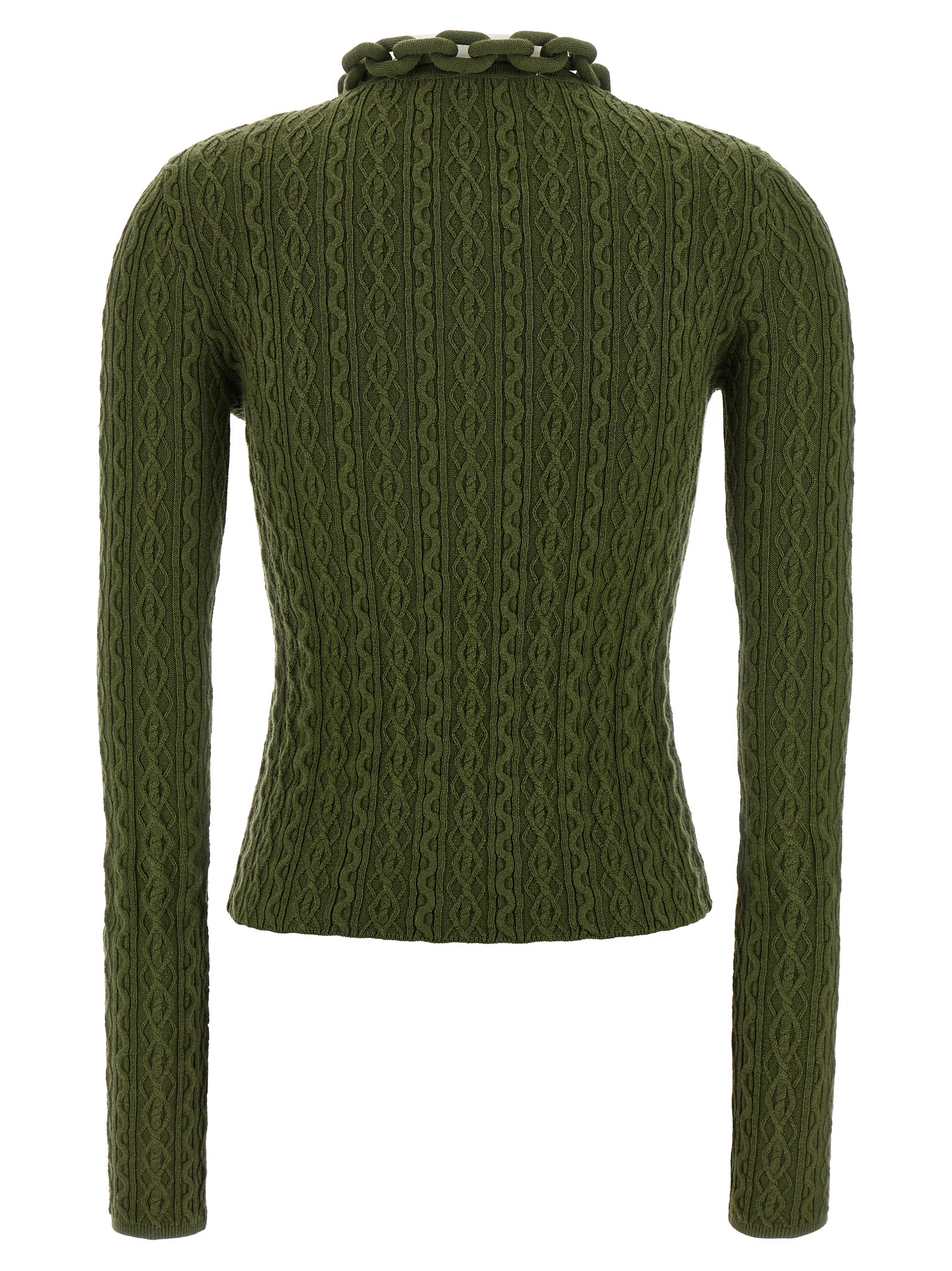 Ribbed wool and cashmere blend sweater, crew neck with metal necklace detail, long sleeves.