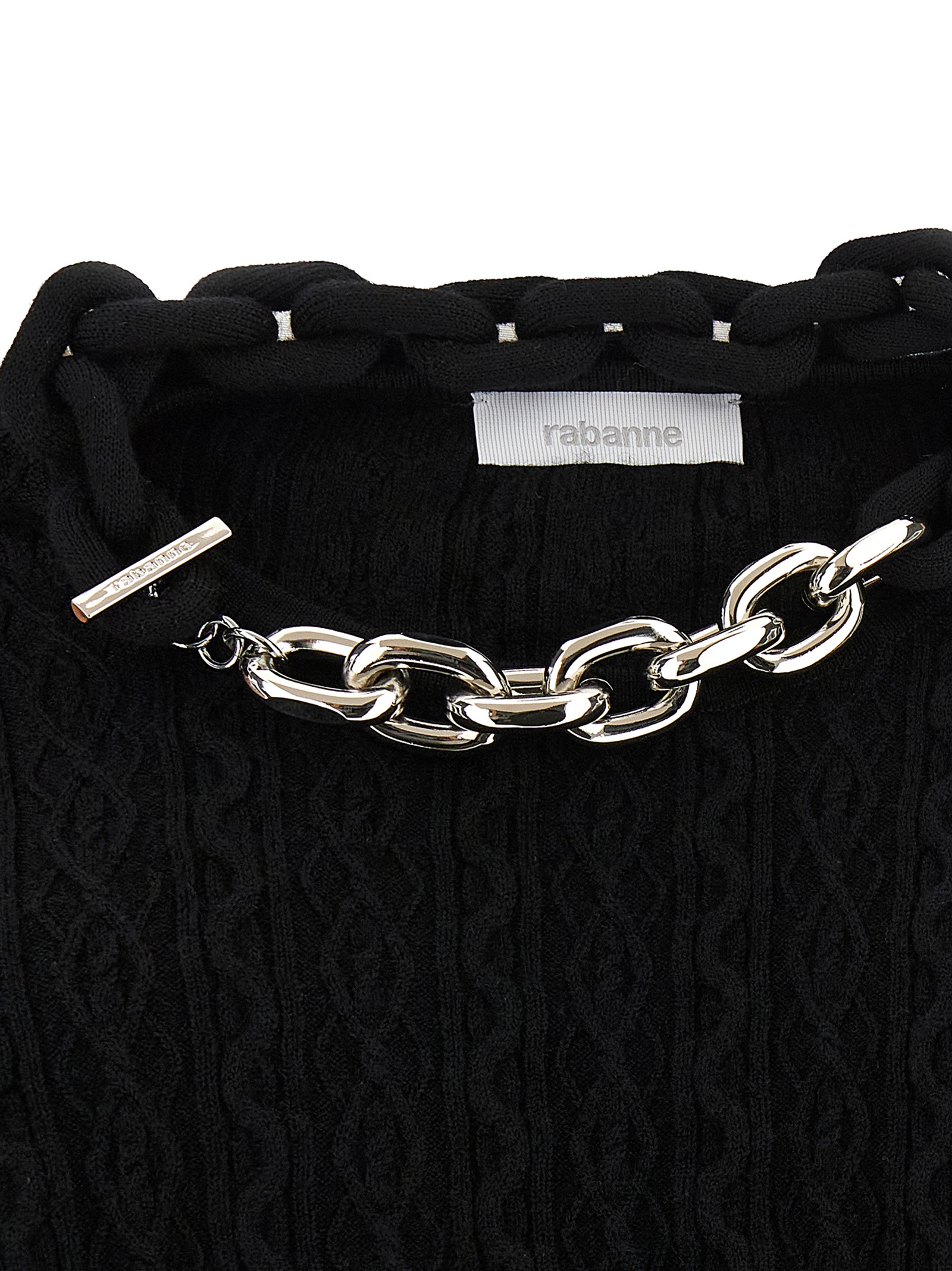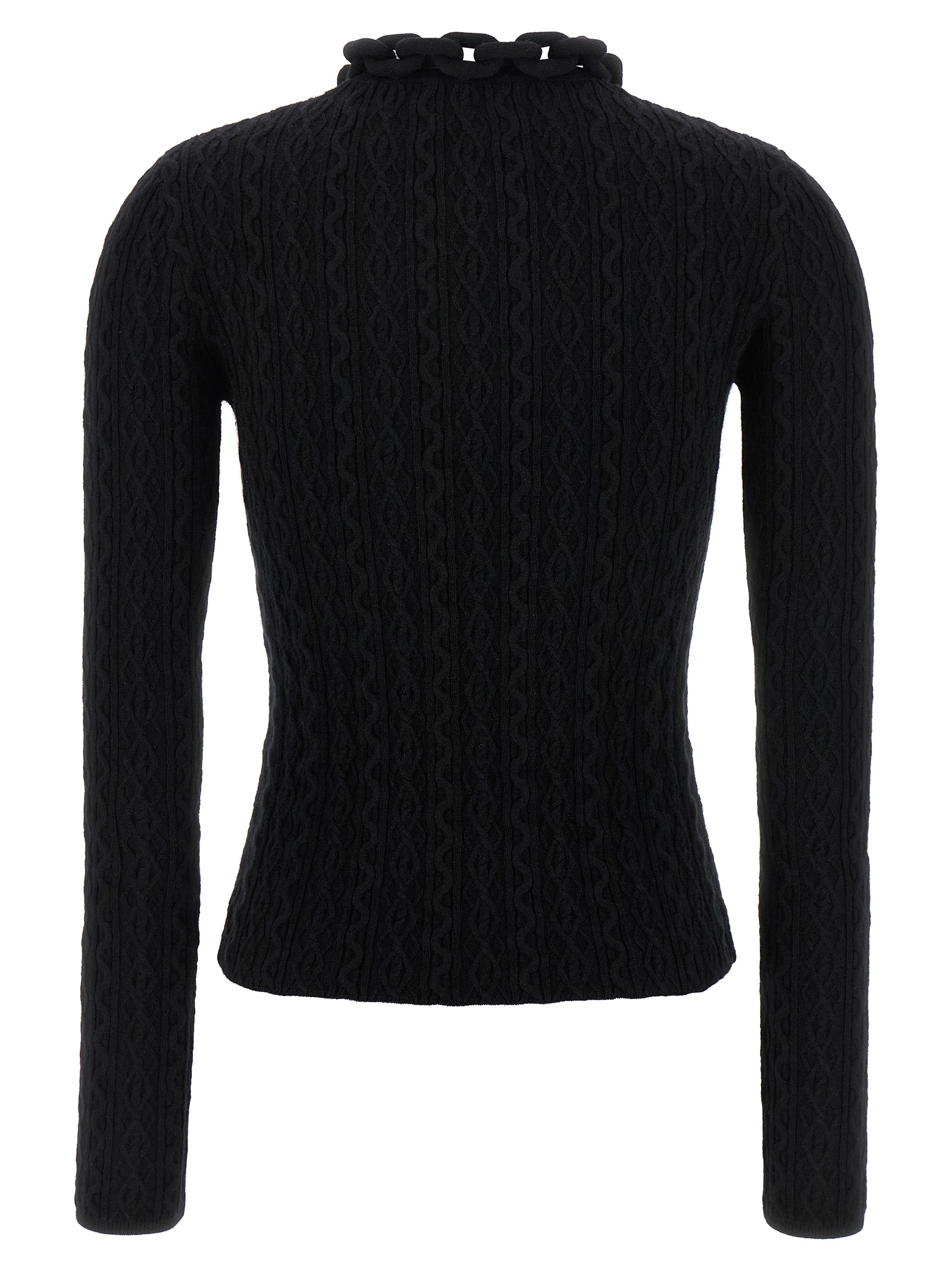 Ribbed wool and cashmere blend sweater, crew neck with metal necklace detail, long sleeves.