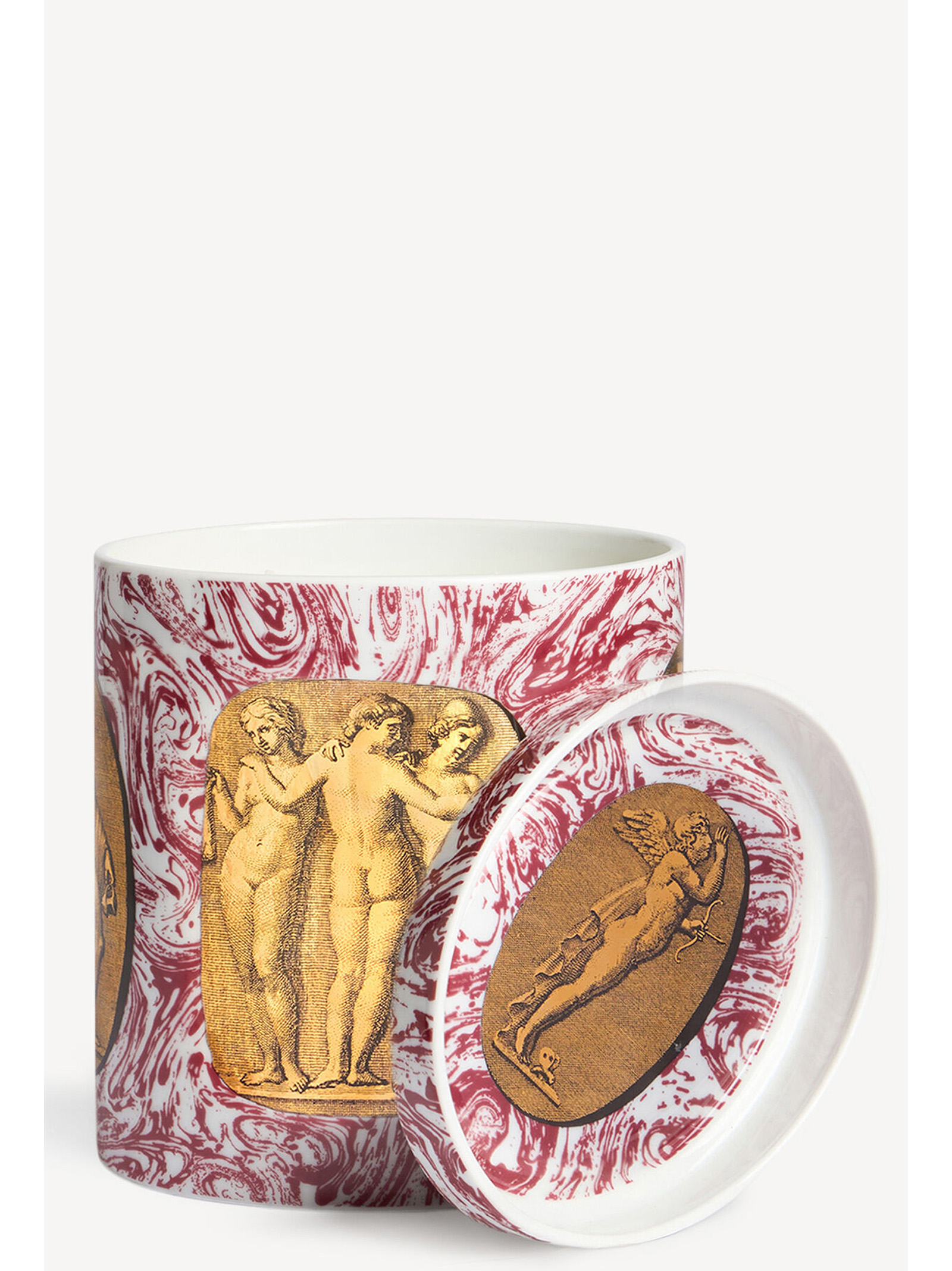 The antique vases, cameos and bas-reliefs that decorate the surface of this hand-painted porcelain candle are a tribute to the Classicism loved by Fornasetti.