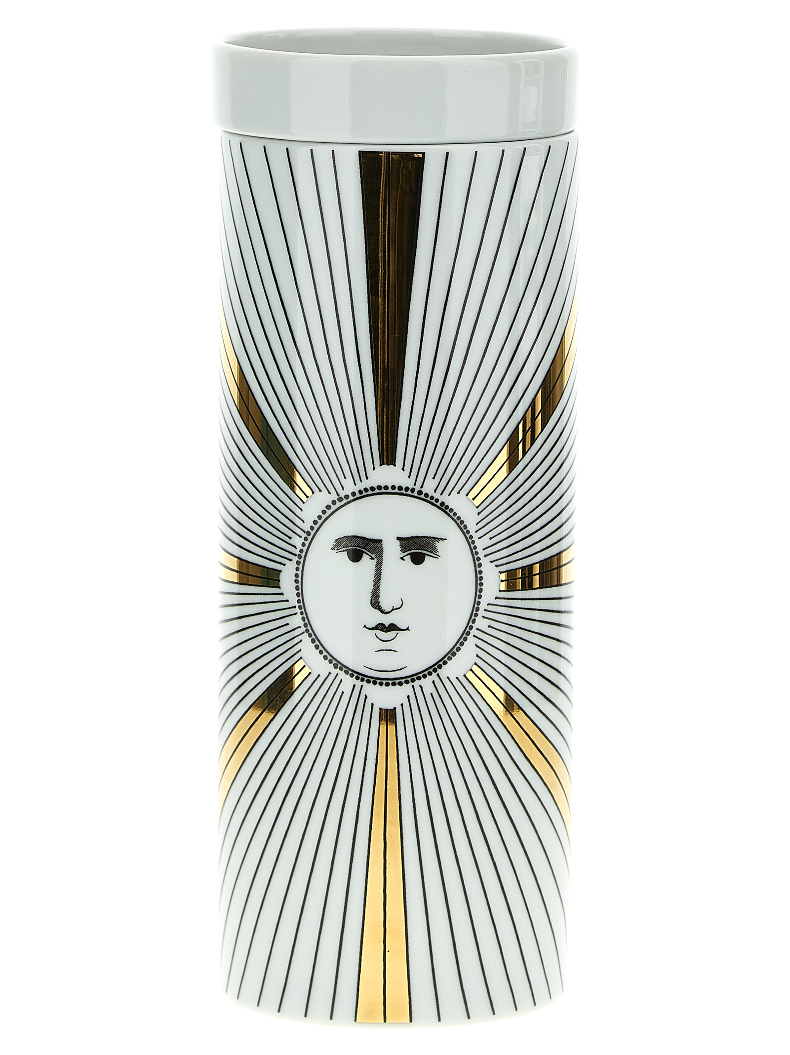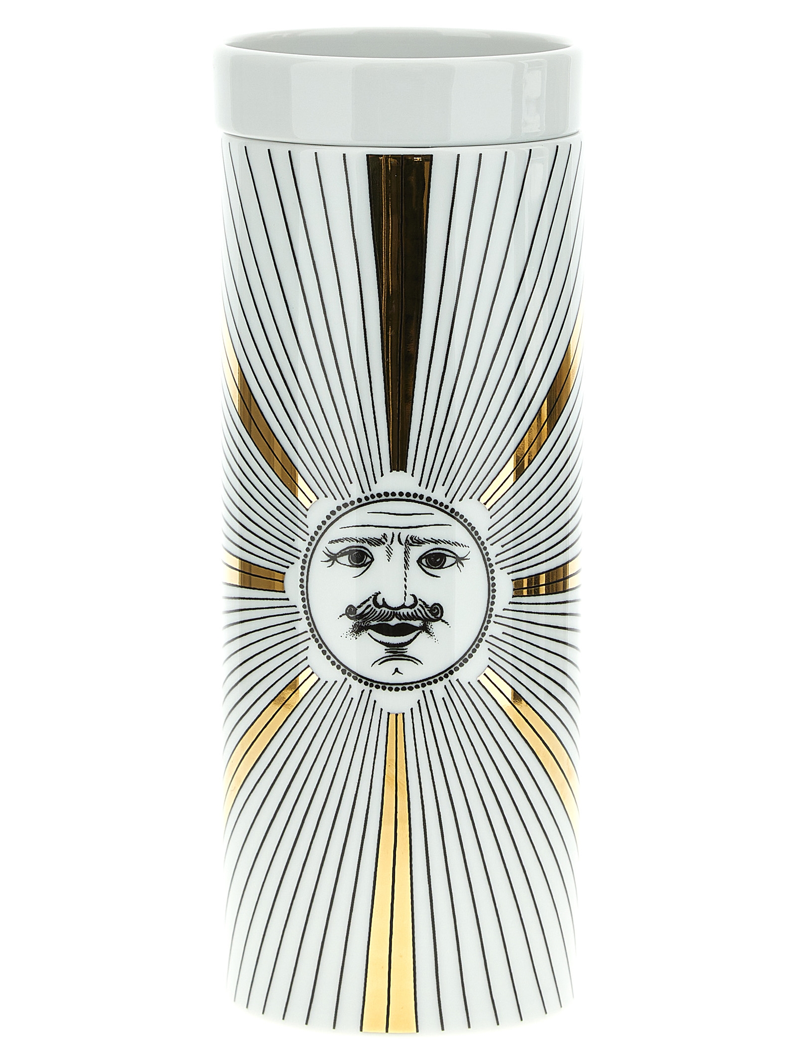 The essential and refined trait of Fornasetti transforms the candles with the iconic Soli decoration into unmistakable and timeless objects.