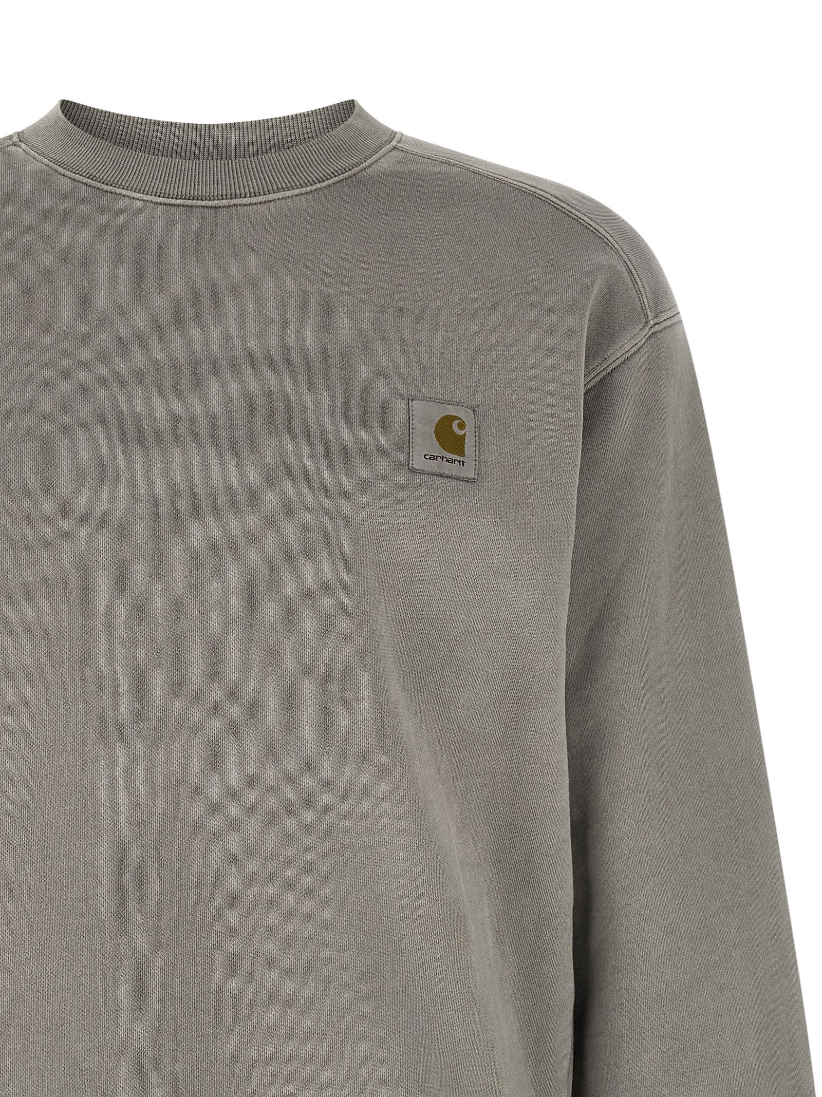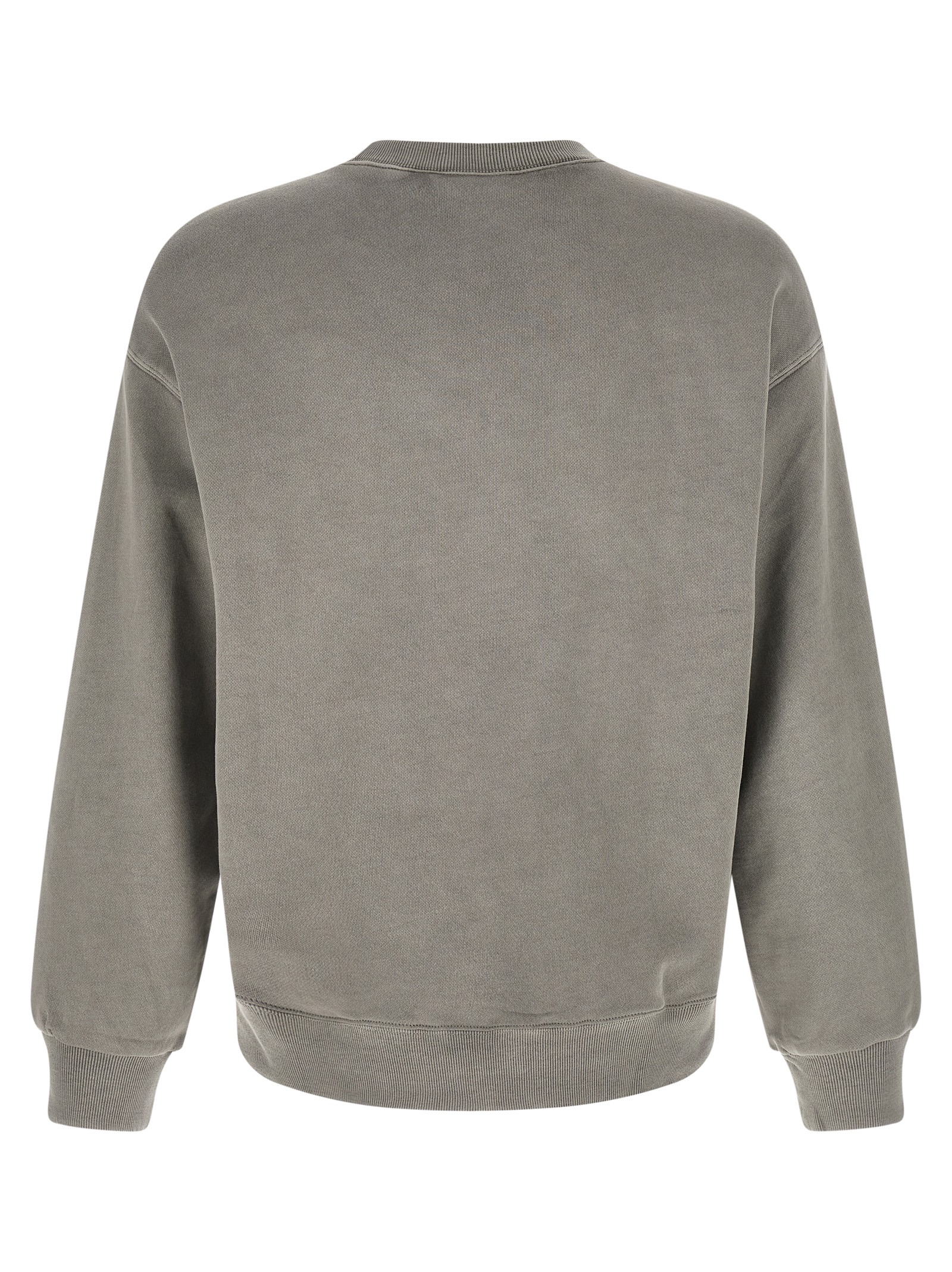 ‘Nelson’ sweatshirt in heavy unbrushed cotton jersey dyed a délavé effect garment, front logo patch, crew neck, long sleeves with cuffs and dropped shoulders, and band on the hem.