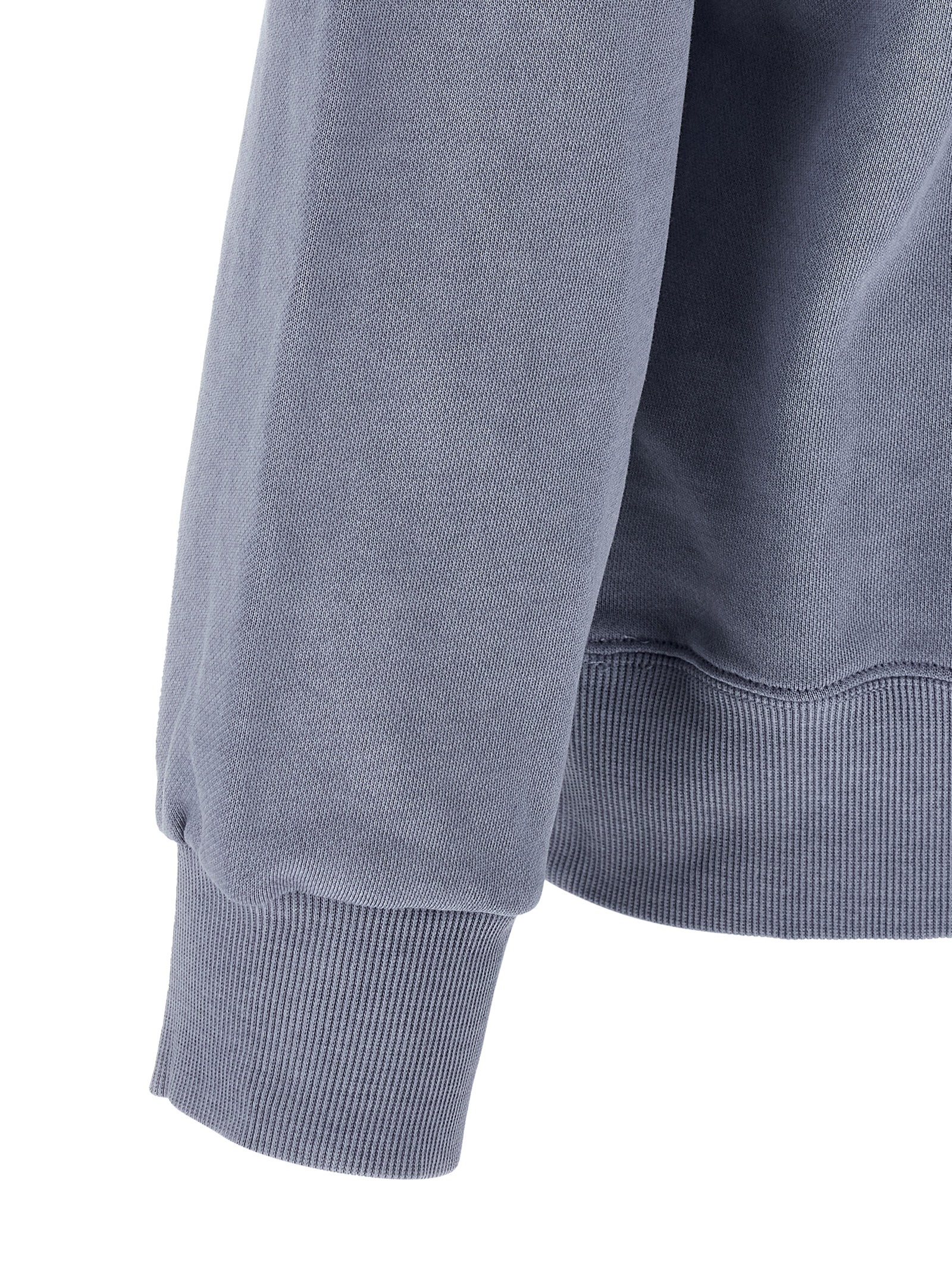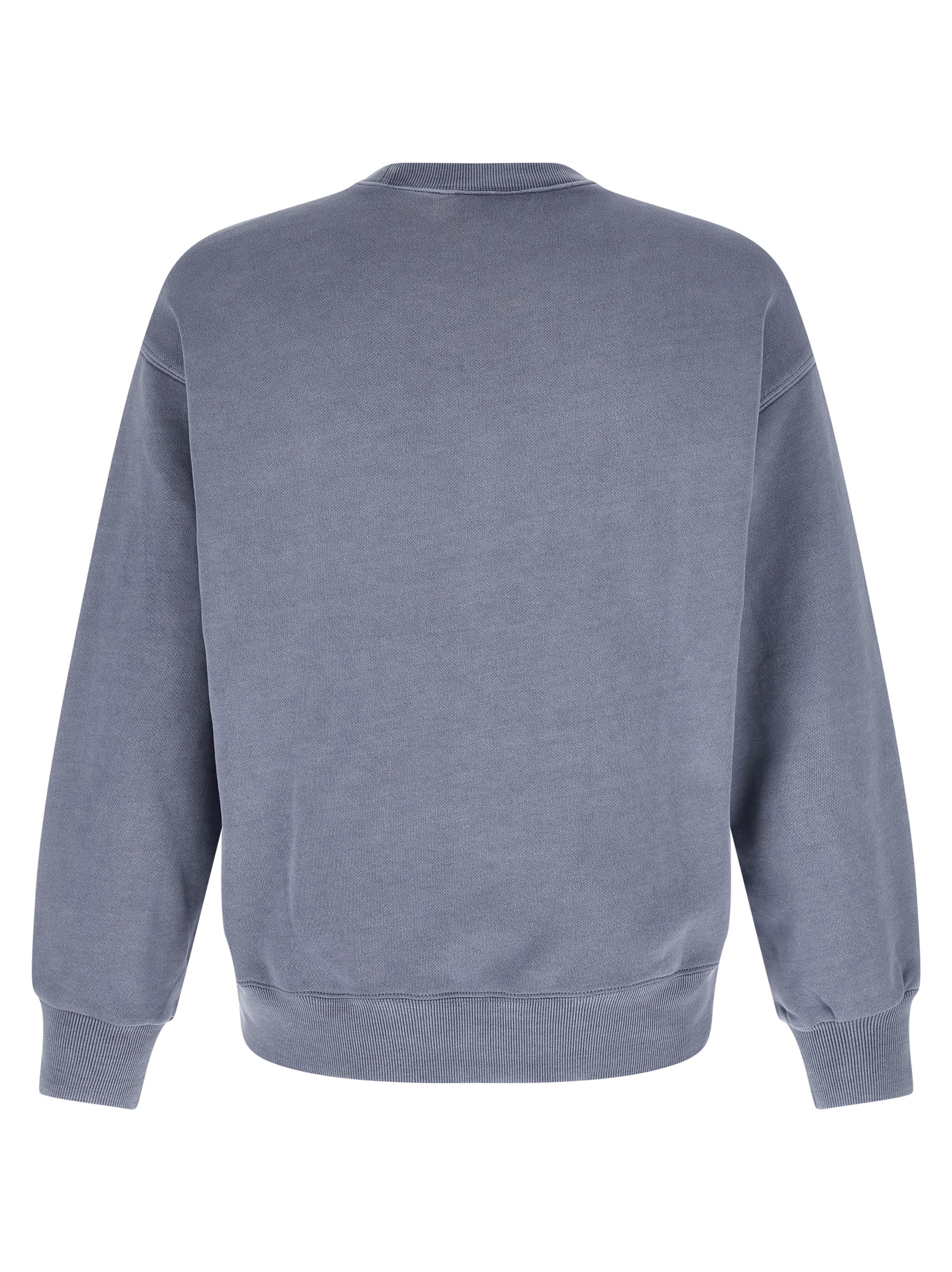 ‘Nelson’ sweatshirt in heavy unbrushed cotton jersey dyed a délavé effect garment, front logo patch, crew neck, long sleeves with cuffs and dropped shoulders, and band on the hem.