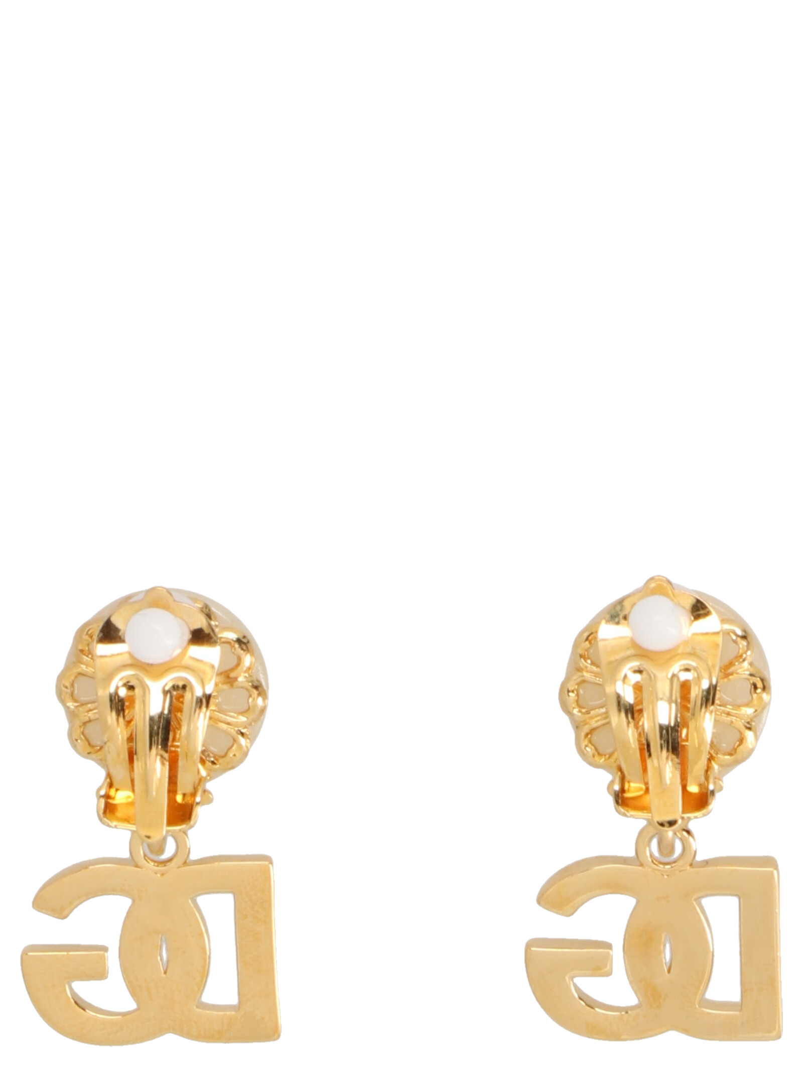 ‘Newton’ clip-style earrings with a pearl and a logo pendant.