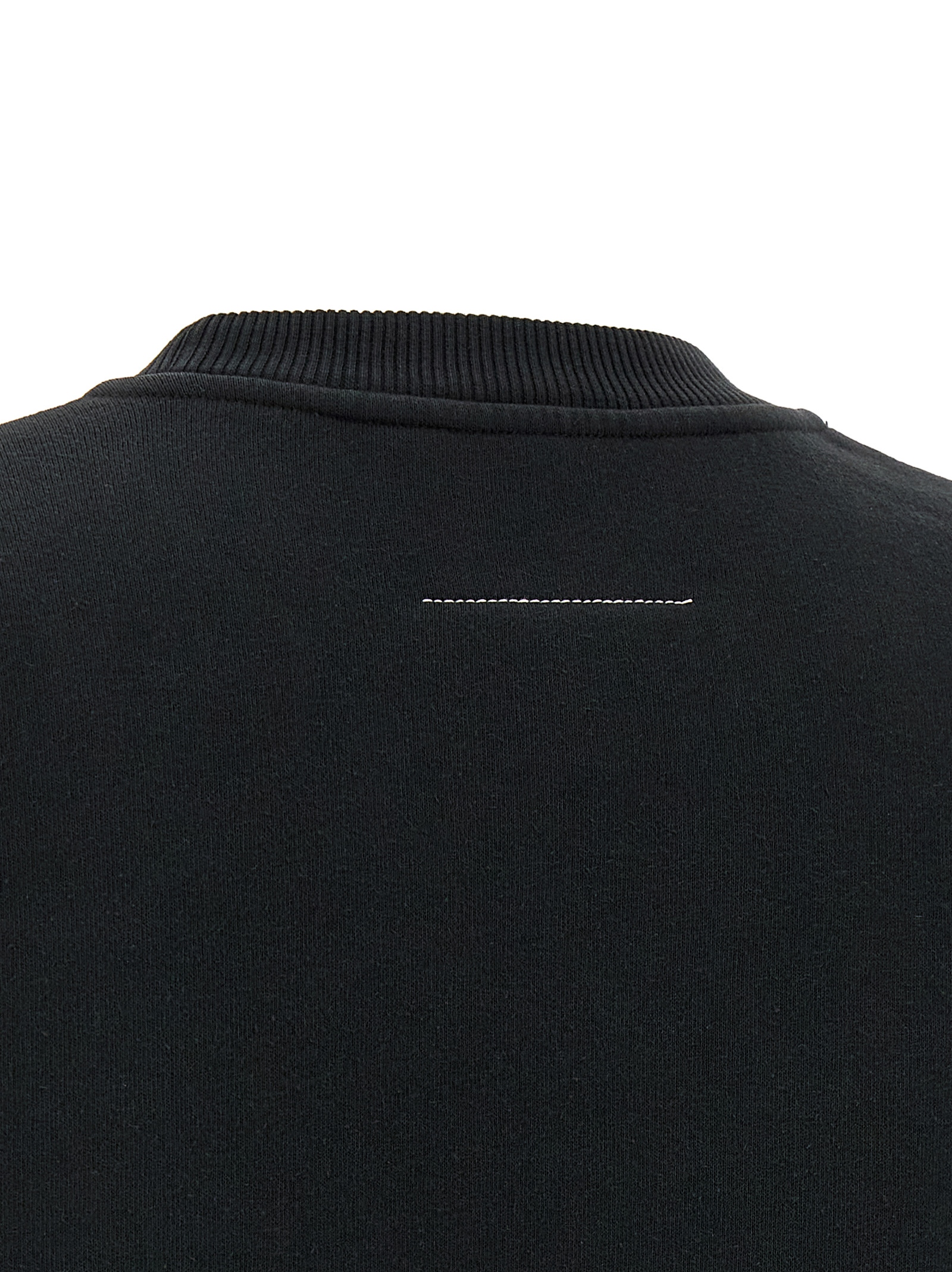 Brushed cotton sweatshirt, front detail with packing tape covering the ‘Numeric signature MM6’ label, Crew neck, long cuffed sleeves, ‘White stitch line’ back.