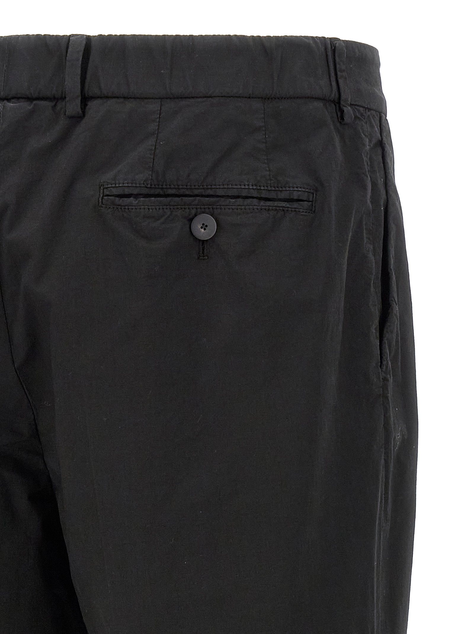 ‘Nuv’ stretch cotton pants, hook and button zip closure, elastic waistband, pockets, straight leg with stretched crease.