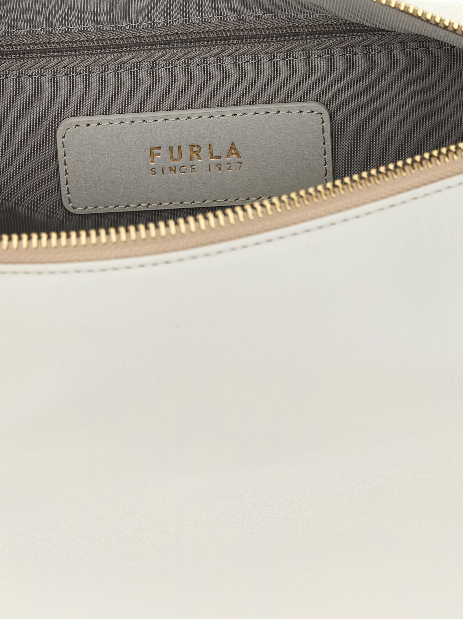‘Nuvola Hobo M’ leather shoulder bag with adjustable and removable handle, zip closure, metal logo detail snap hooks.