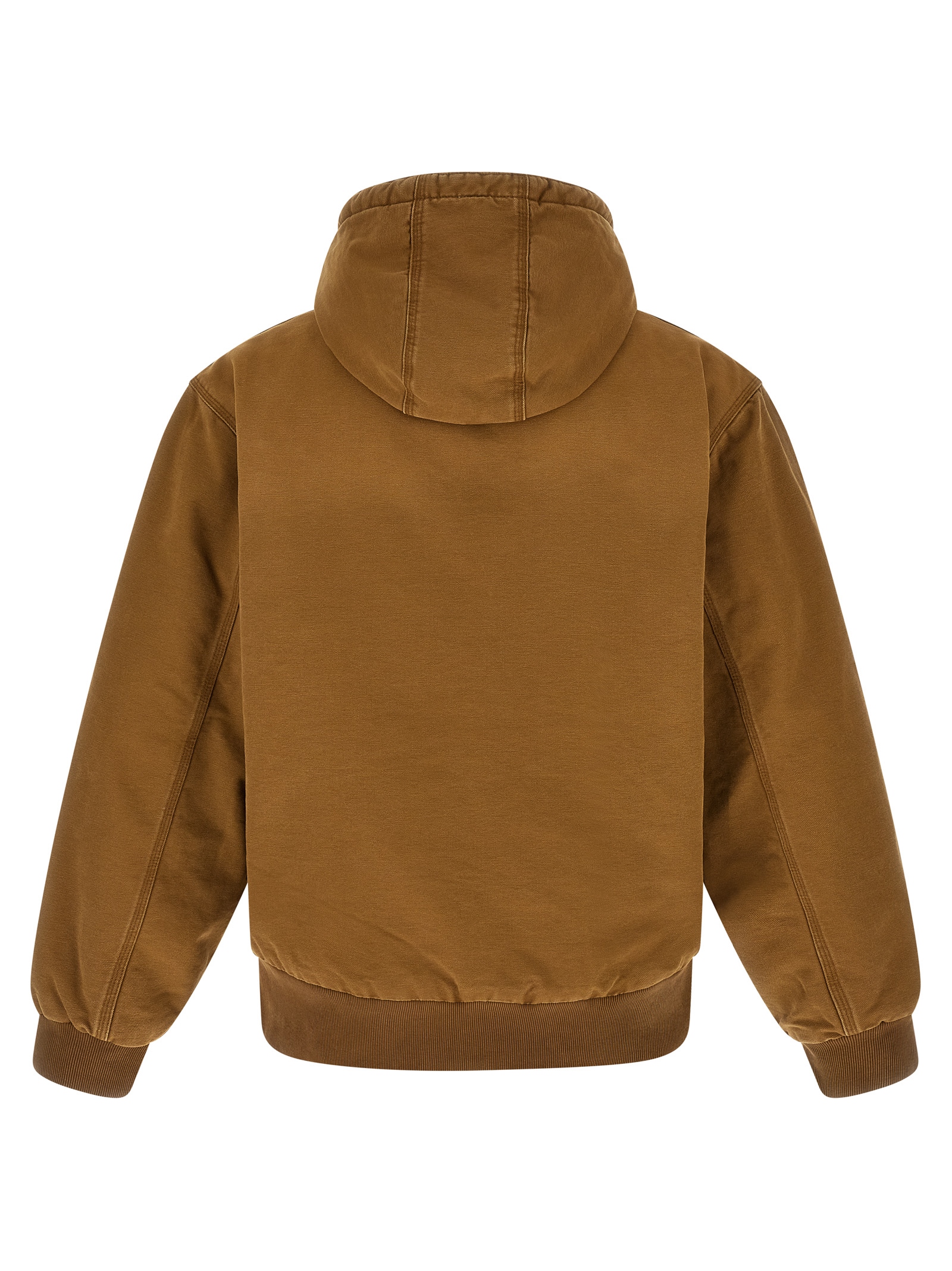 Dearborn cotton canvas ‘OG Active’ jacket of 340 grams stone canvas wash, nylon matelassé lining, adjustable hood, logo patch and front zip closure, pockets, long sleeves with cuffs, ribbed stretch knit band on the hem.