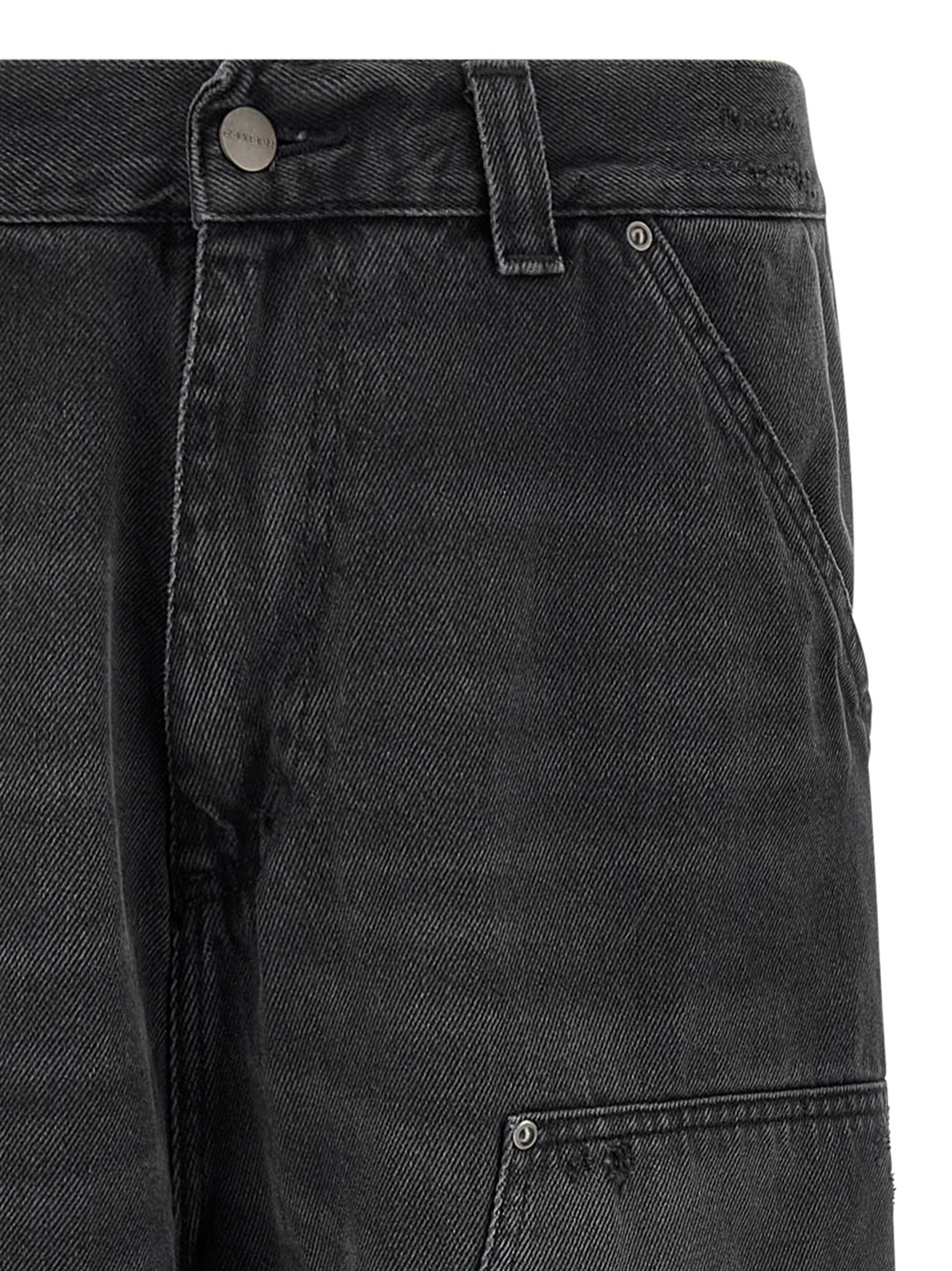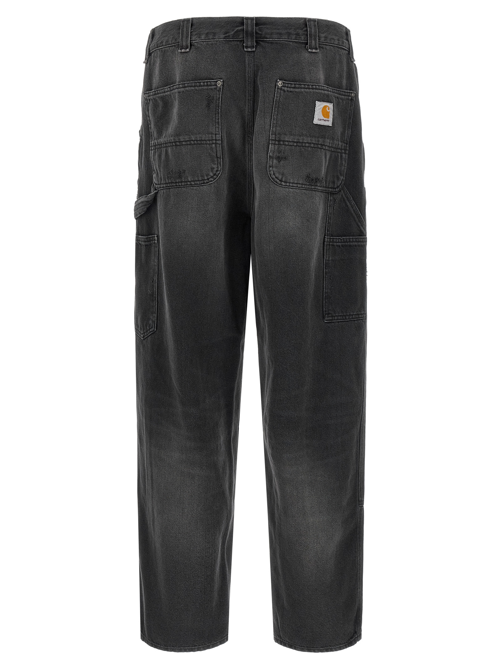 ‘OG Double Knee’ jeans in heavy stonewashed cotton denim with used effect wide and straight leg, front zip and button closure, pockets, back logo patch.