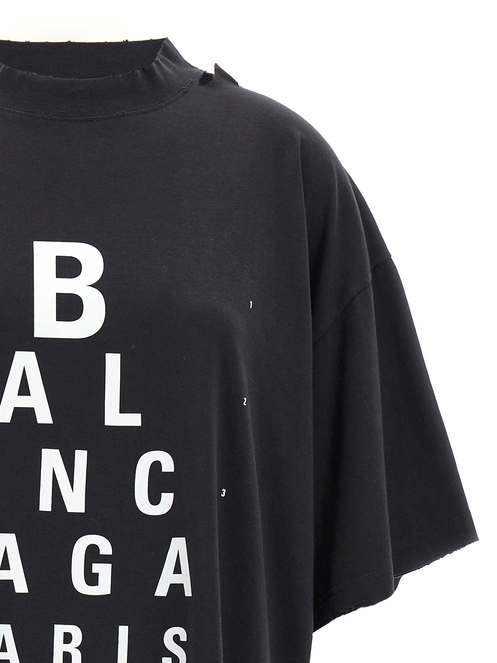 ‘Optical’ used effect vintage tubular jersey t-shirt with rips, front print, crew neck, short sleeves.