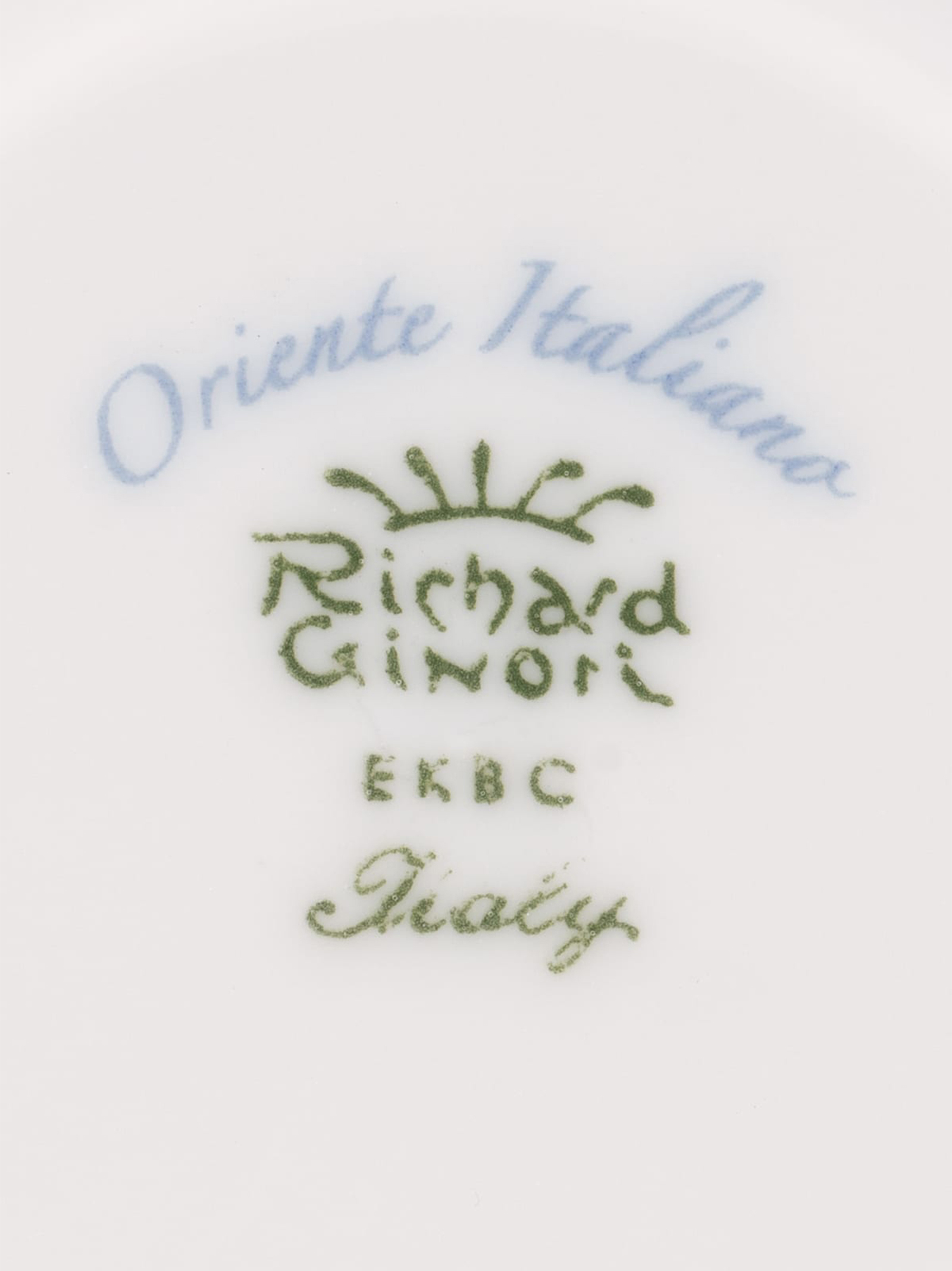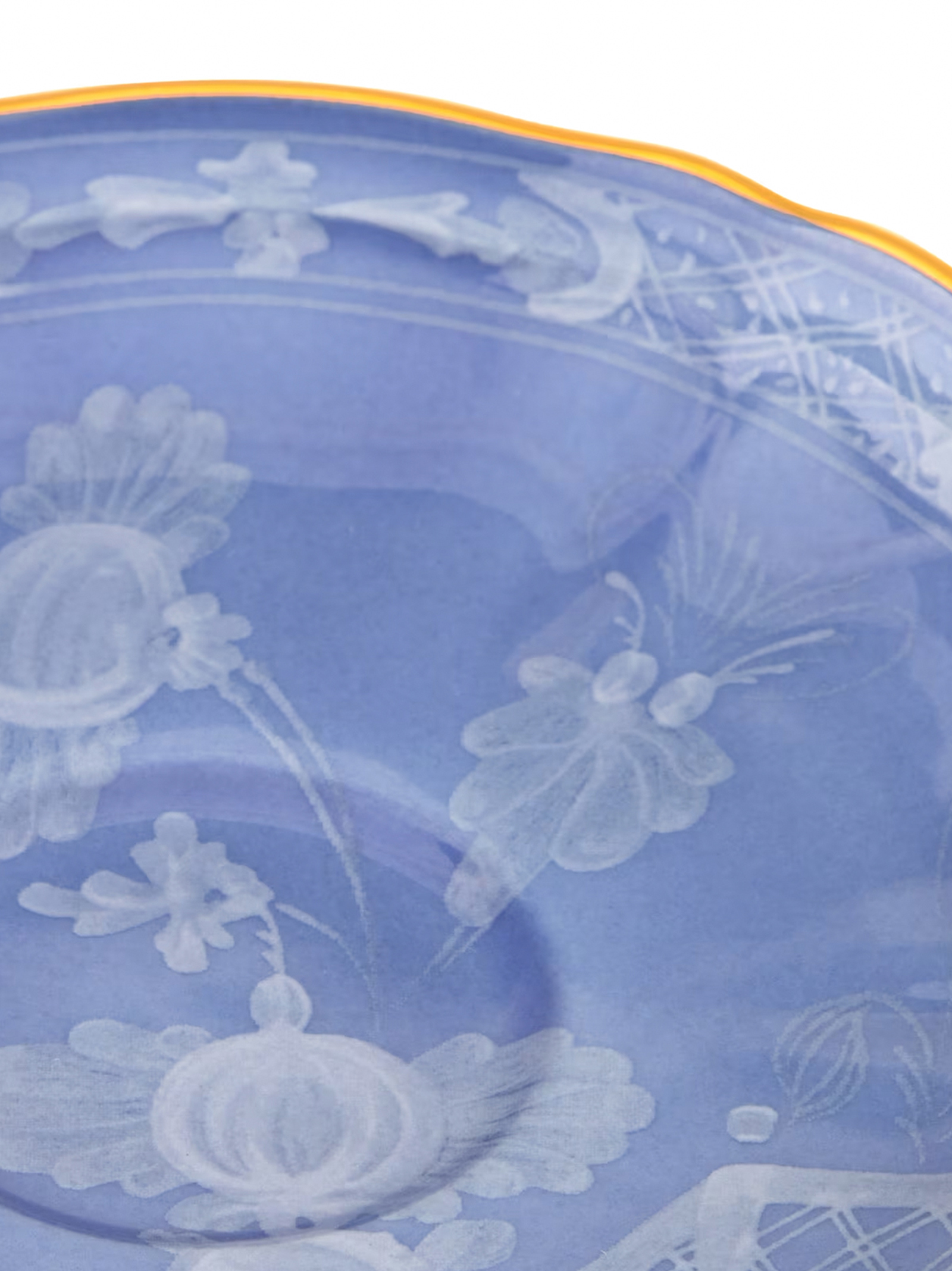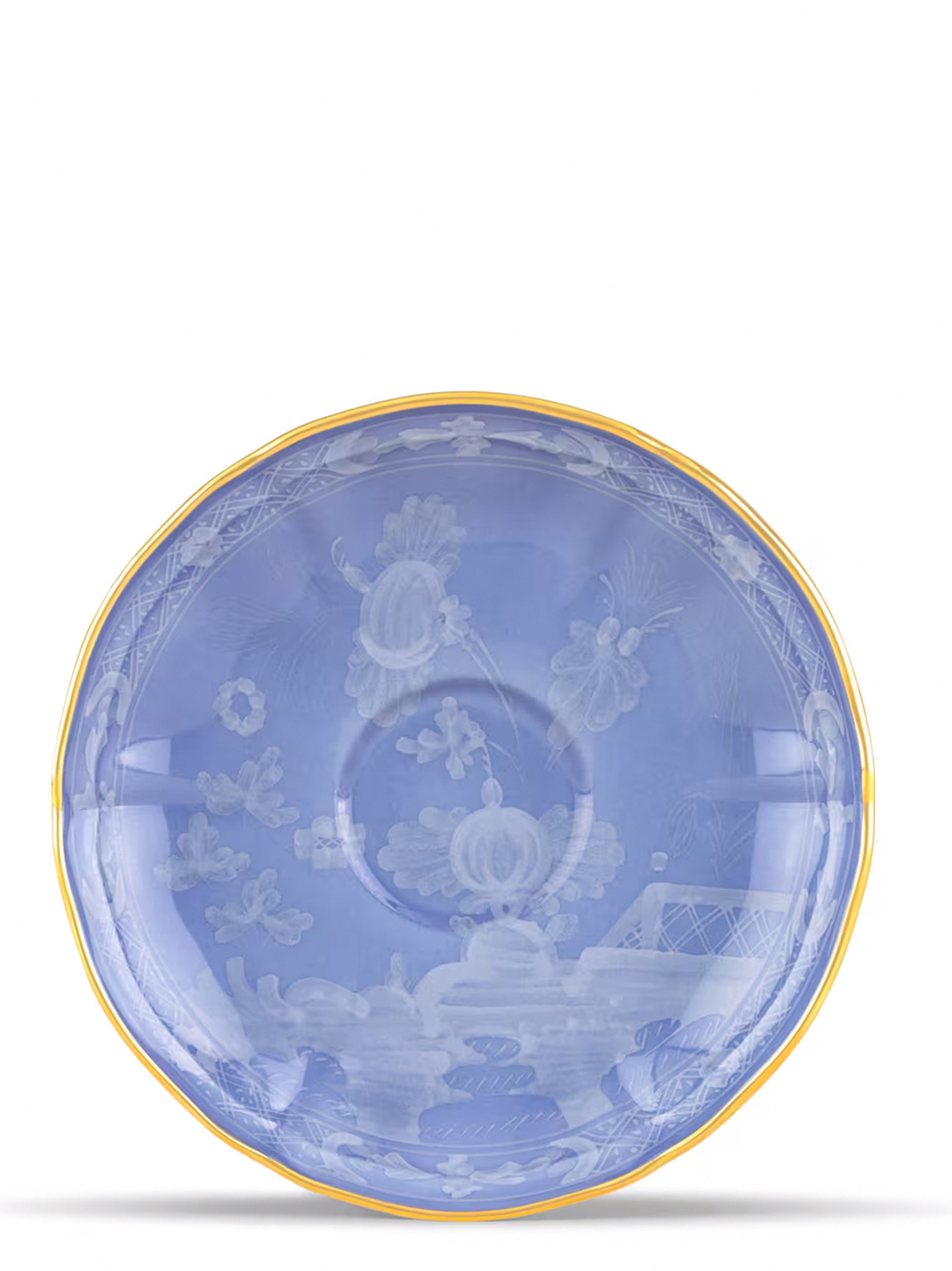 Oriente Italiano’ ceramic coffee plate, Antico Doccia shape with golden edge.