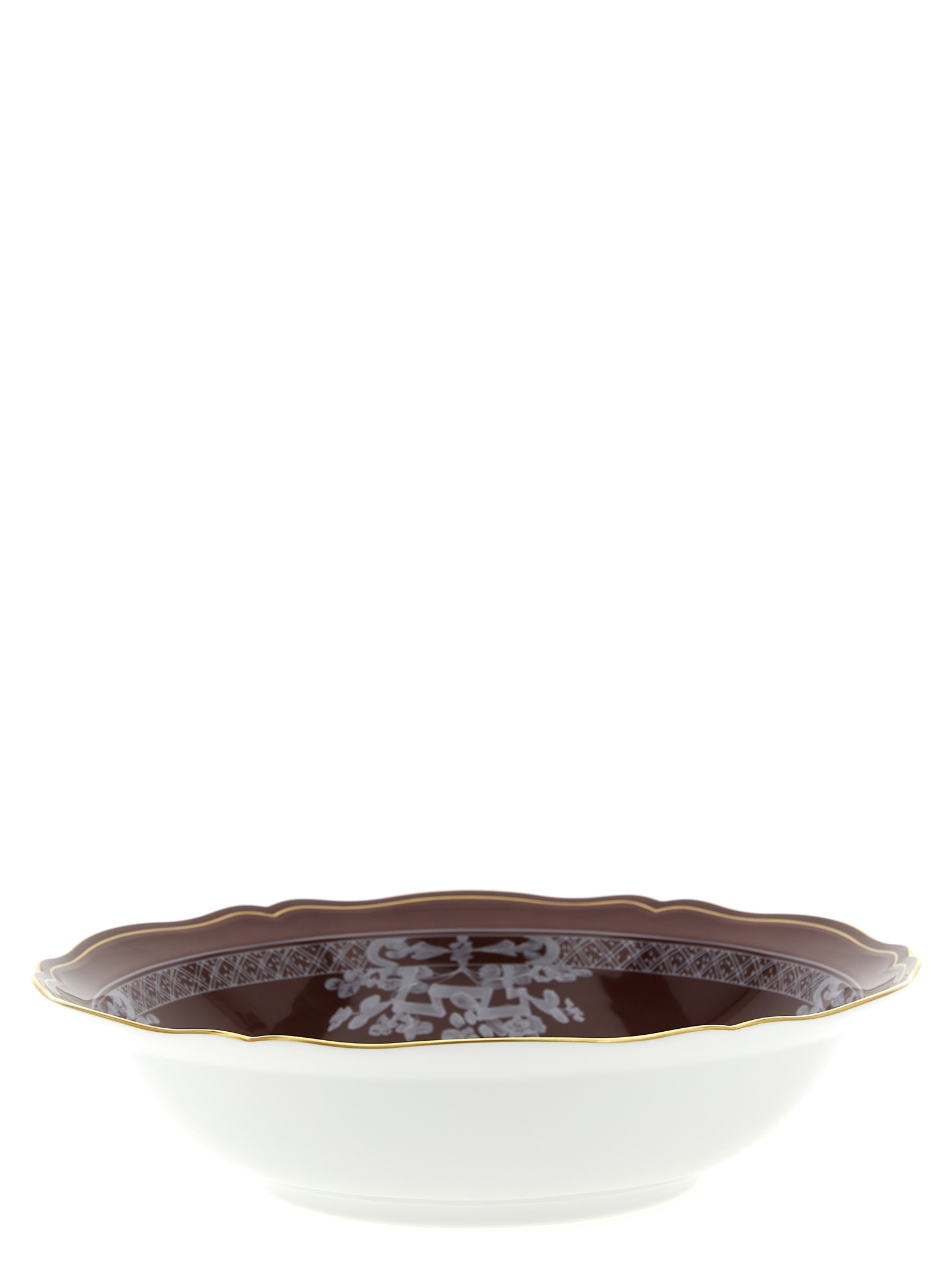 Porcella tray with chestnut brown decoration and gold thread. ‘Oriente Italiano’ collection.