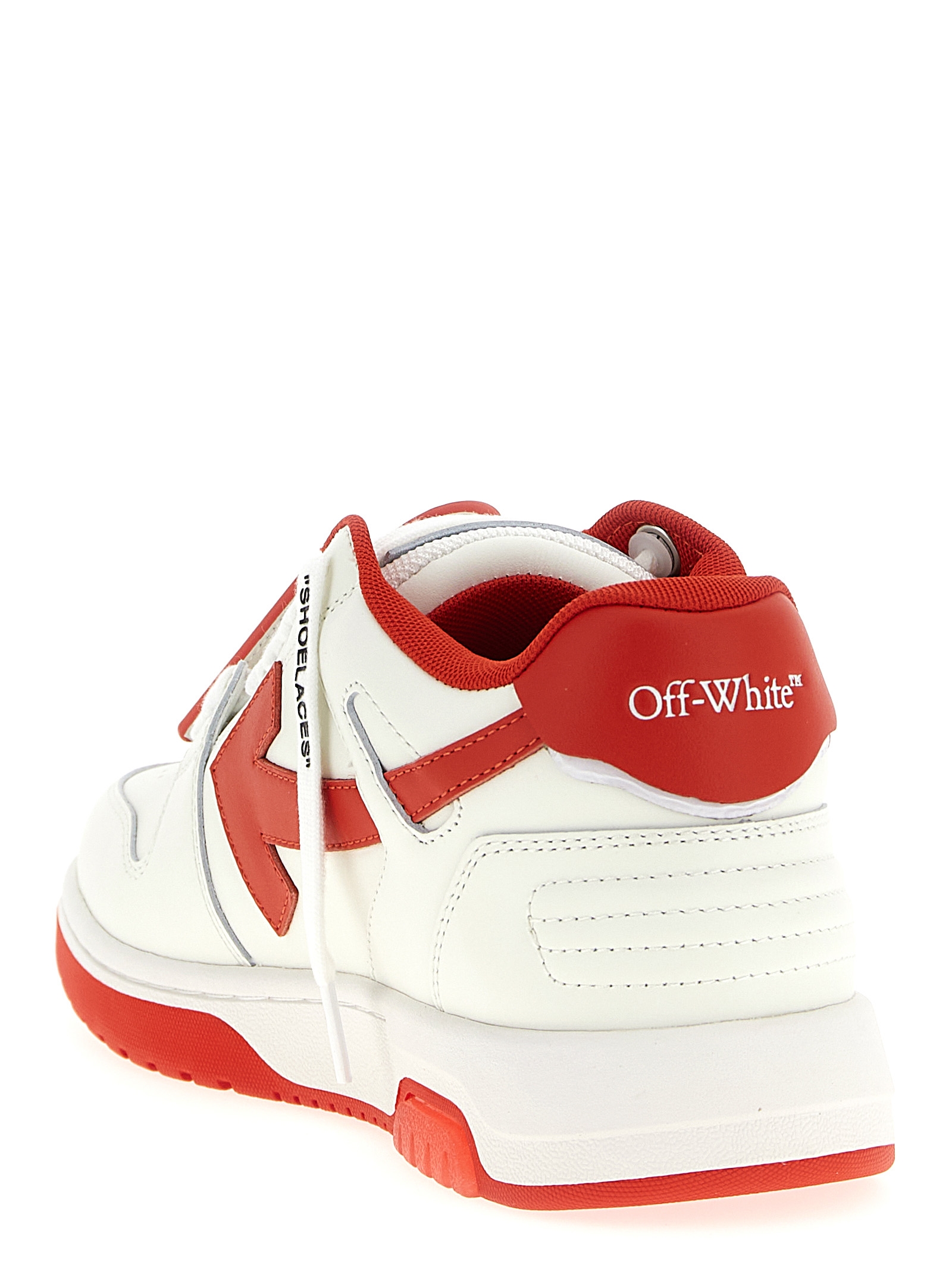 ‘Out Of Office’ leather sneakers, logo tag, contrast ‘Arrow’ side heel and logo, laces, rubber sole.