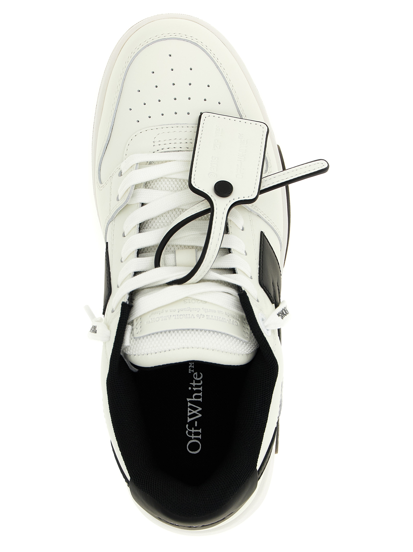 ‘Out Of Office’ leather sneakers, logo tag, contrast ‘Arrow’ side heel and logo, laces, rubber sole.