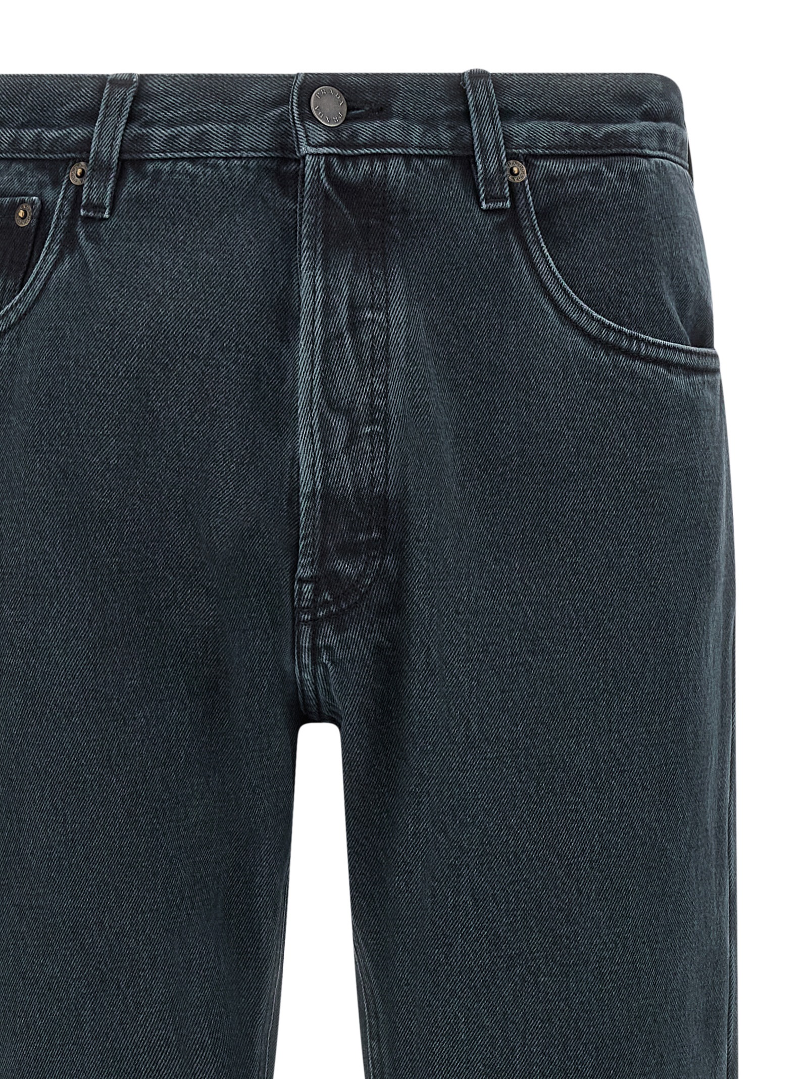 ‘regular’ cotton denim jeans with ‘over-dyed’ treatment, mid waist, front button closure, back logo tag and pockets.