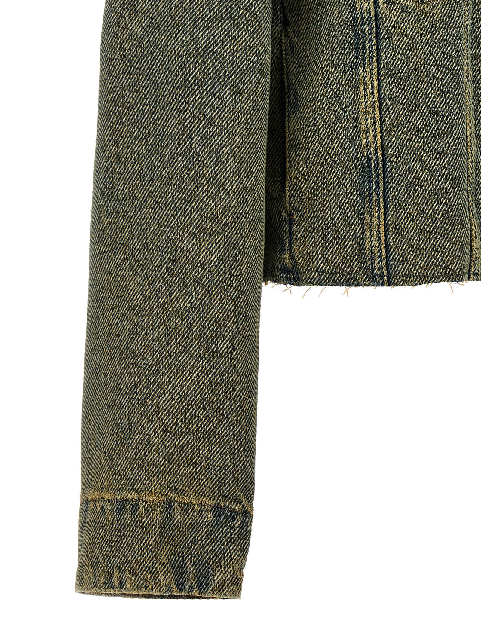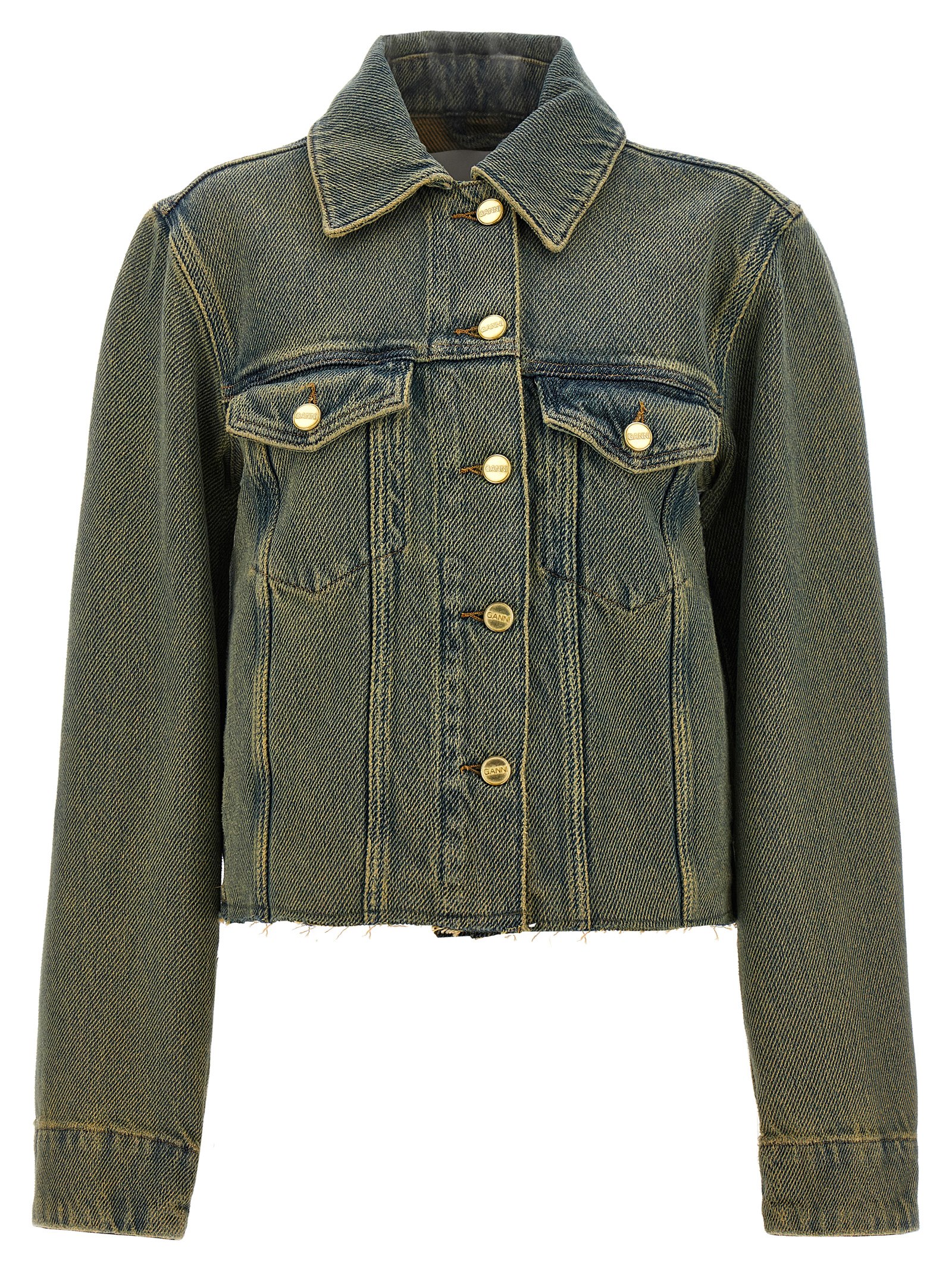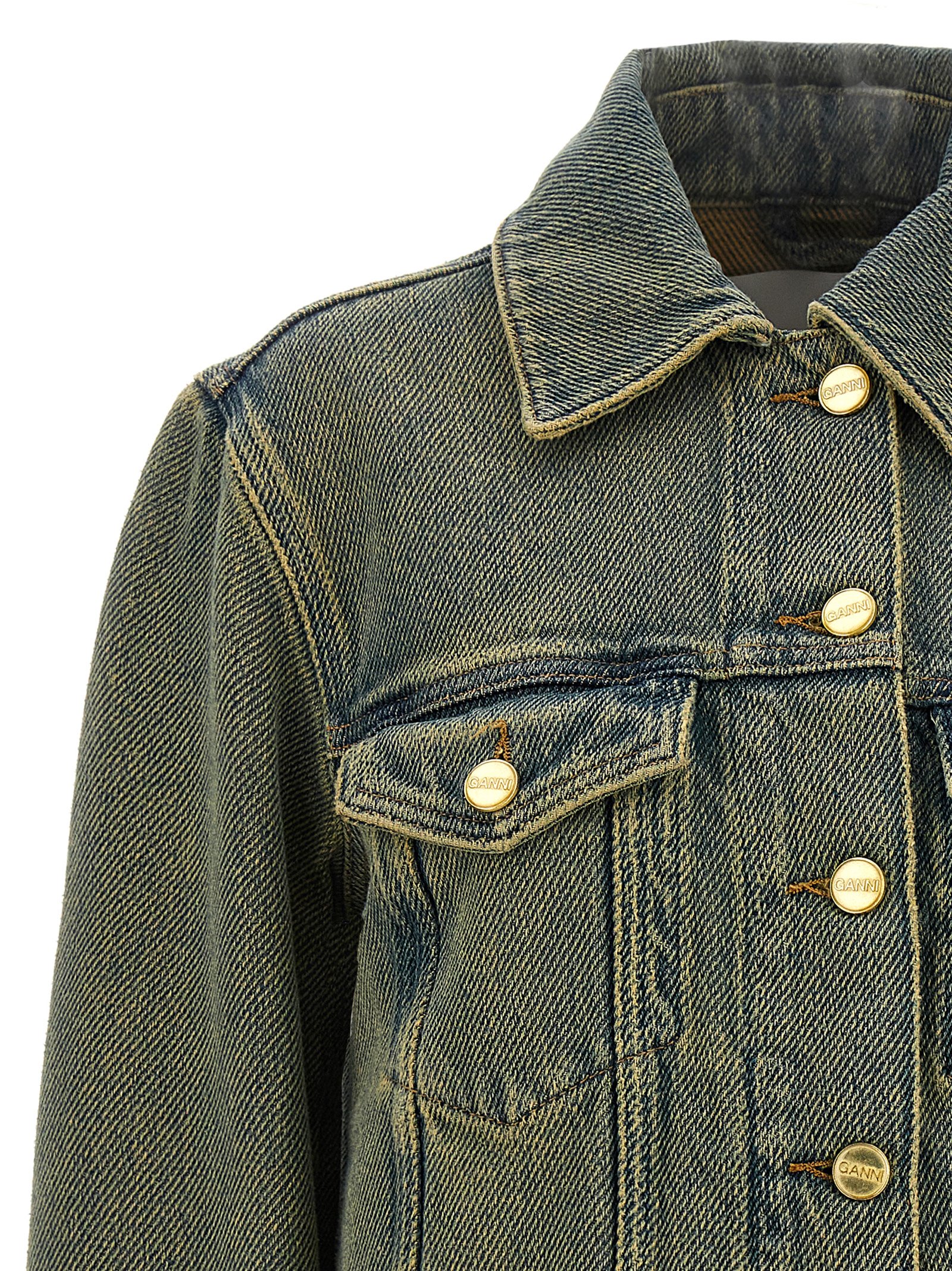 ‘Overdyed Heavy’ cotton denim jacket with button closure, pockets, long sleeves.