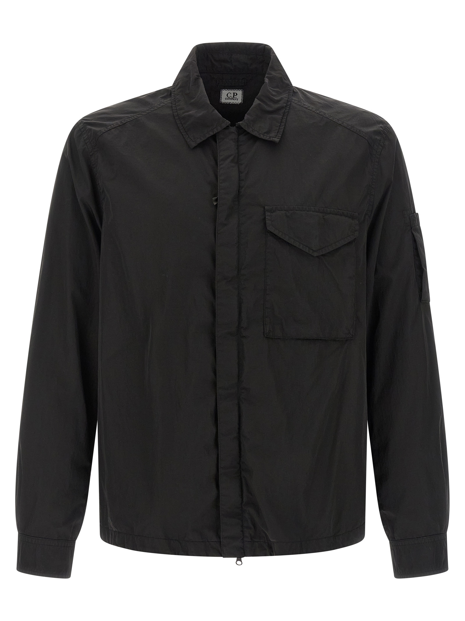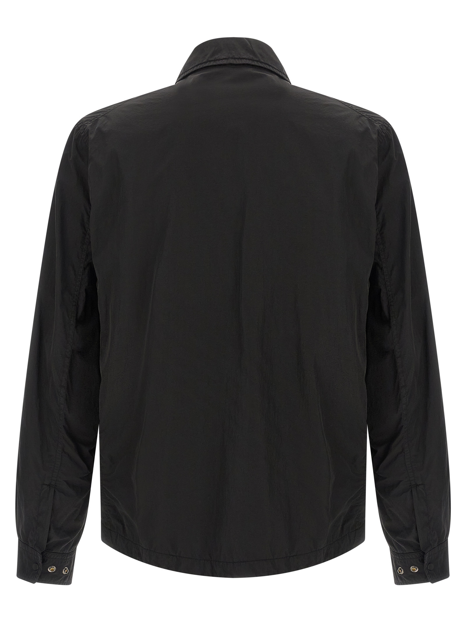 Garment-dyed Chrome-R overshirt with anti-drip treatment, front zip closure, pockets, long sleeves with cuffs and lens, breathable mesh lining.